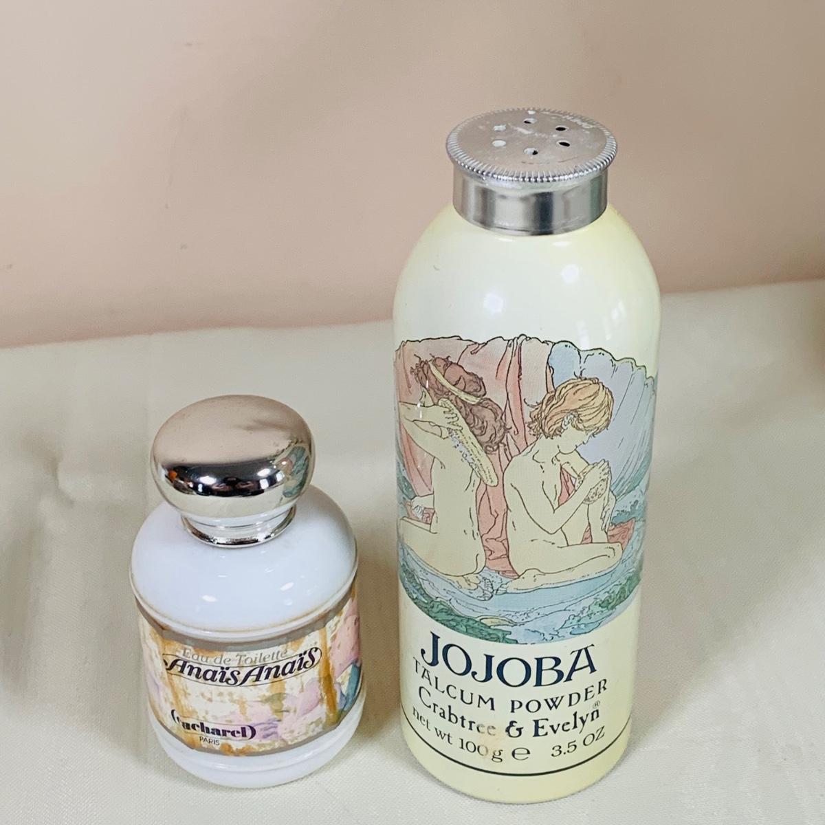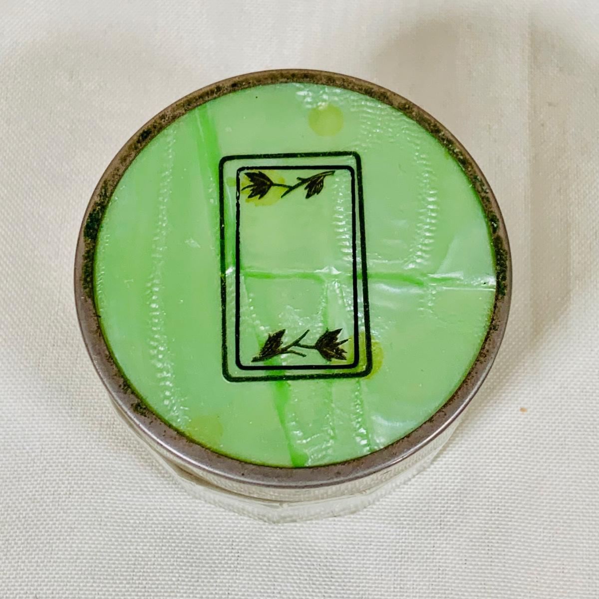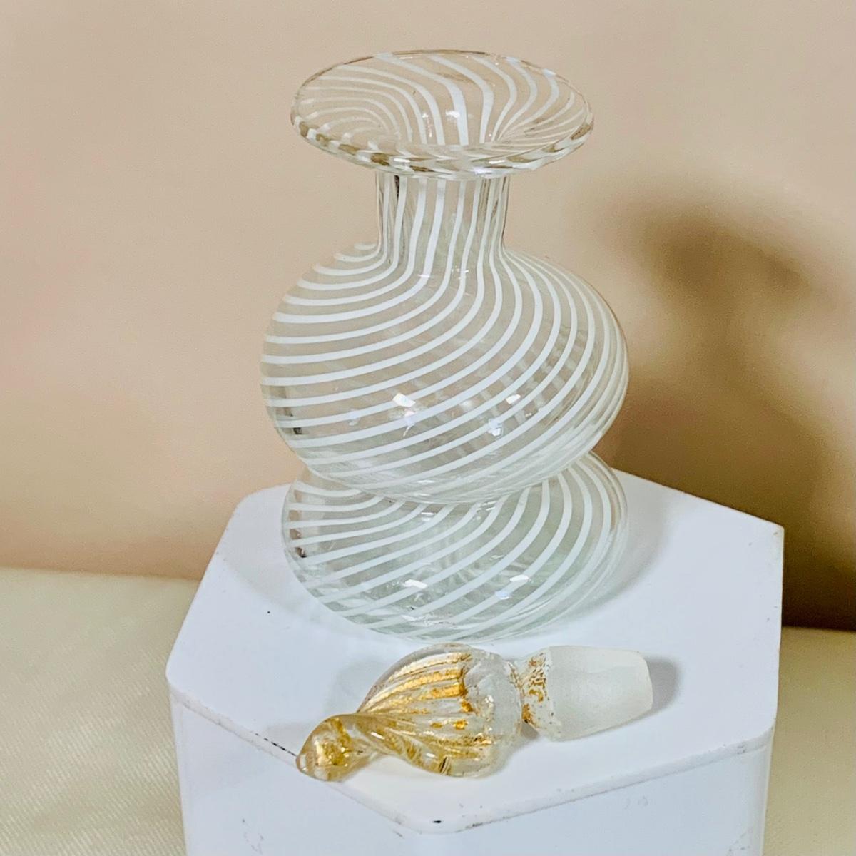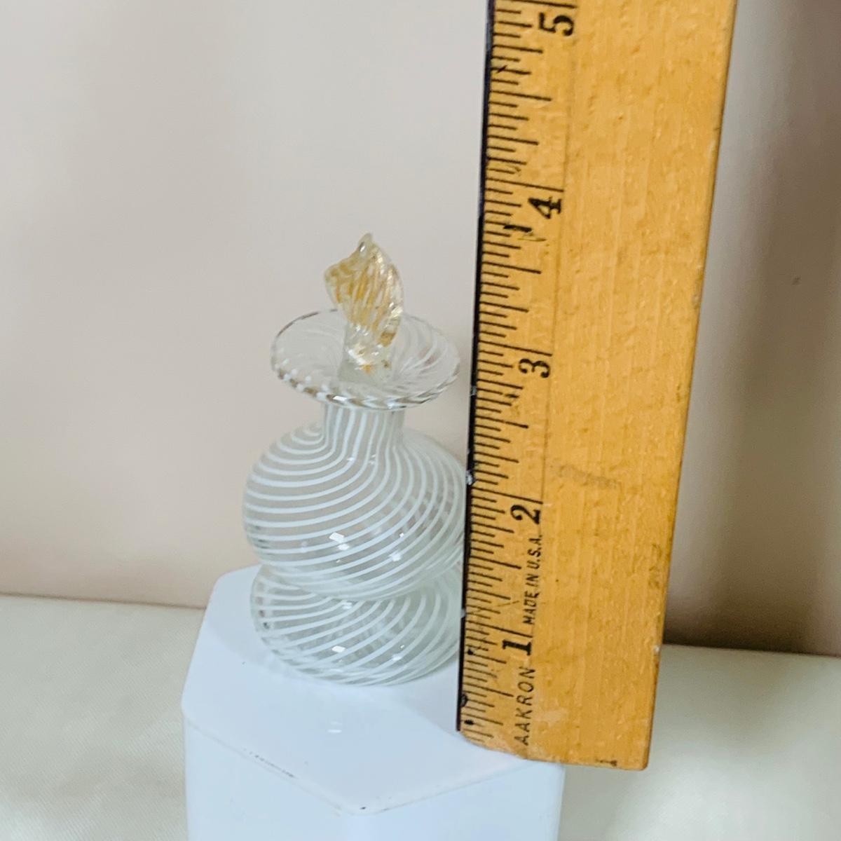 LOT 45: Beautiful Art Glass Perfume Bottle, Glass Jars with Lids, Vintage Thermometer Advertisement, Perfume, Vase with Faux Flowers
