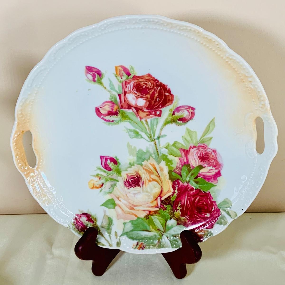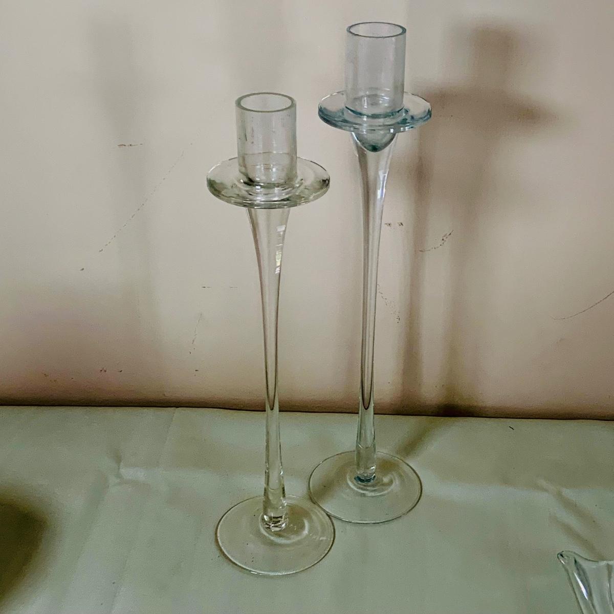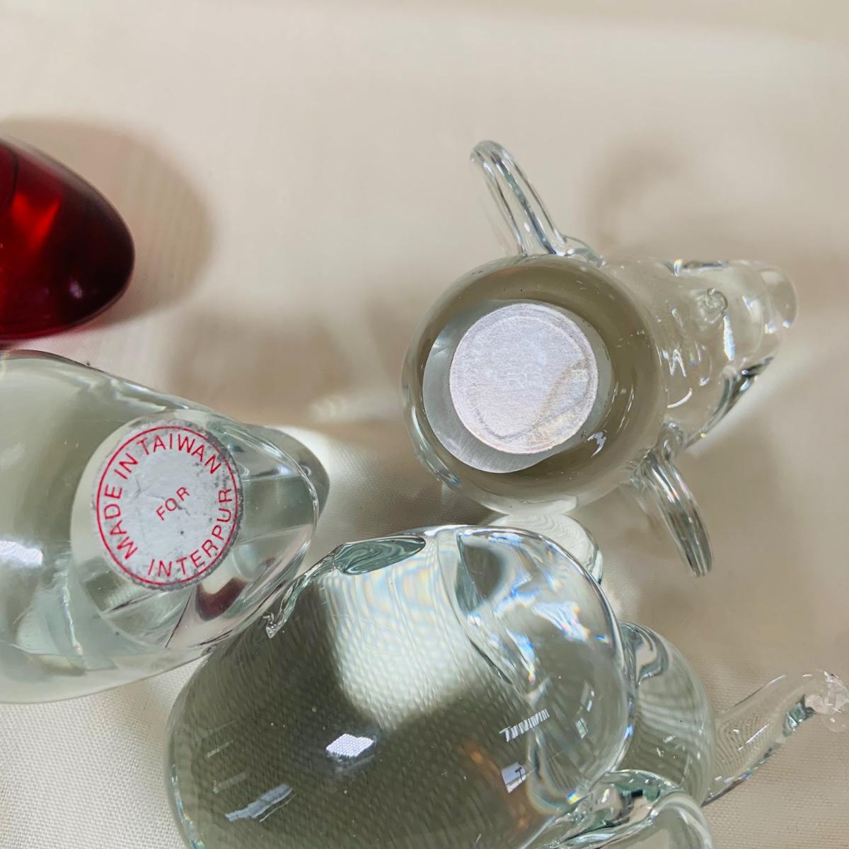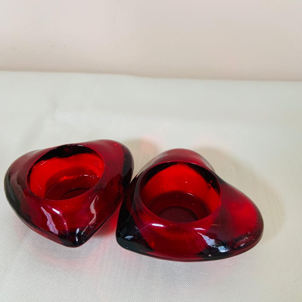 LOT 49: Glass Animal Figurines, Elephants, Bird and Rabbit, Glass Red Heart and Clear Glass Candle Holders and Vintage Floral Plate