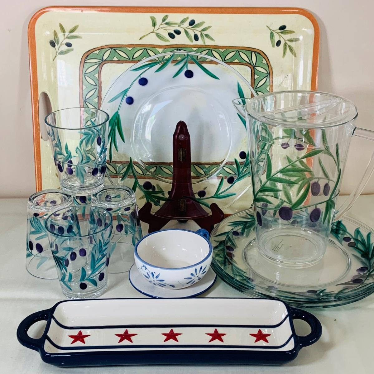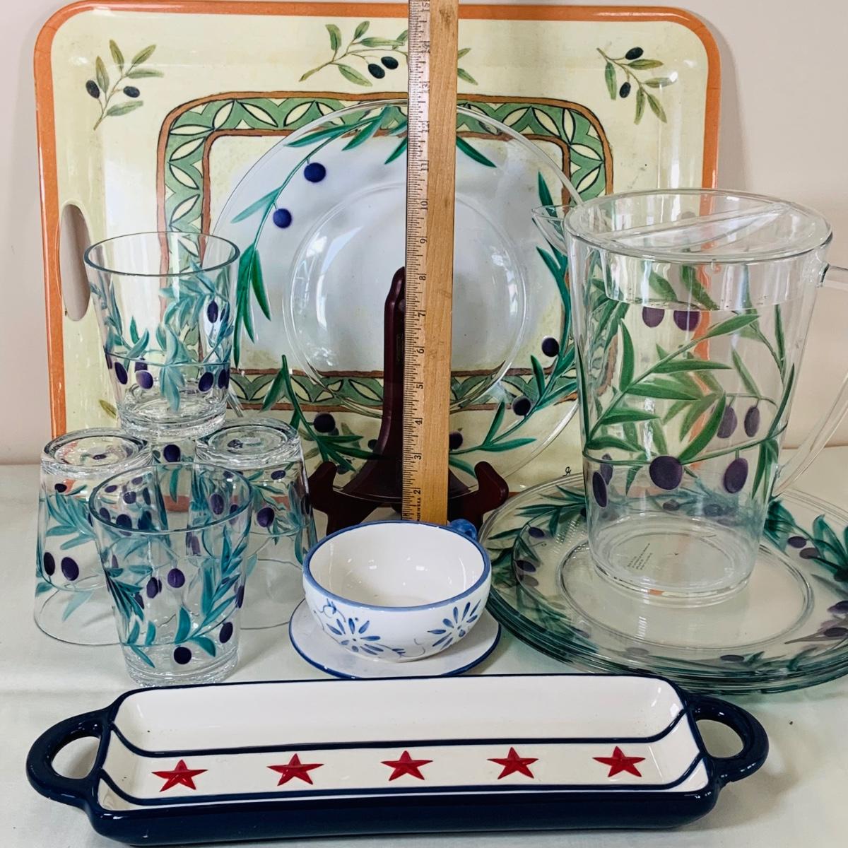 LOT50: Summertime Entertain Set with Sonoma Cup and Tray, Plastic Glass, Dishes and Pitcher and Serving Tray
