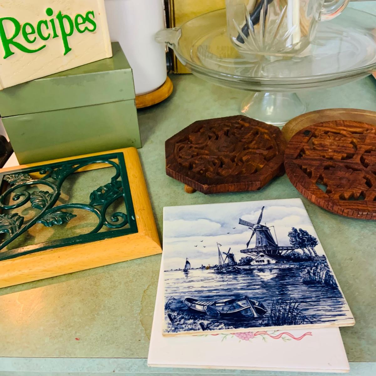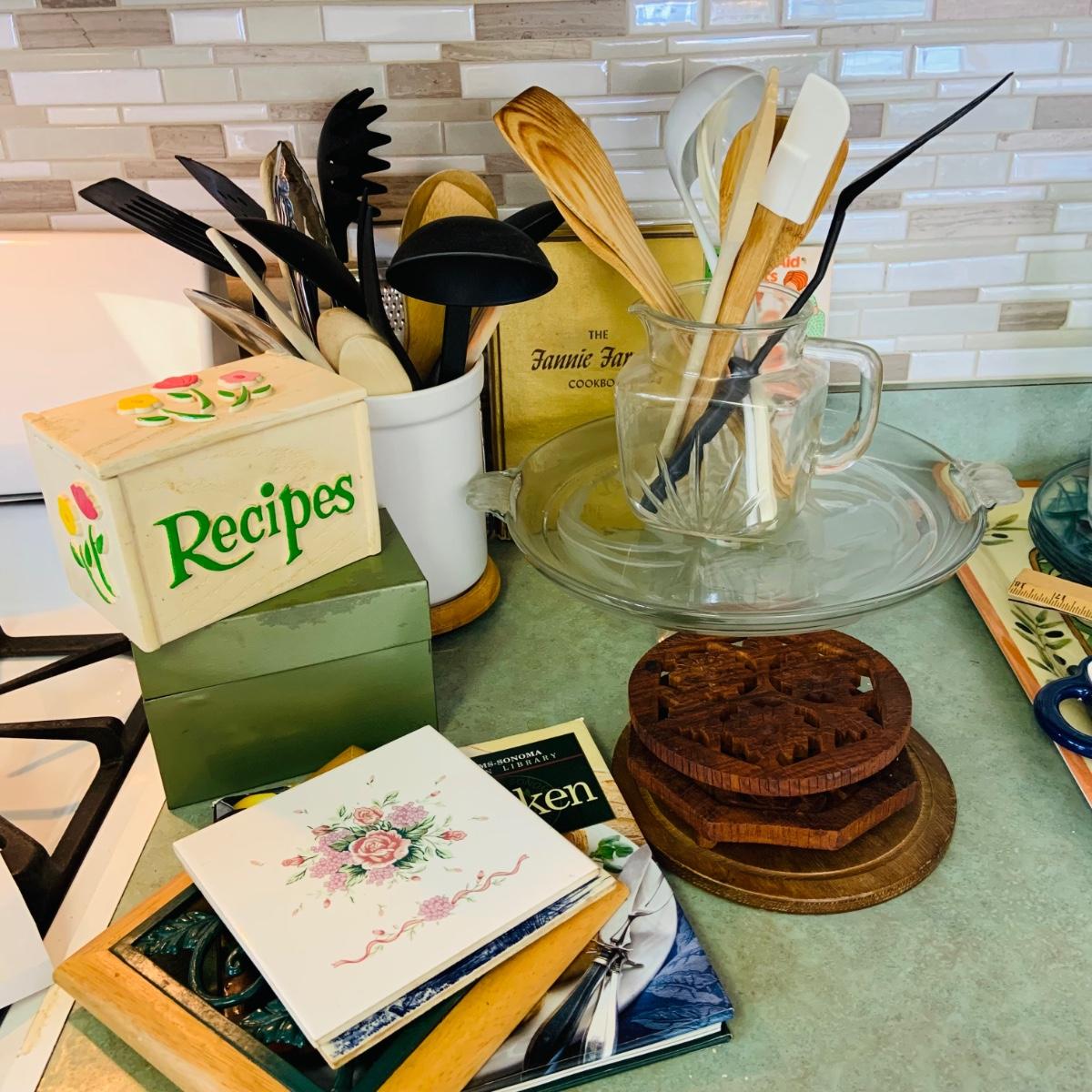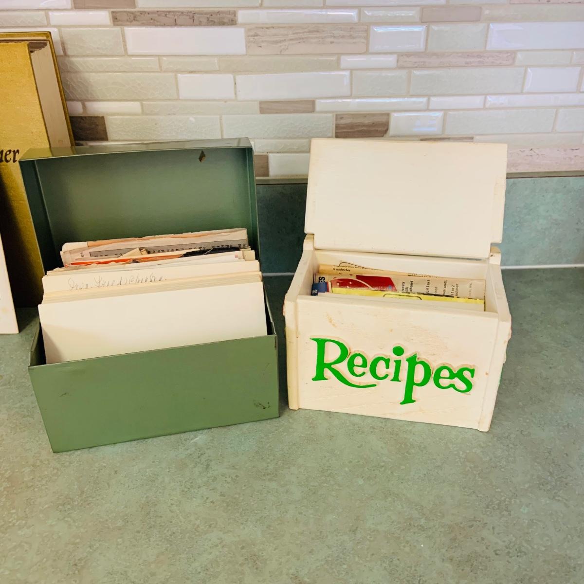 LOT 51: Kitchen Collection Includes Recipe Boxes, Cookbooks Utensils Trivets and More