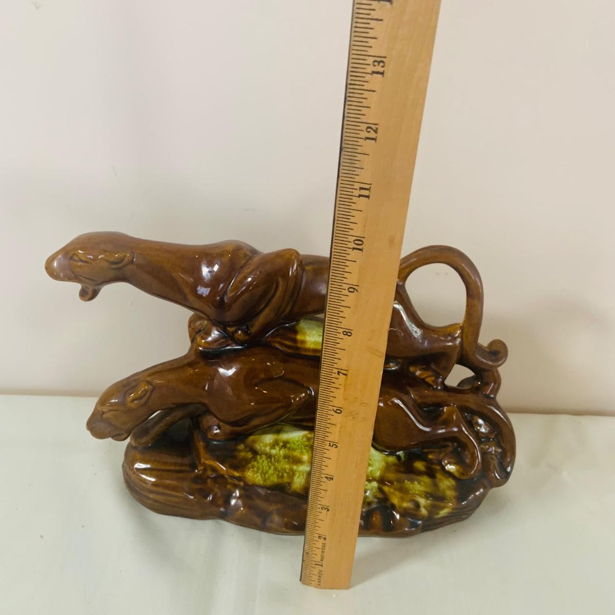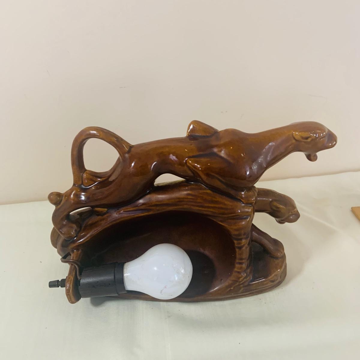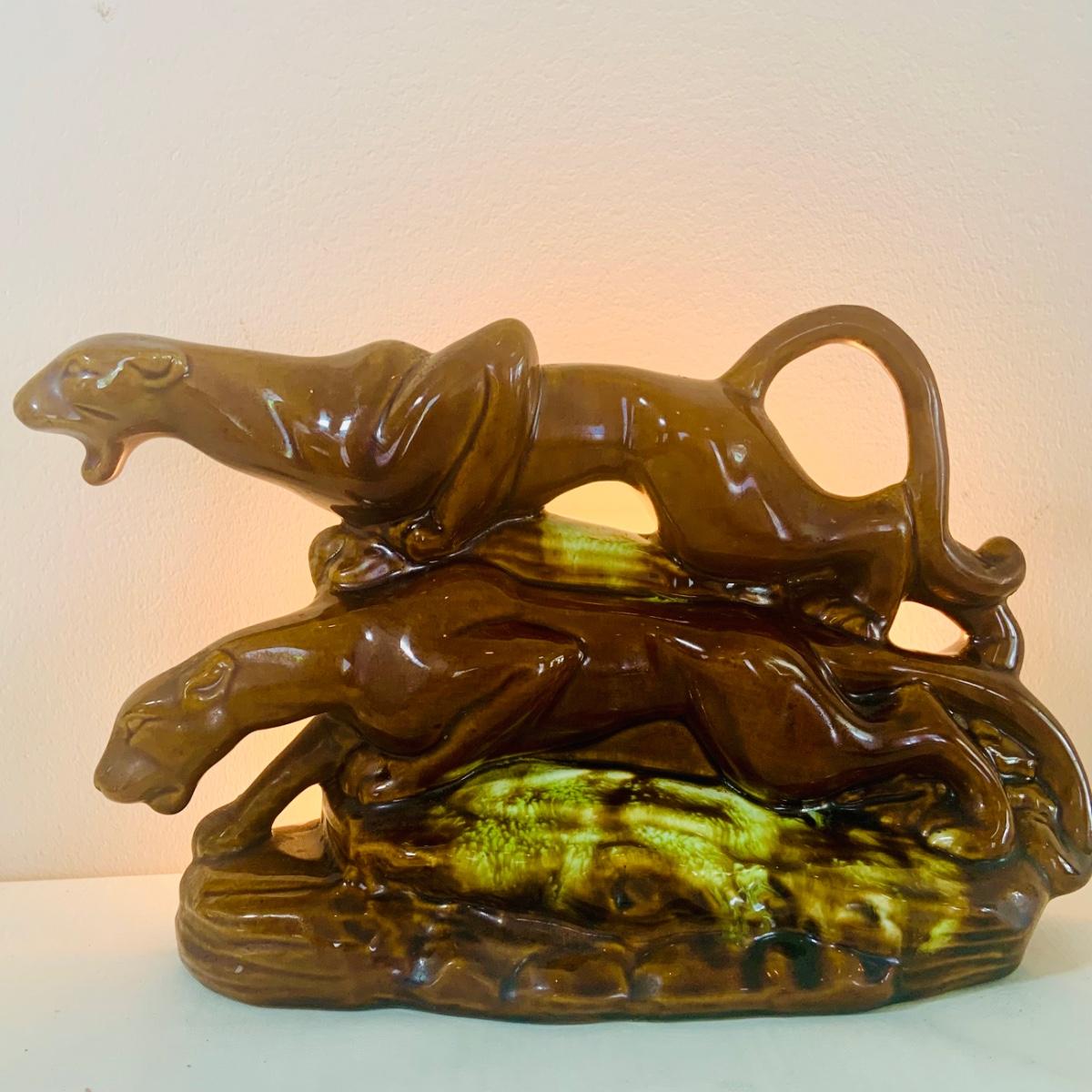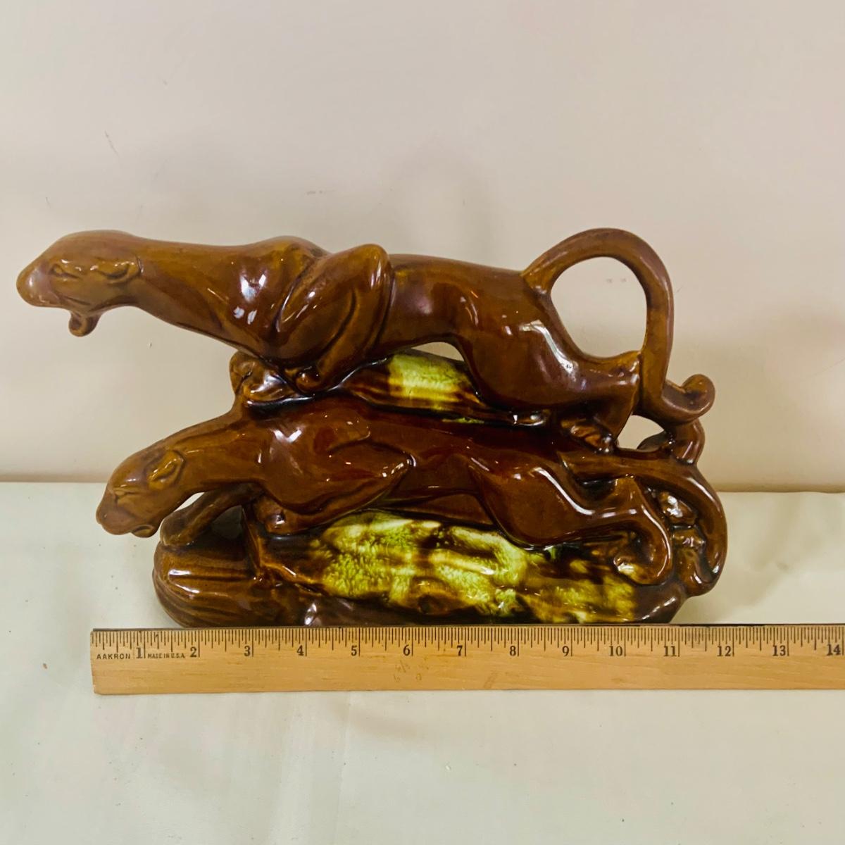LOT 54: Mid Century Double Panther Ceramic Electric Lamp Statue