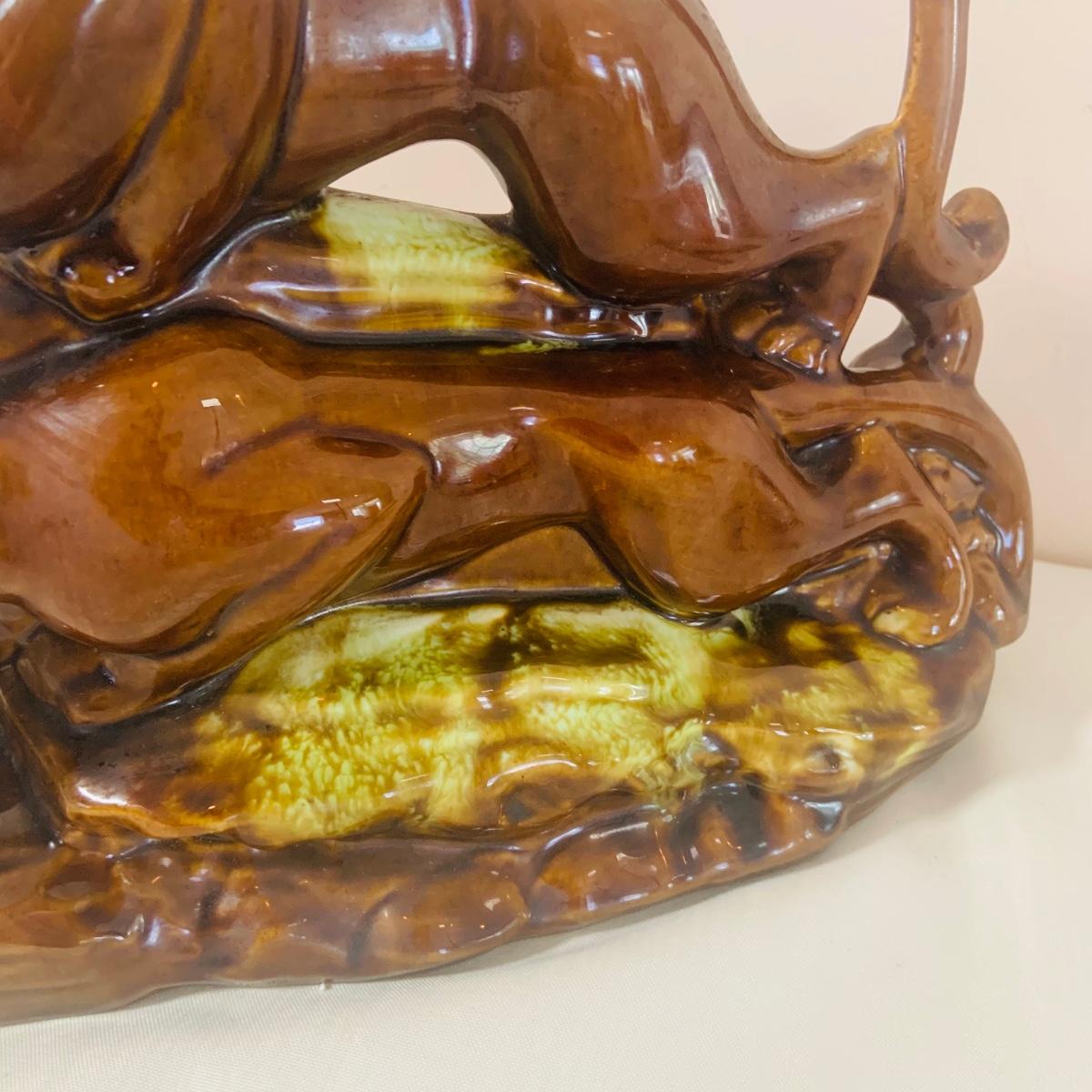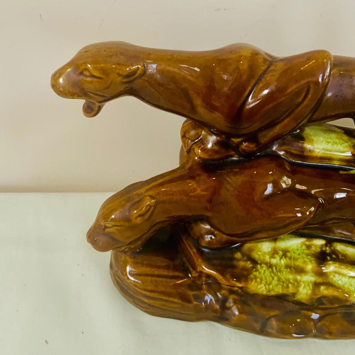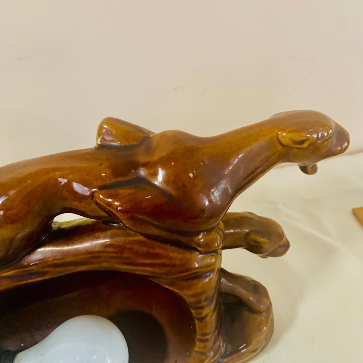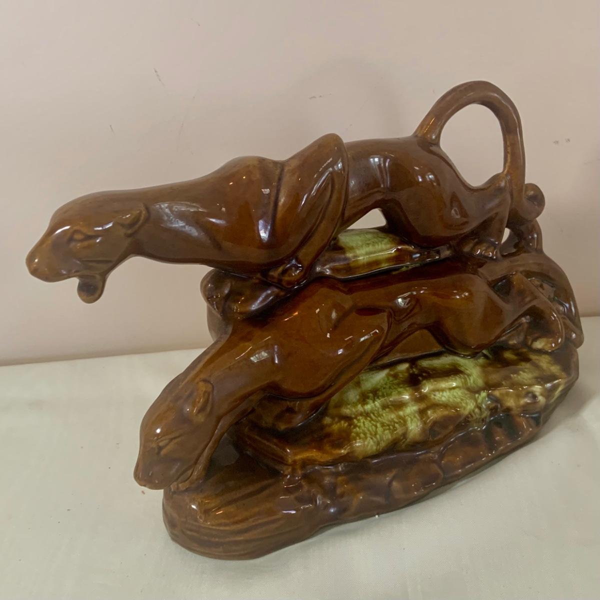 LOT 54: Mid Century Double Panther Ceramic Electric Lamp Statue