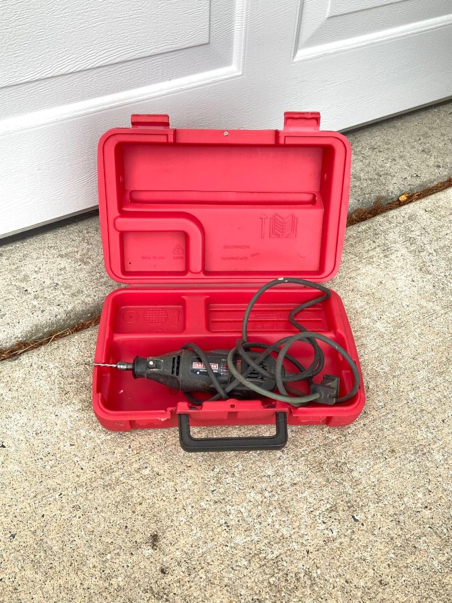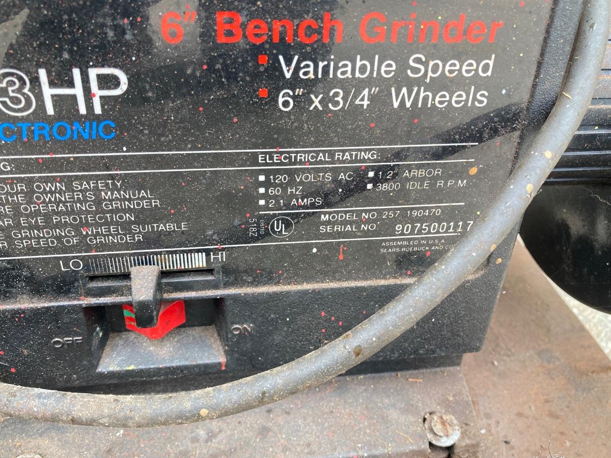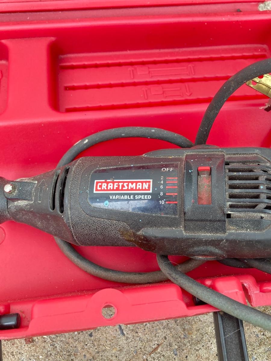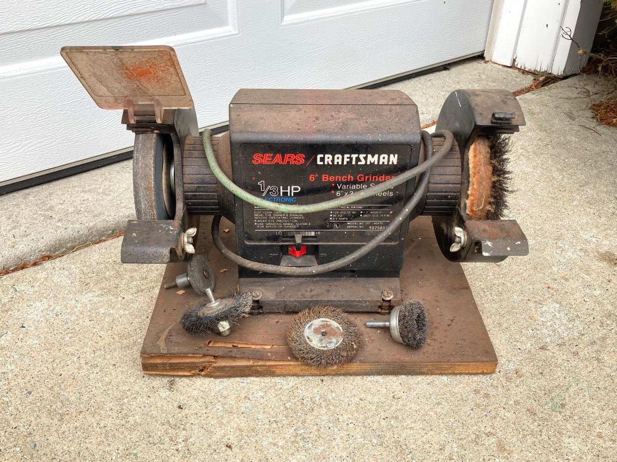 LOT 58: Sears Craftsman Bench Grinder Model 257 190470, Craftsman Rotary Tool Model 572.610950 with Cases / Accessories and Vintage Hand Tools