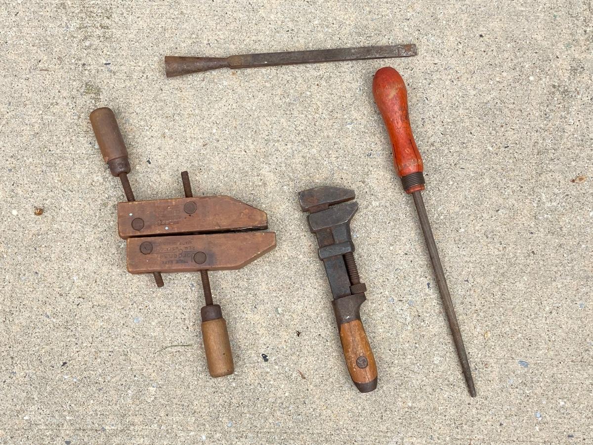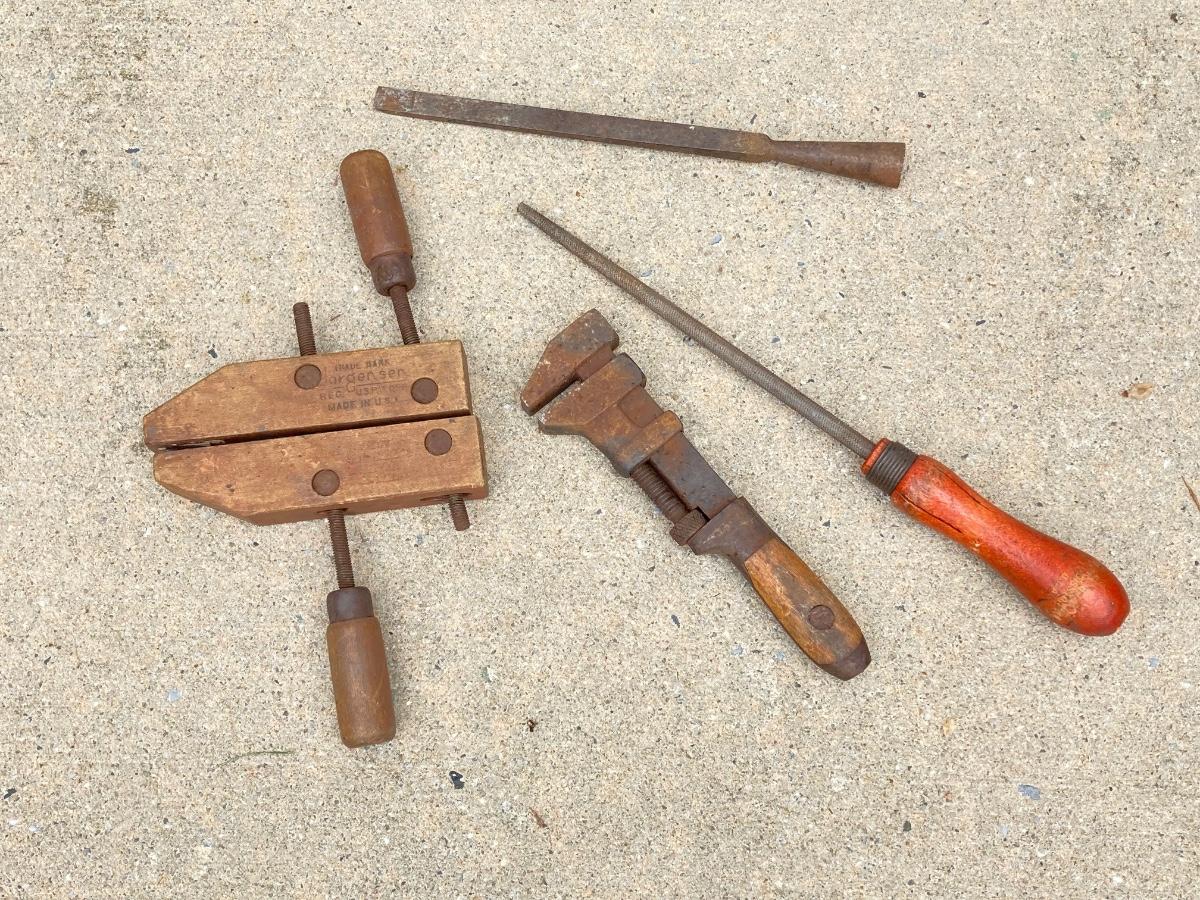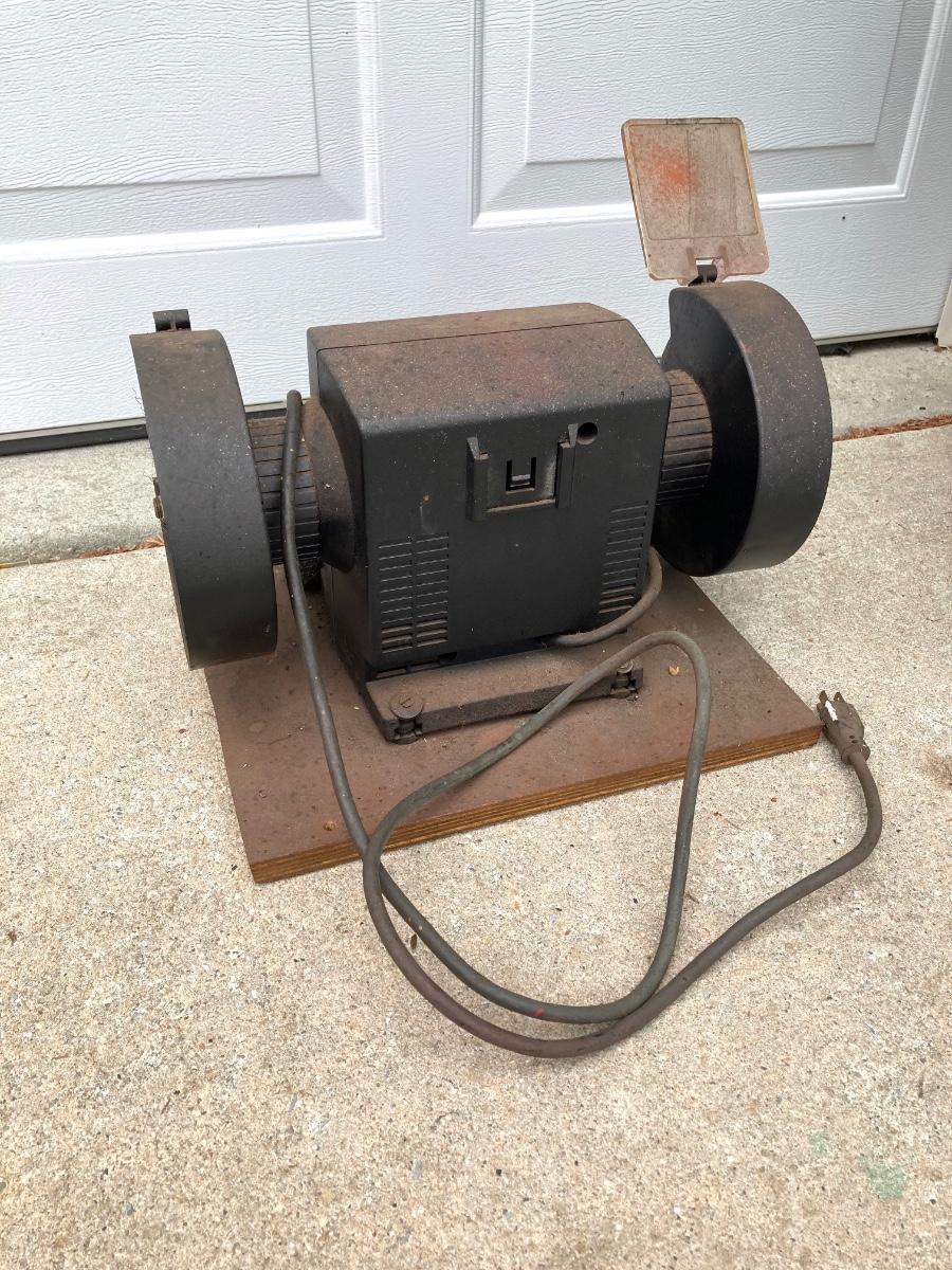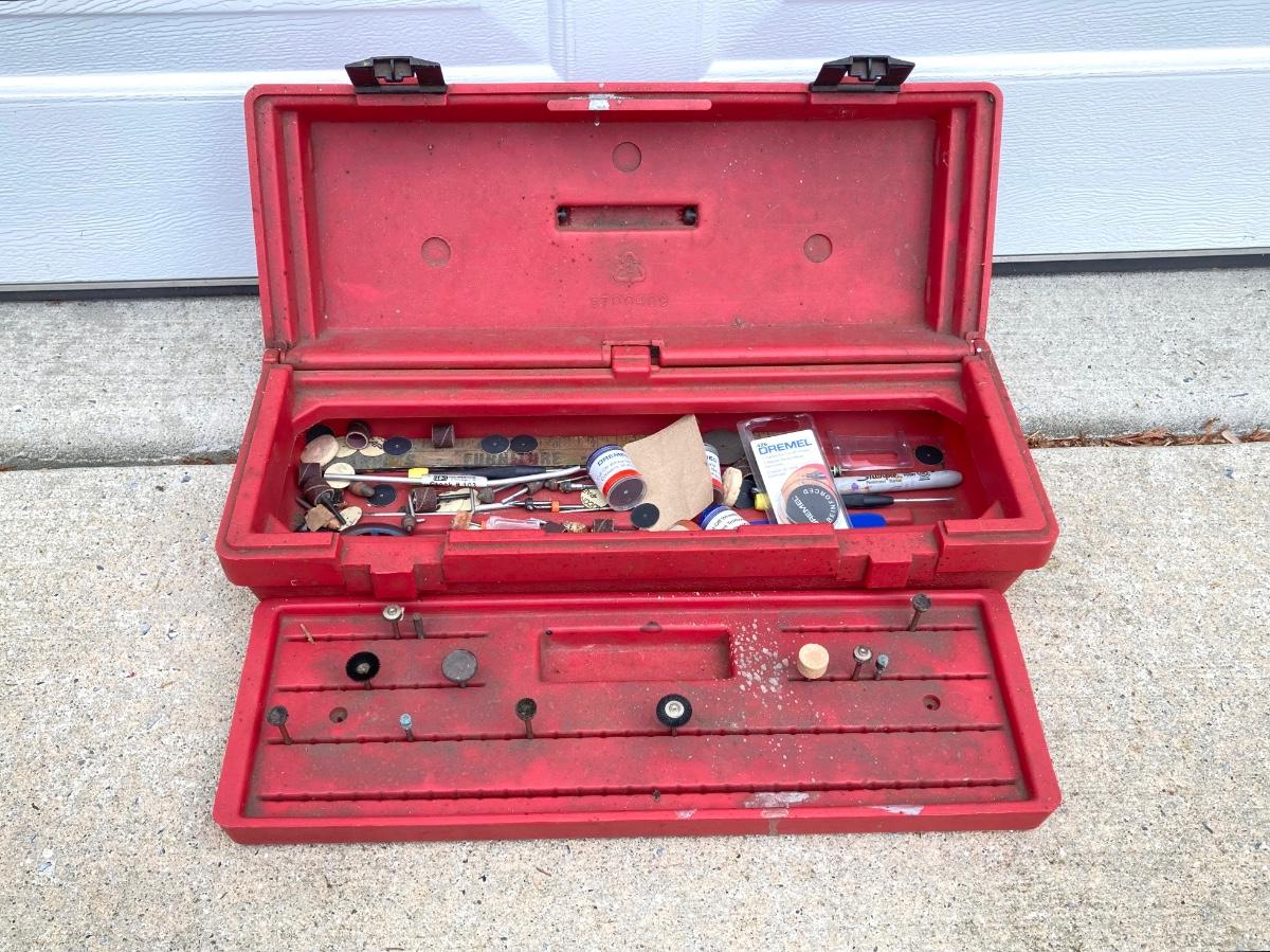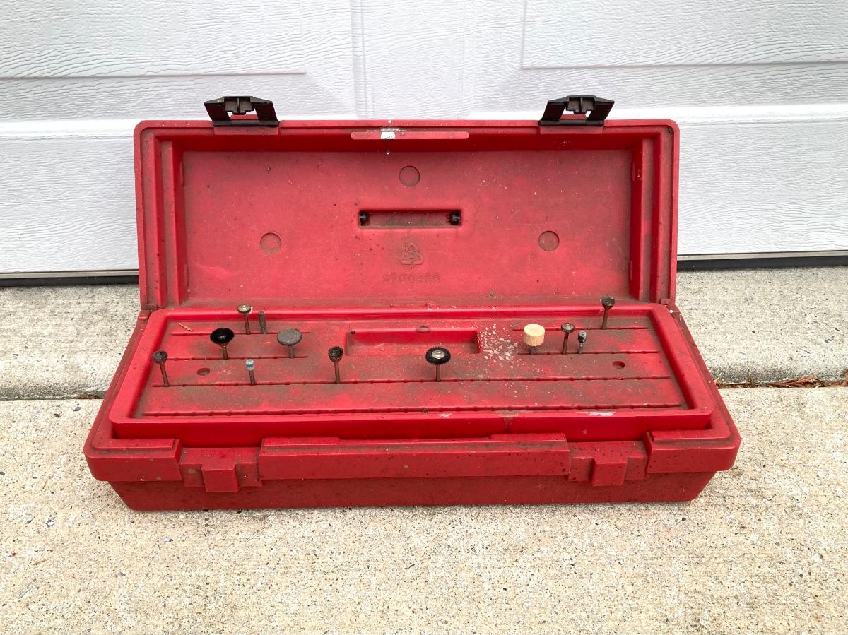 LOT 58: Sears Craftsman Bench Grinder Model 257 190470, Craftsman Rotary Tool Model 572.610950 with Cases / Accessories and Vintage Hand Tools