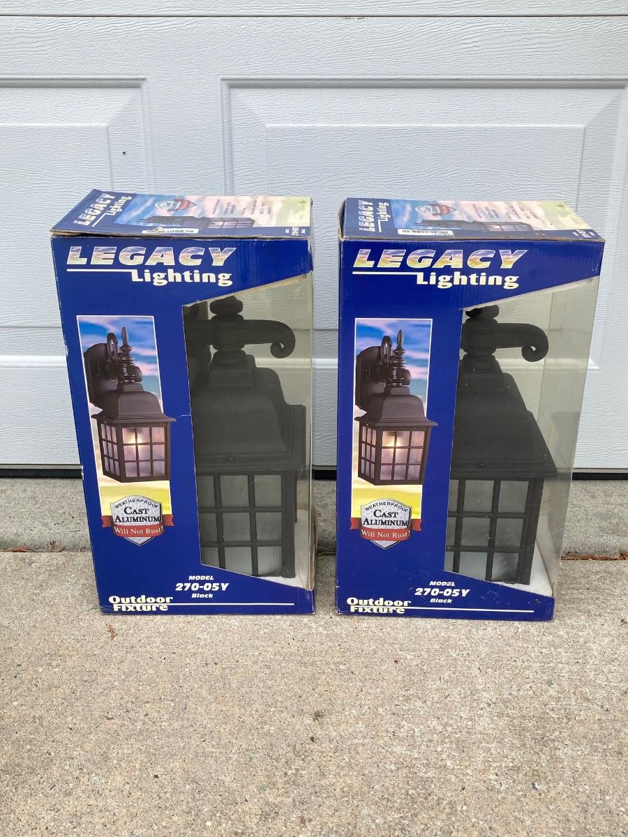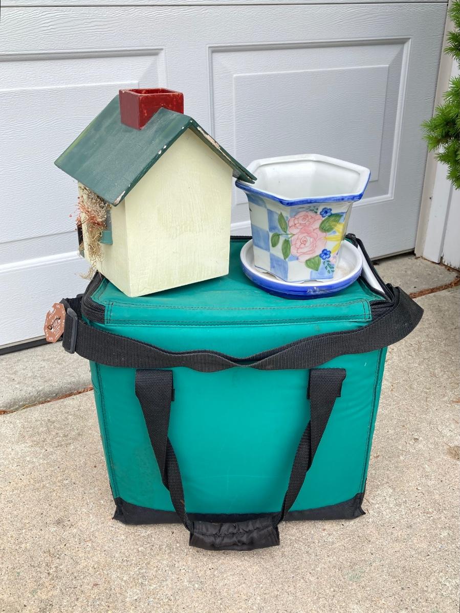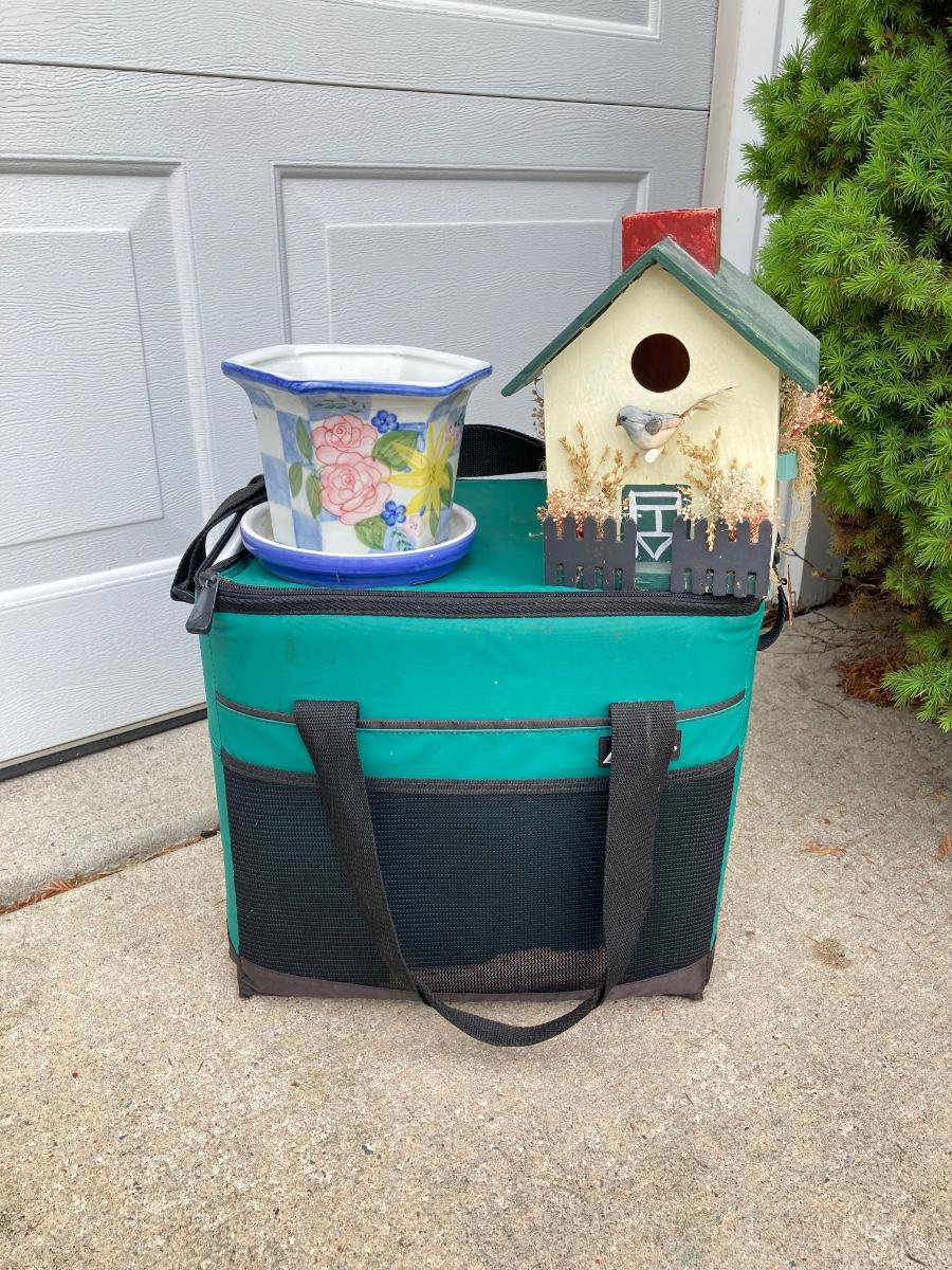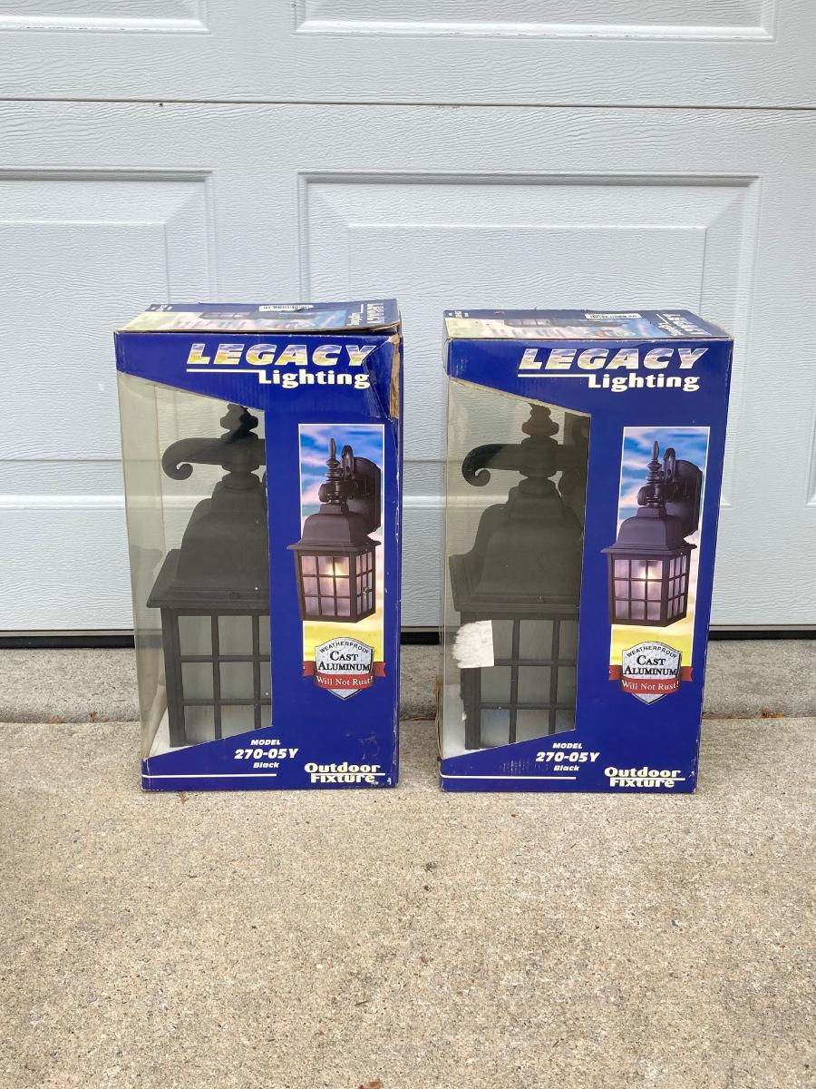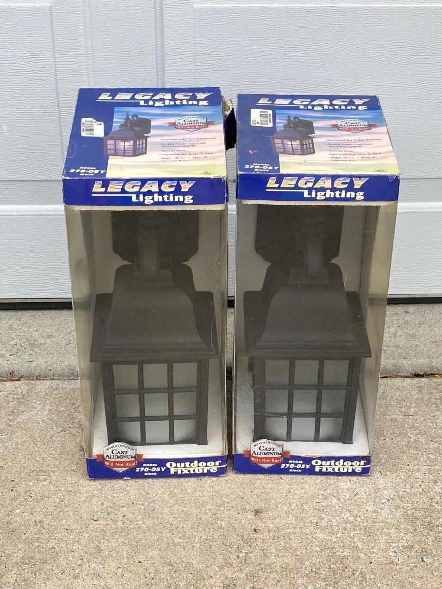 LOT 63: Outdoor Lawn and Garden Collection - Pair of Legacy Lighting Outdoor Fixtures, Planters / Plant Stand, Bird Houses, Cooler, Binoculars and More