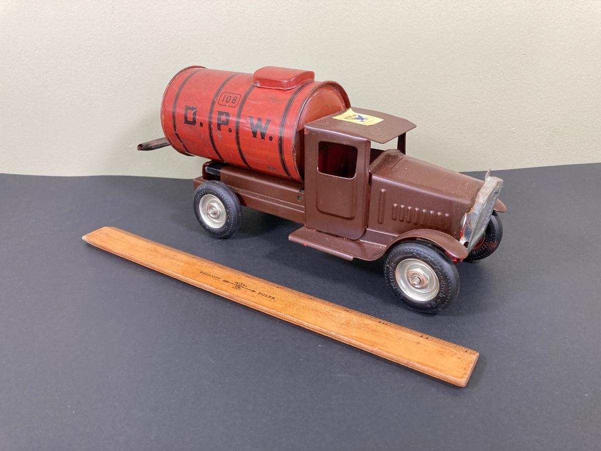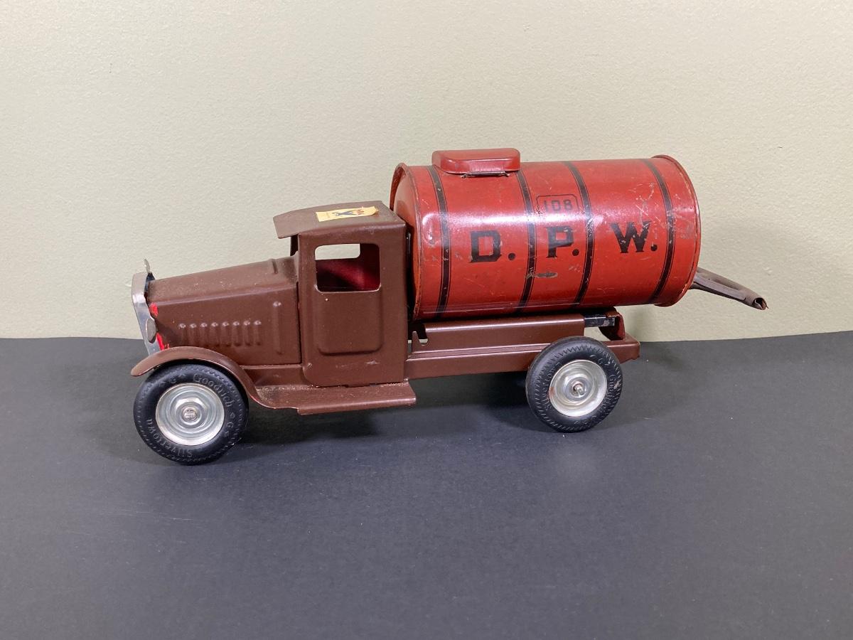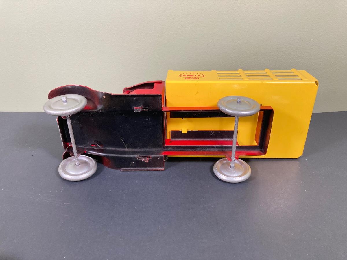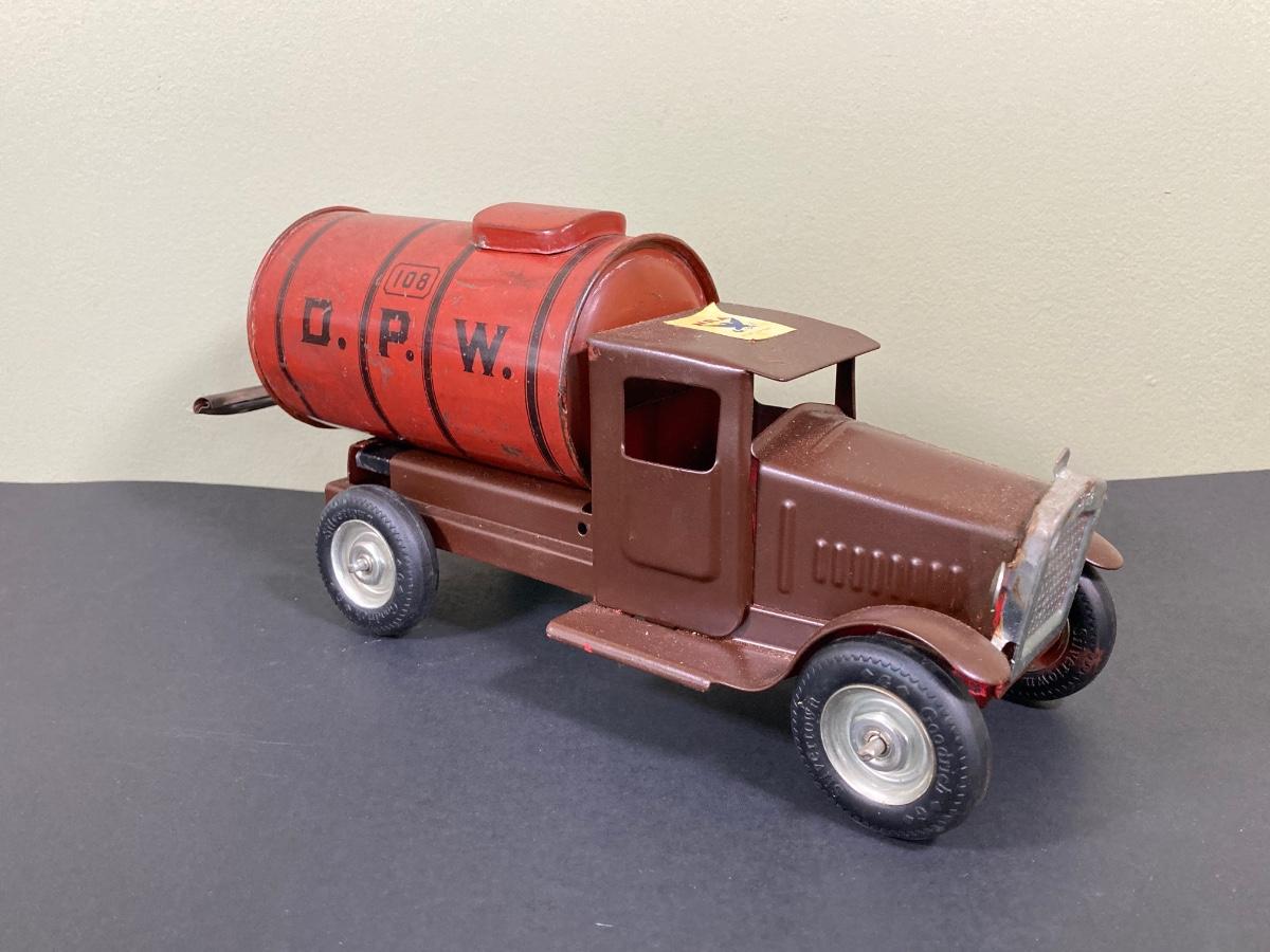 LOT 68: Shell Oil Metal Truck with Miniature Oil Drums and D.P.W. Oil Delivery Truck (Metalcraft Gearbox)