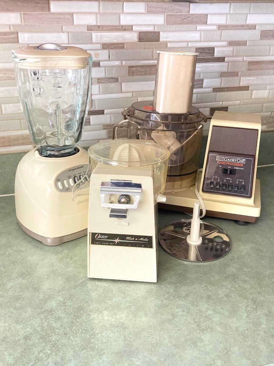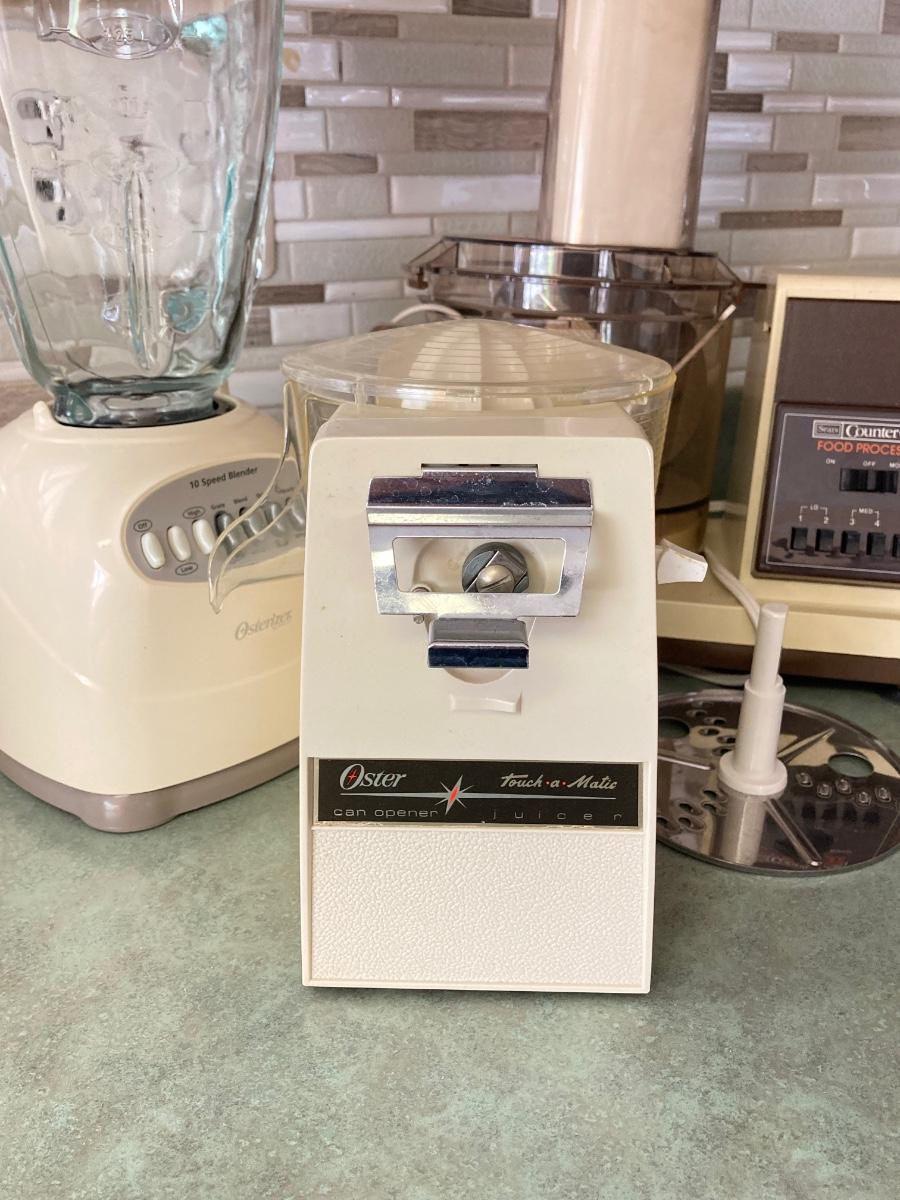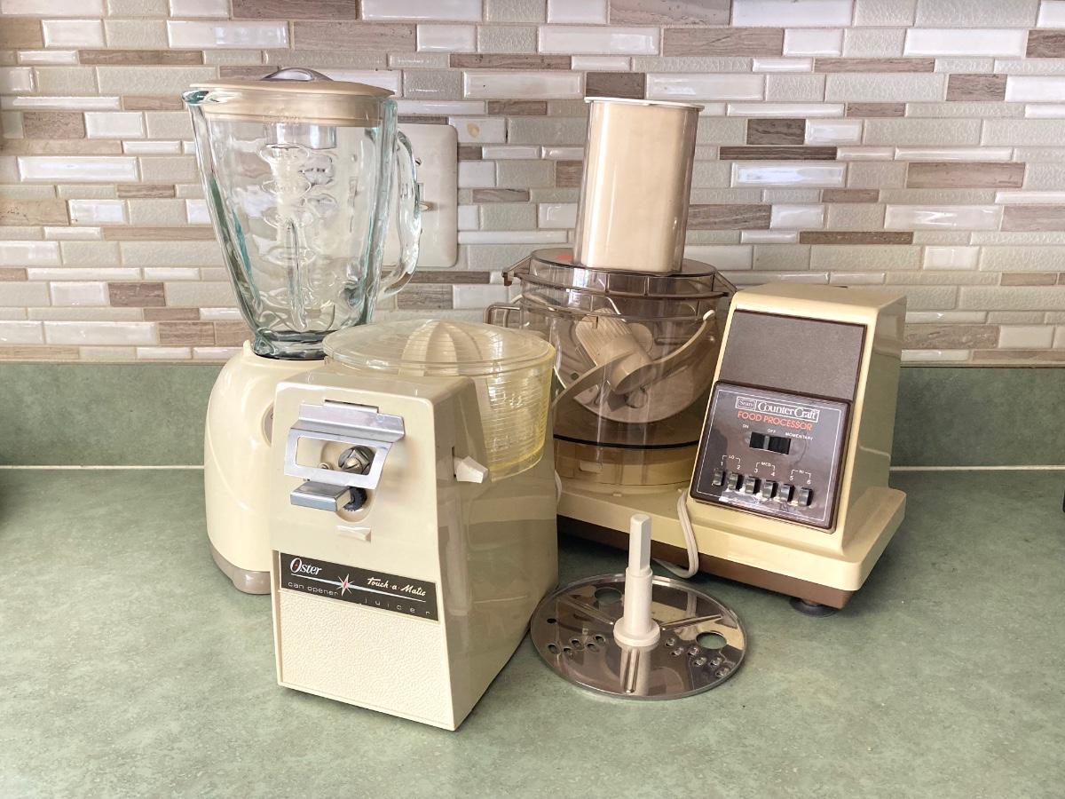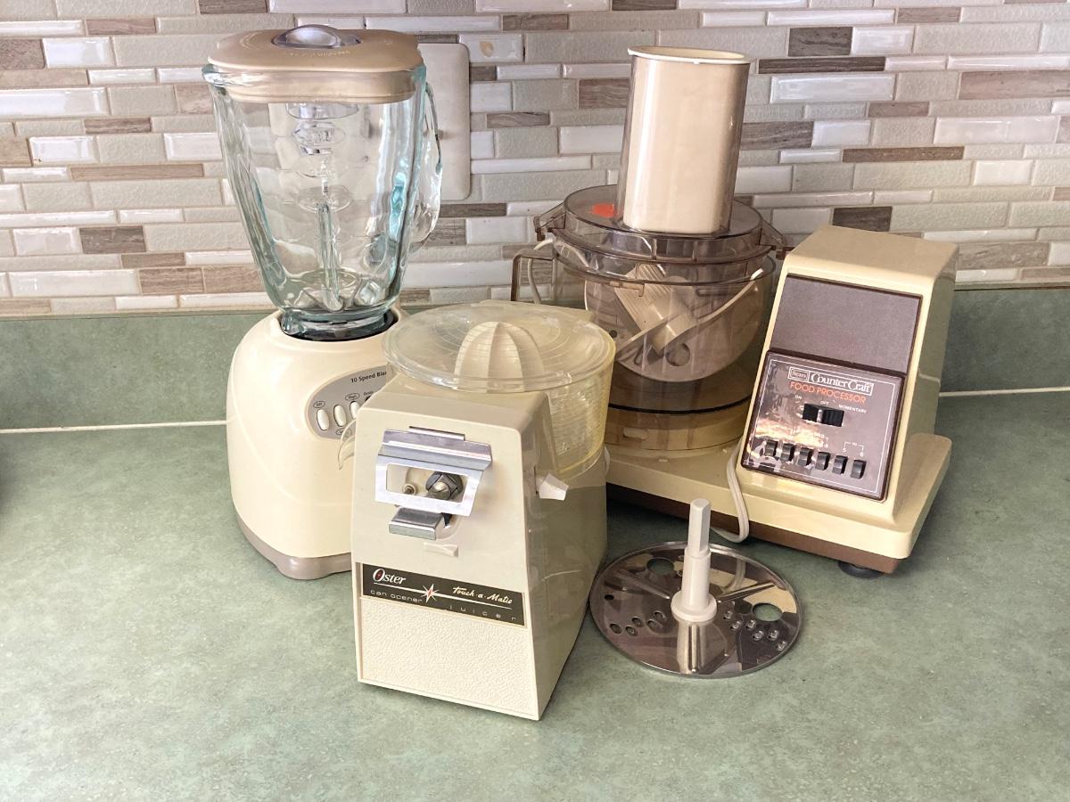 LOT 70: Kitchen Appliances - Osterizer Blender, Sears Counter Craft Food Processor and Oster Touch-a-Matic Can Opener / Juicer