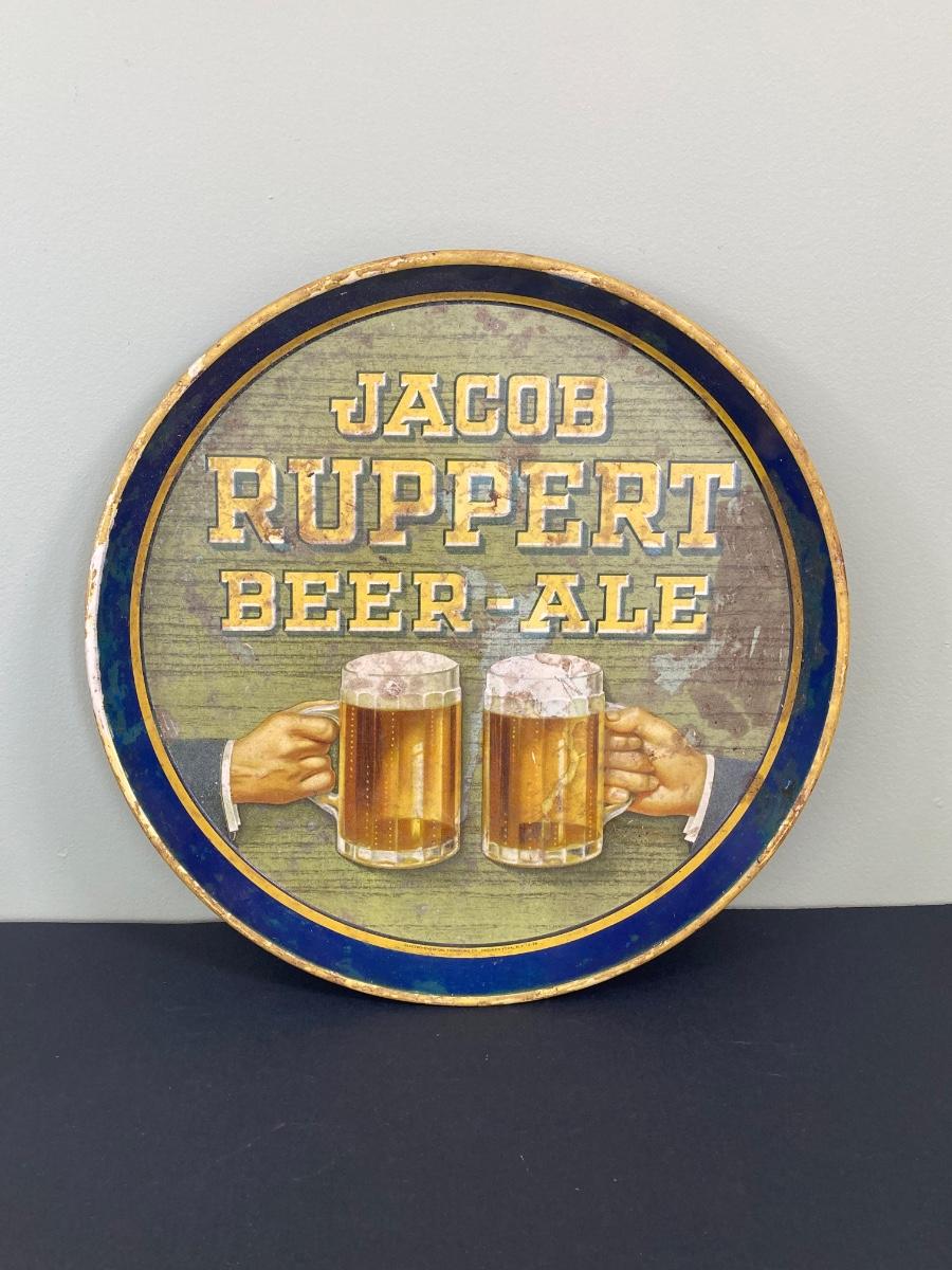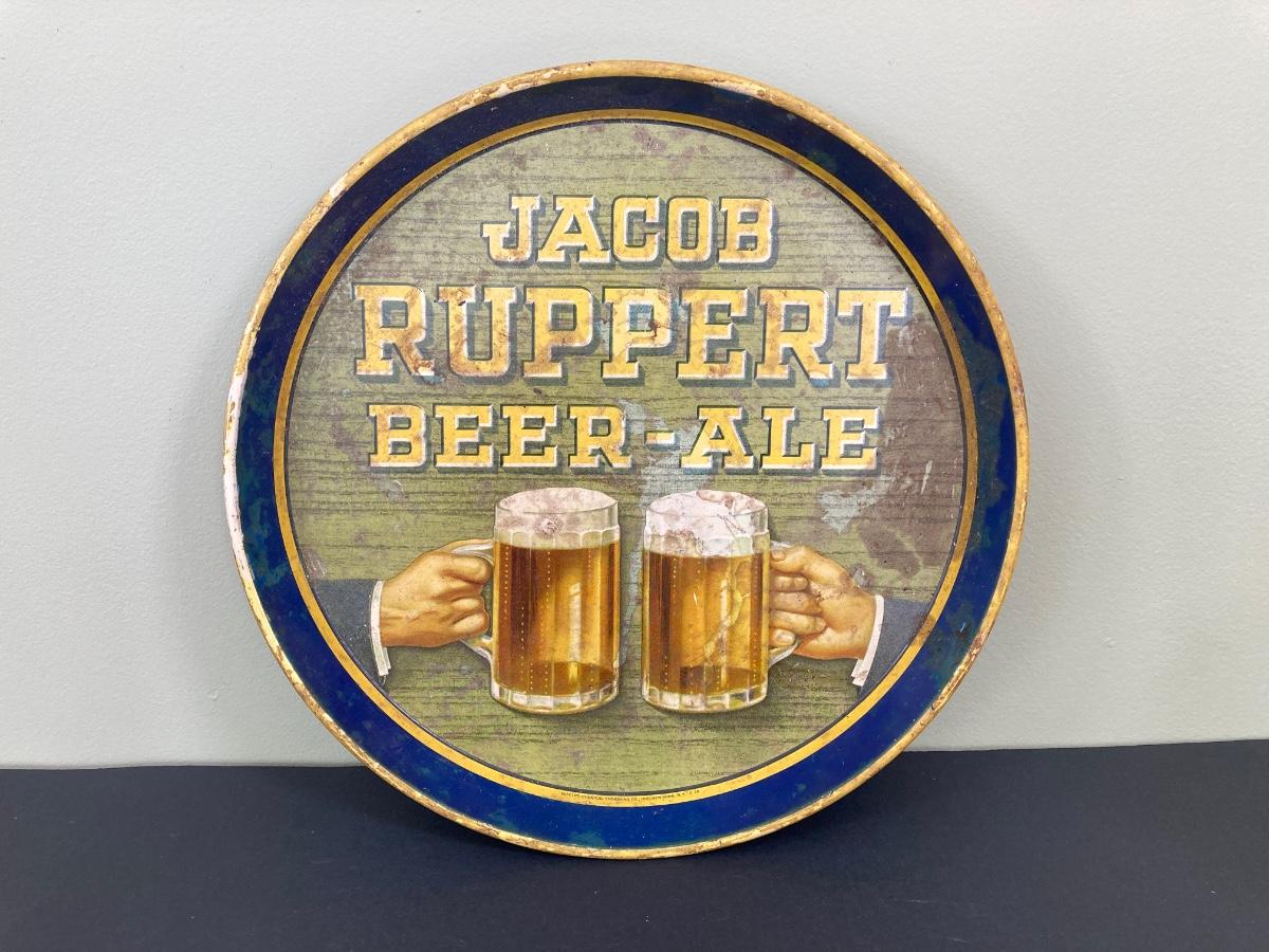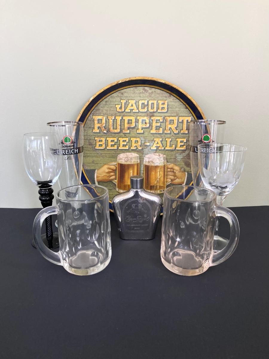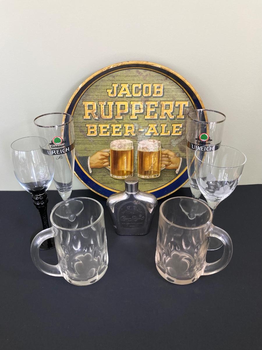 LOT 72: Vintage Jacob Ruppert Beer-Ale Metal Tray, Eichbaum Ureich Glasses, Crown Royal Flask and More