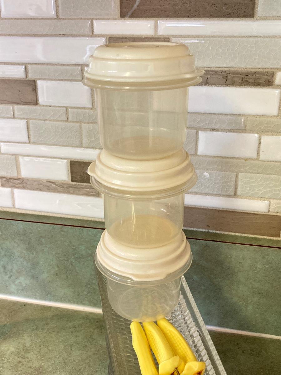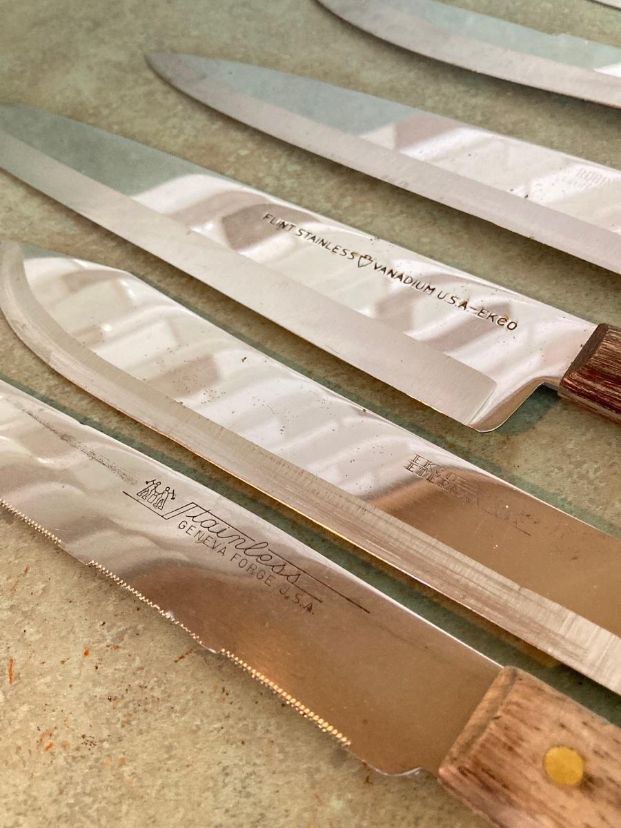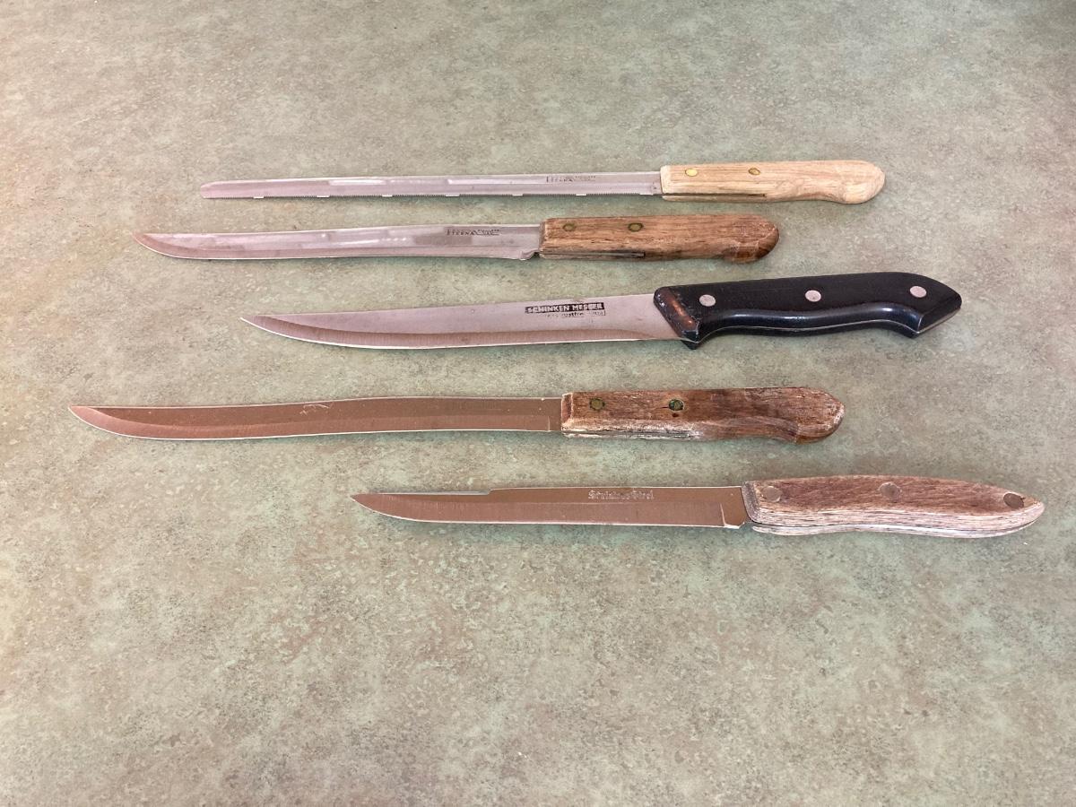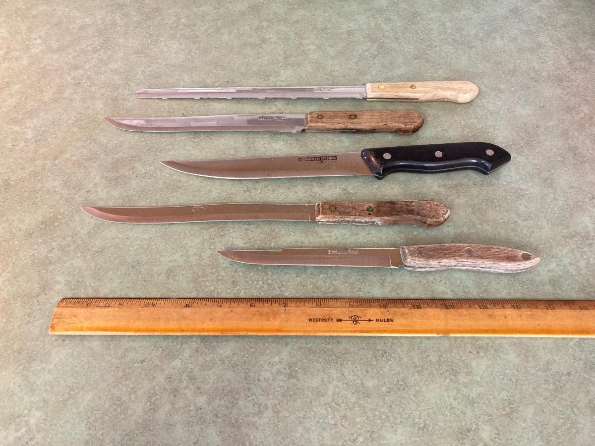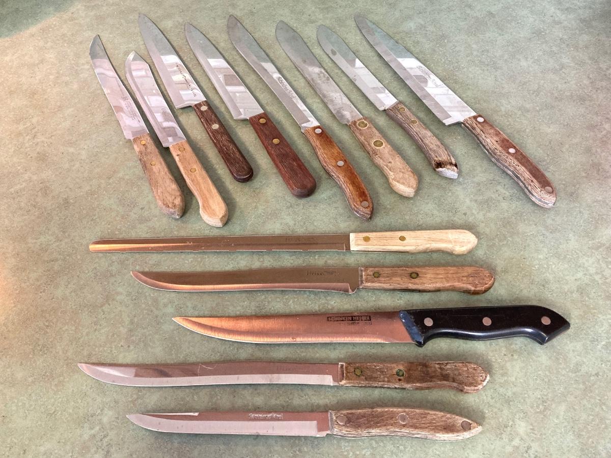 LOT 75: Kitchen Essentials - OGGI Corporation Nesting Bowls, Corn Holders, Pyrex Measuring Cup, Hershey's Candy Jar, Punch N Cover, Assorted Stainless Steel Knives, Tupperrware and More
