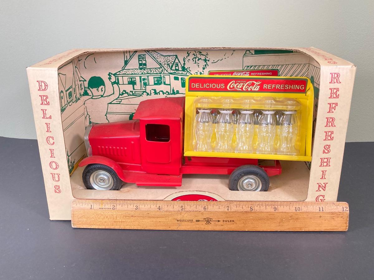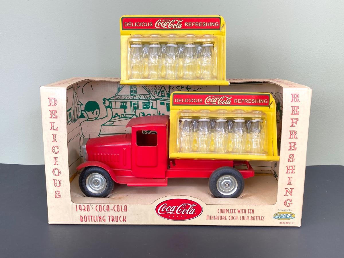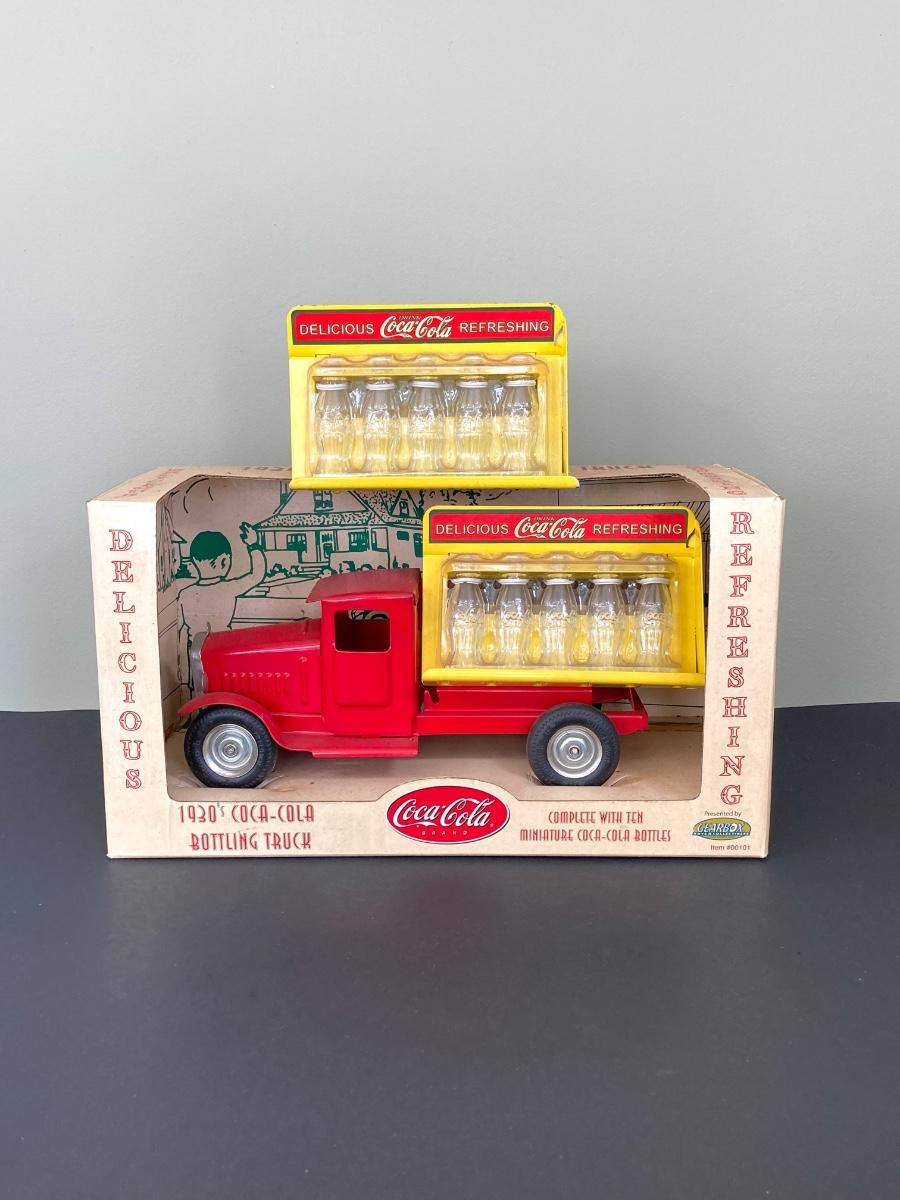LOT 78: 1930's Coca-Cola Metal Toy Truck in Original Box (Gearbox) with Extra Bottles