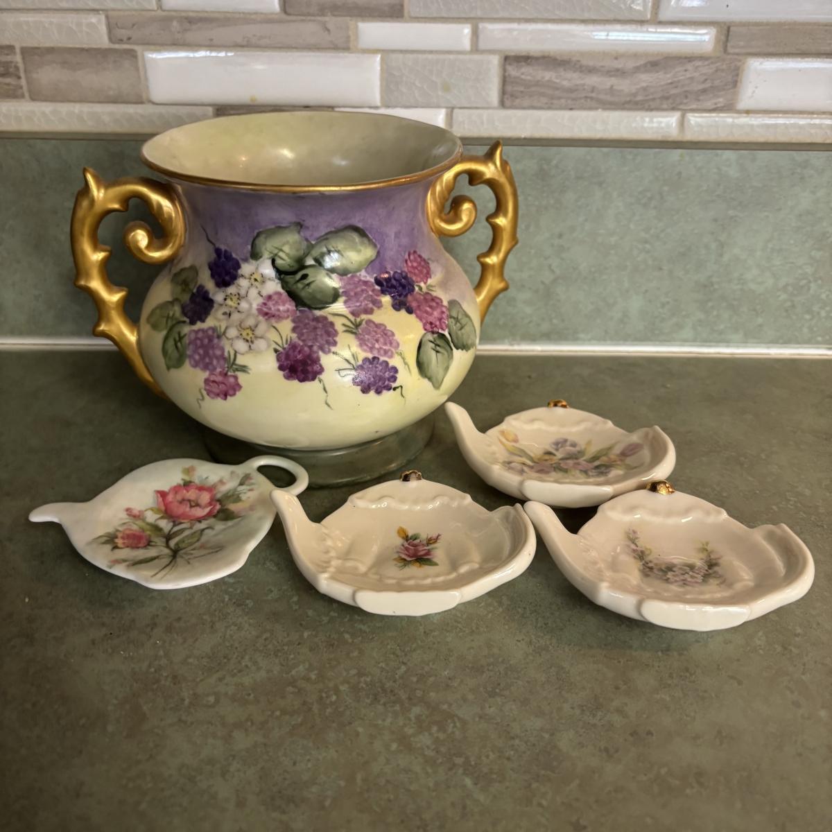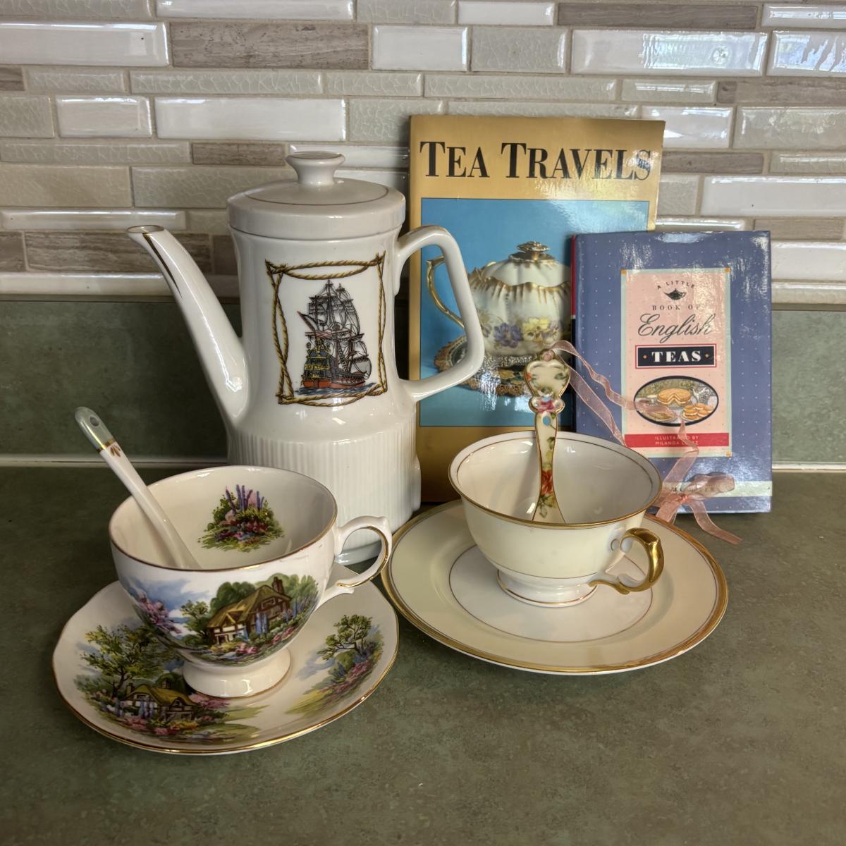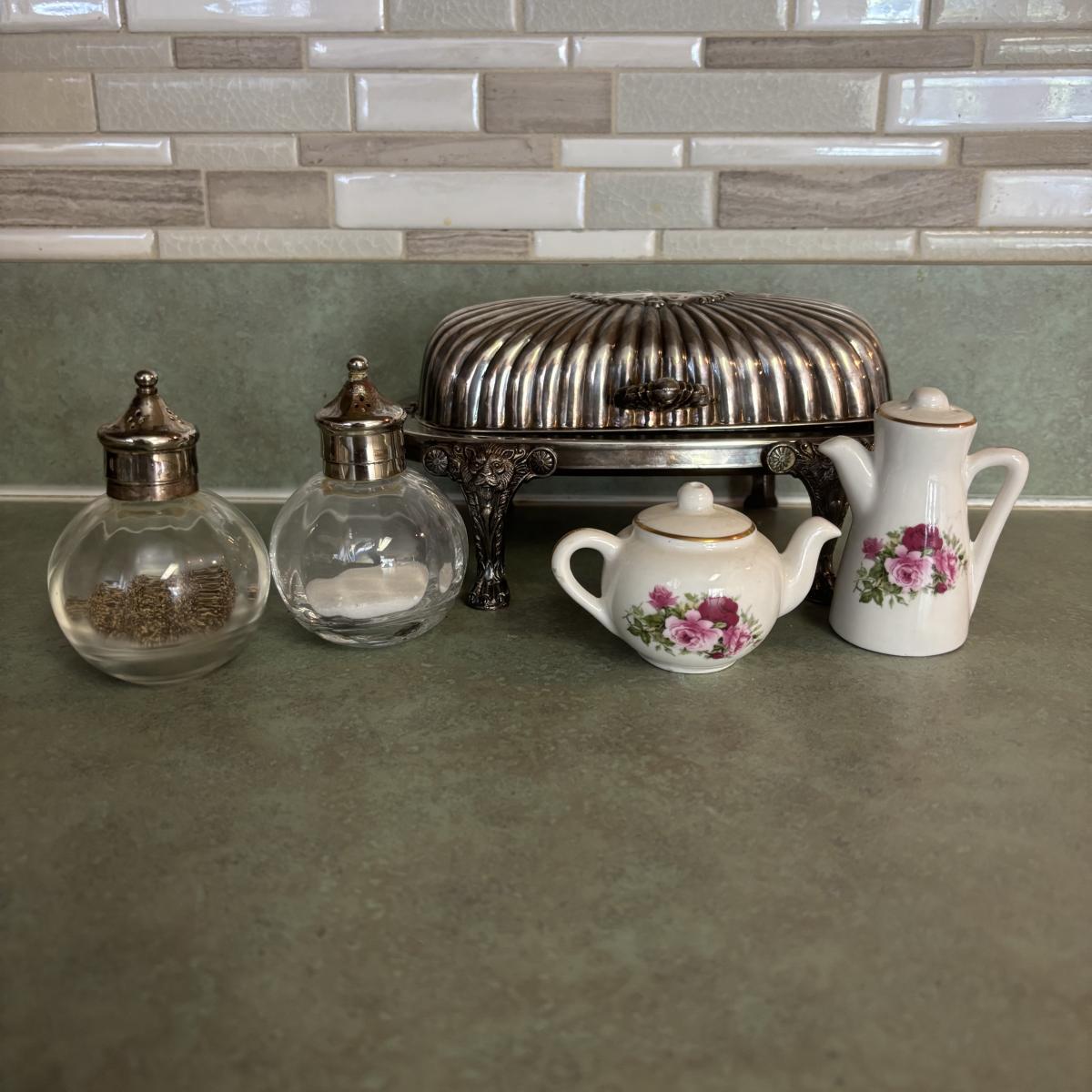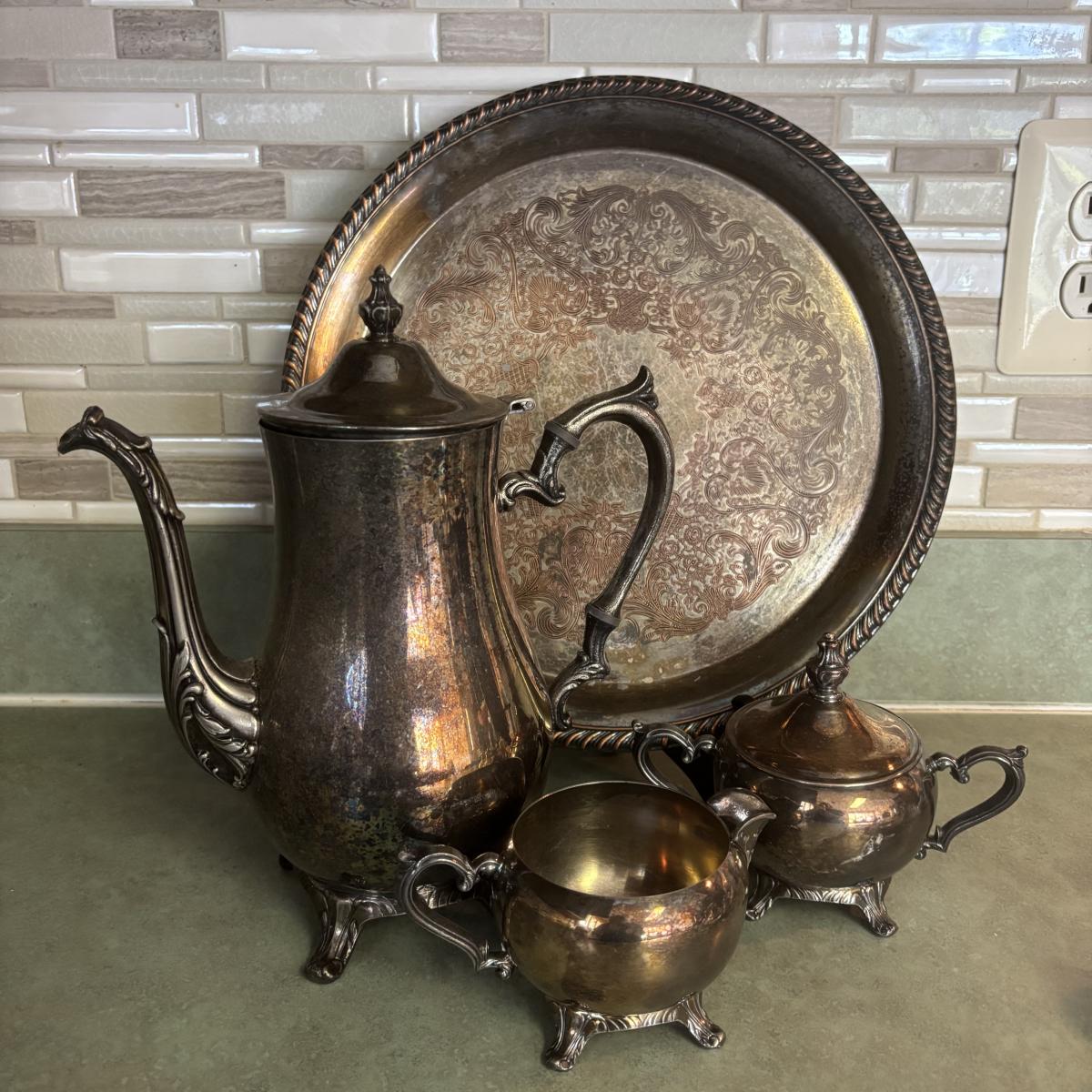 LOT 89: Time for Tea: Silverplate Teapot, Sugar & Creamer, Royal Vale, Meito China, Vintage Electric Teapot, Hand Painted Vase & More