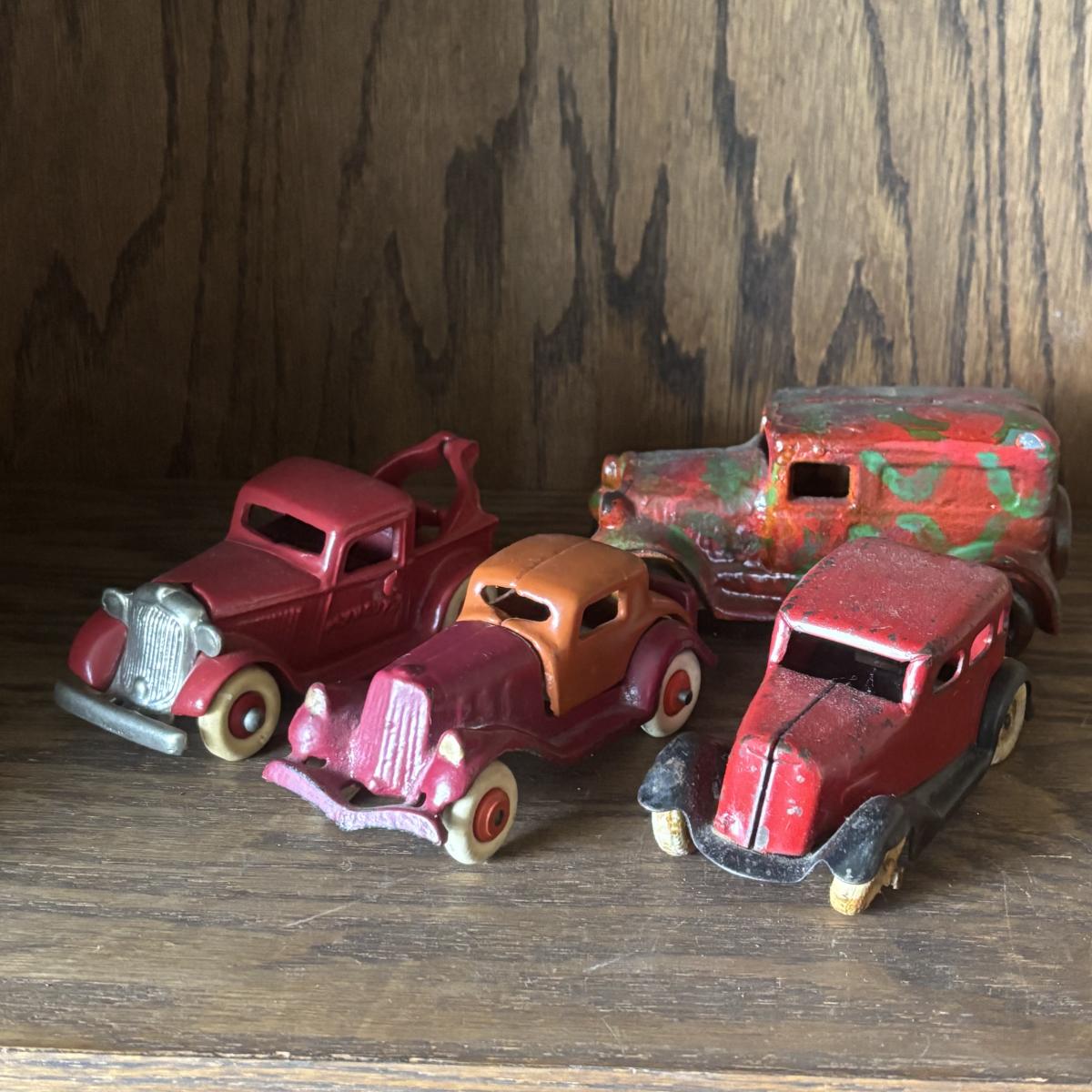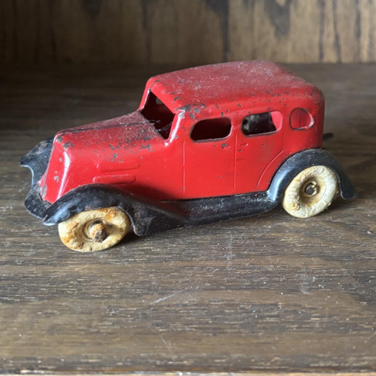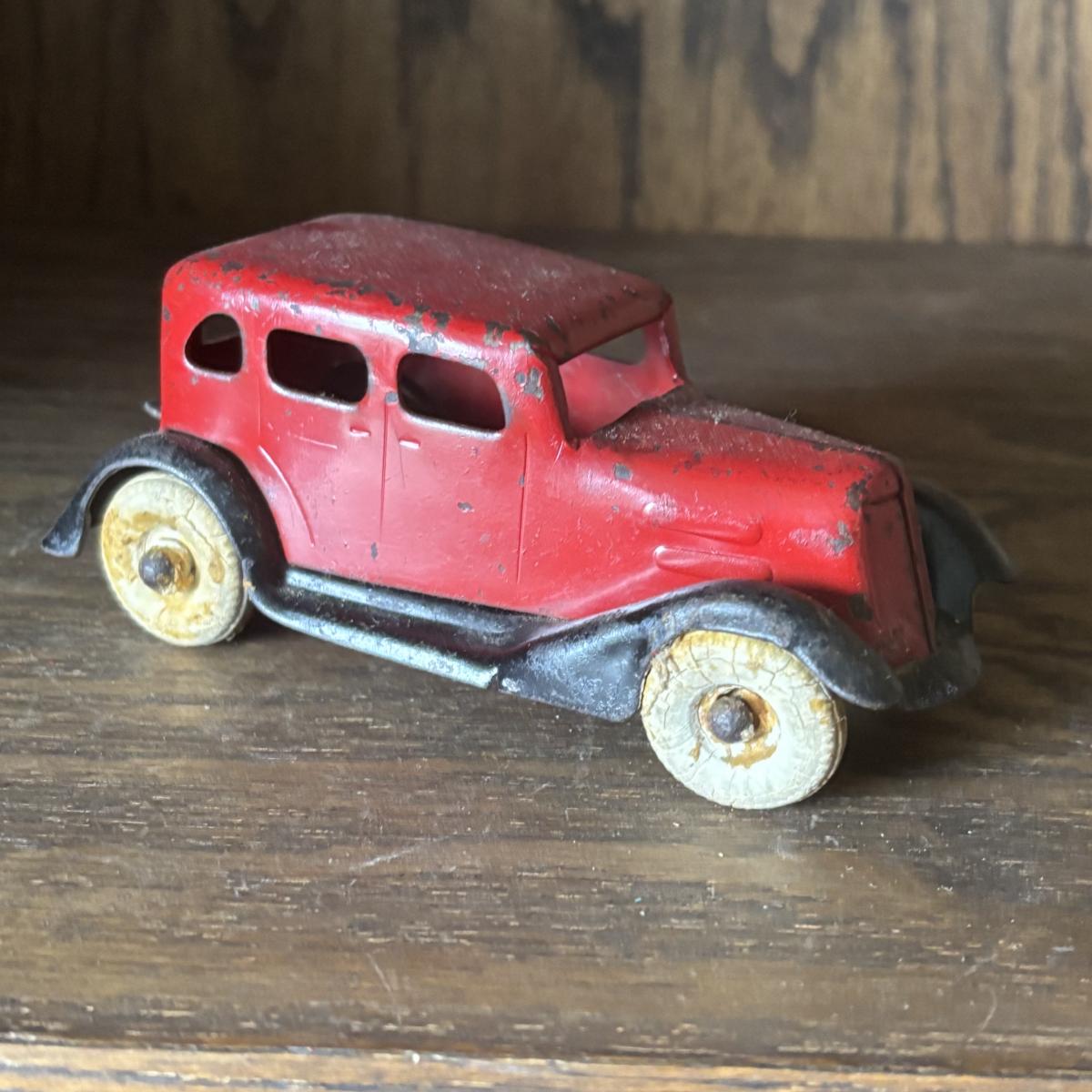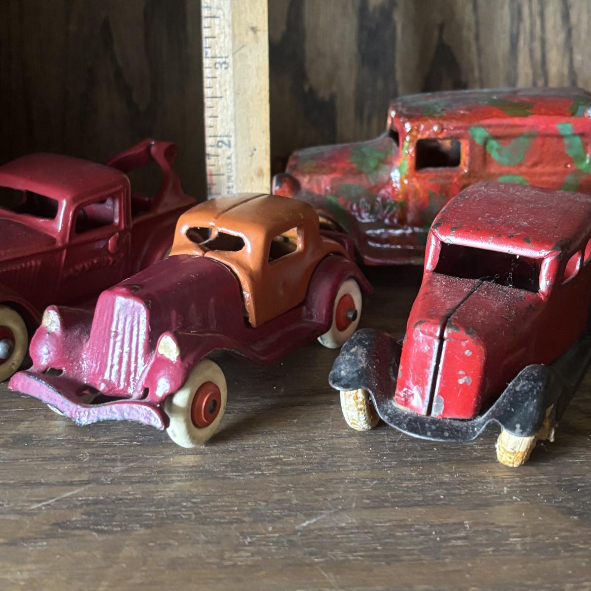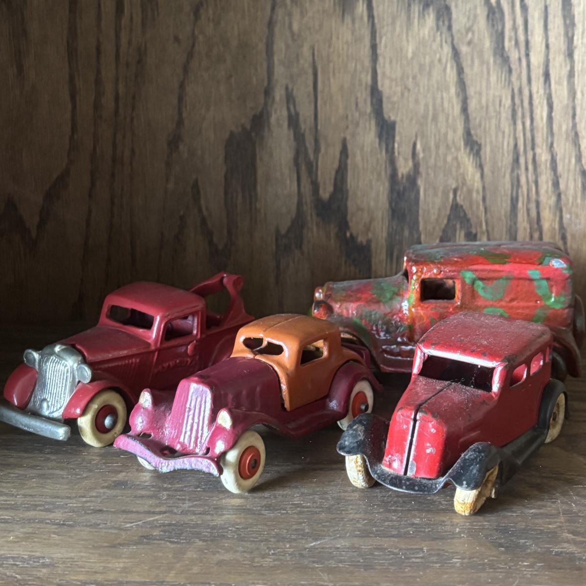 LOT 97: Cast Iron (3) and Tin Toy Car (1