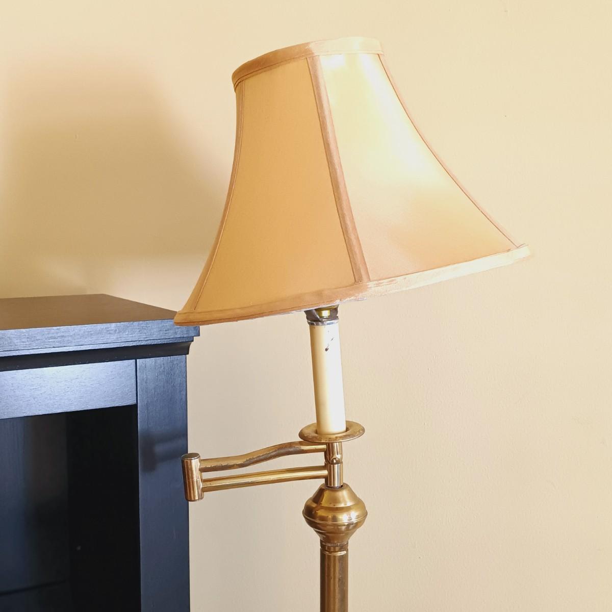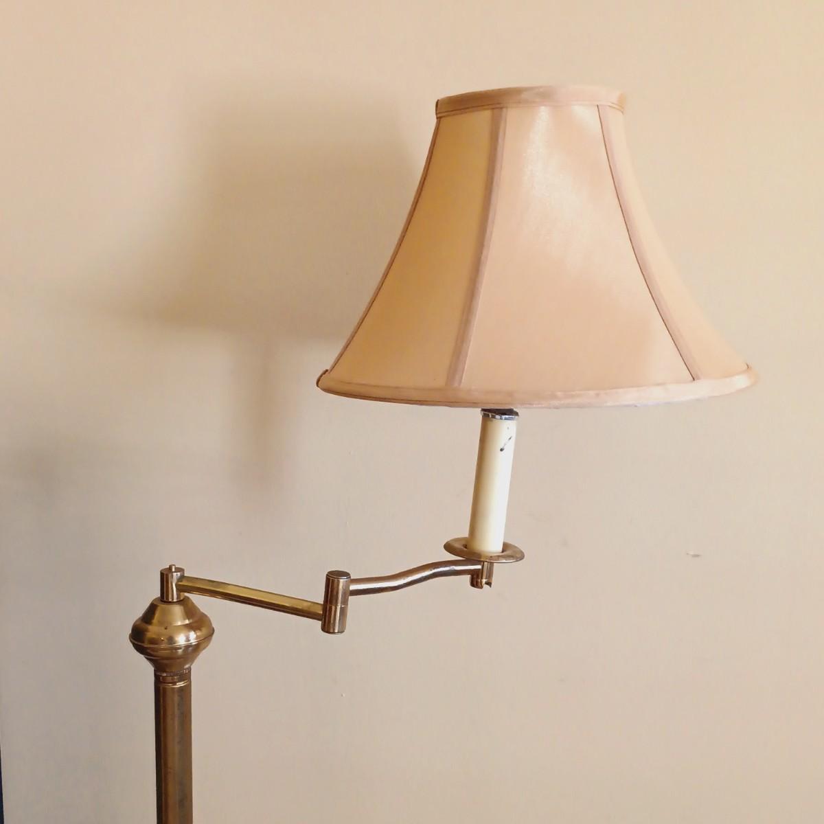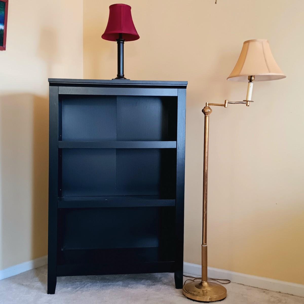 LOT 125: Bookshelf with Metal Swing-Arm Floor Lamp & Table Lamp