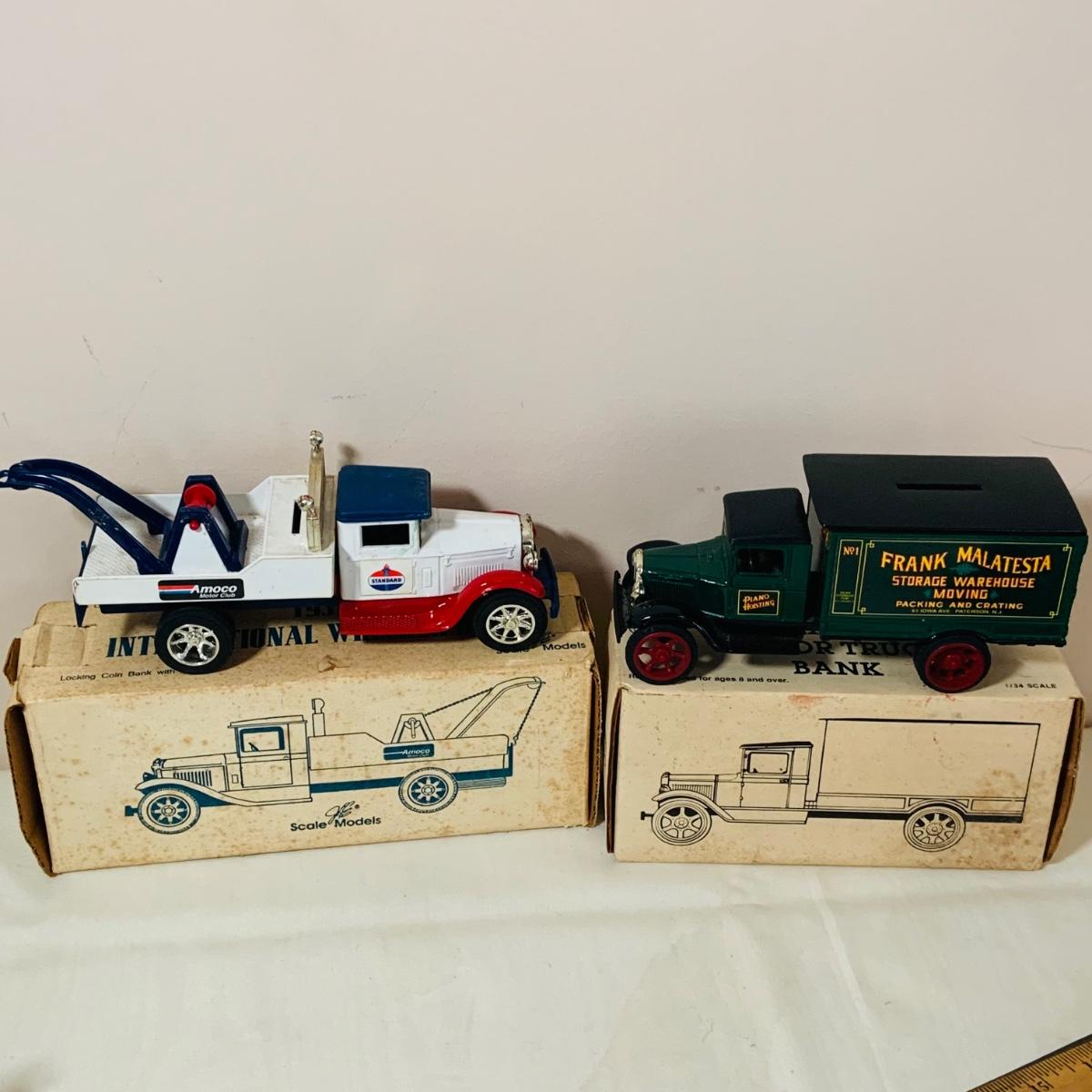 LOT 145: Collection of Ertl Banks/Trucks with Boxes Hubley Toy Truck and More