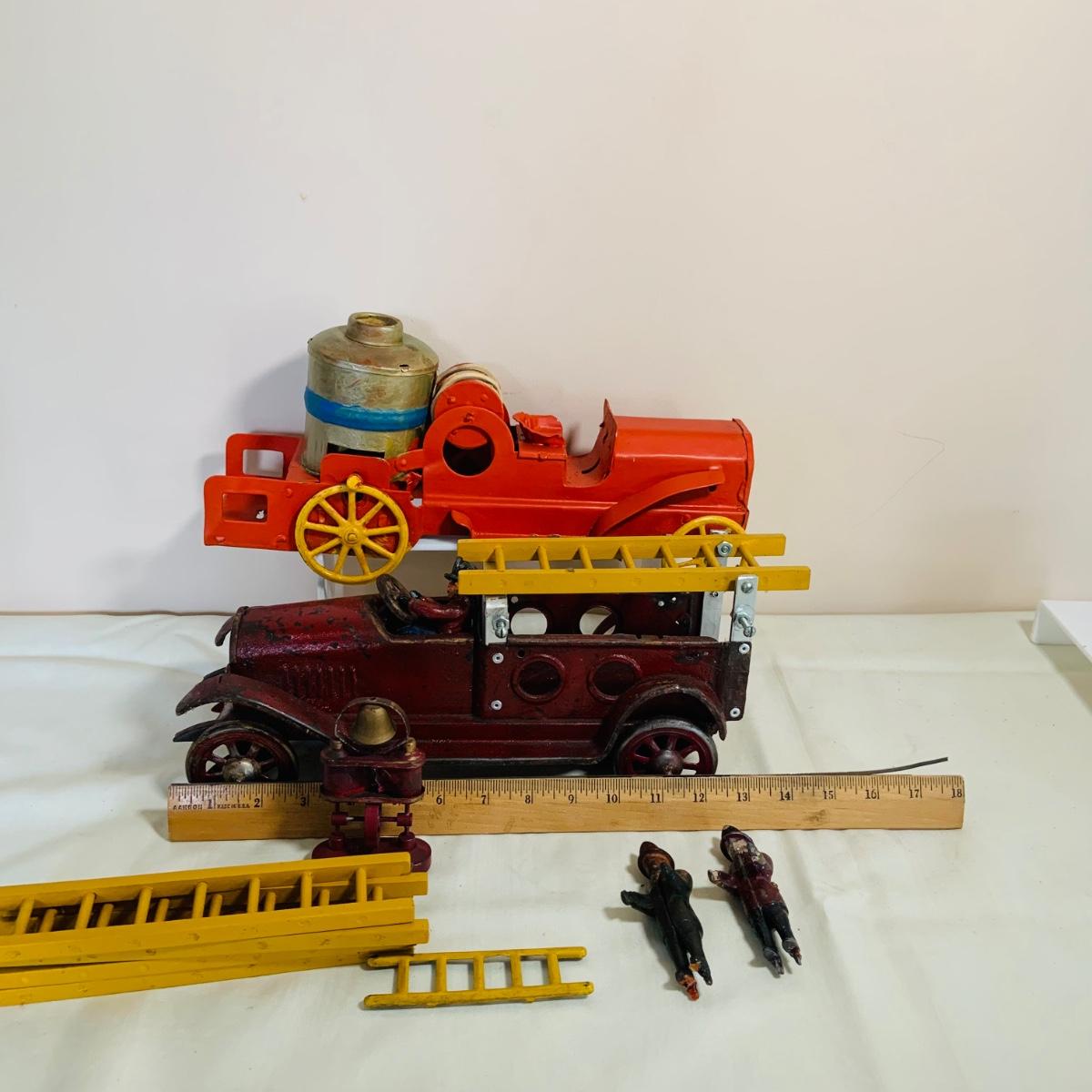 LOT 152; Tin Toy Fire Trucks and Accessories