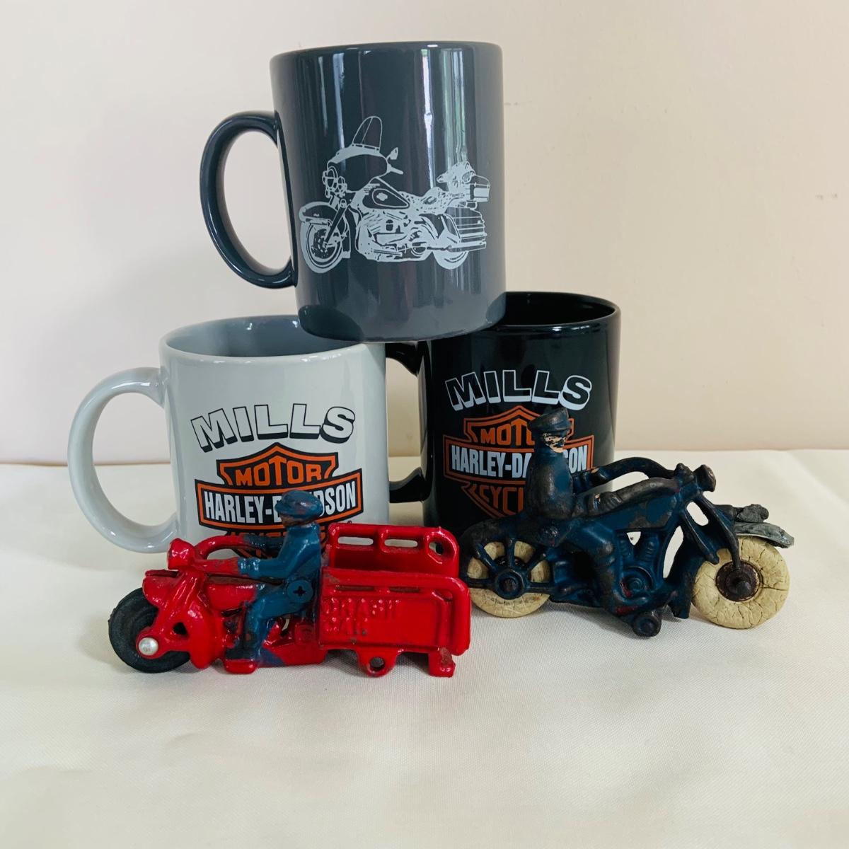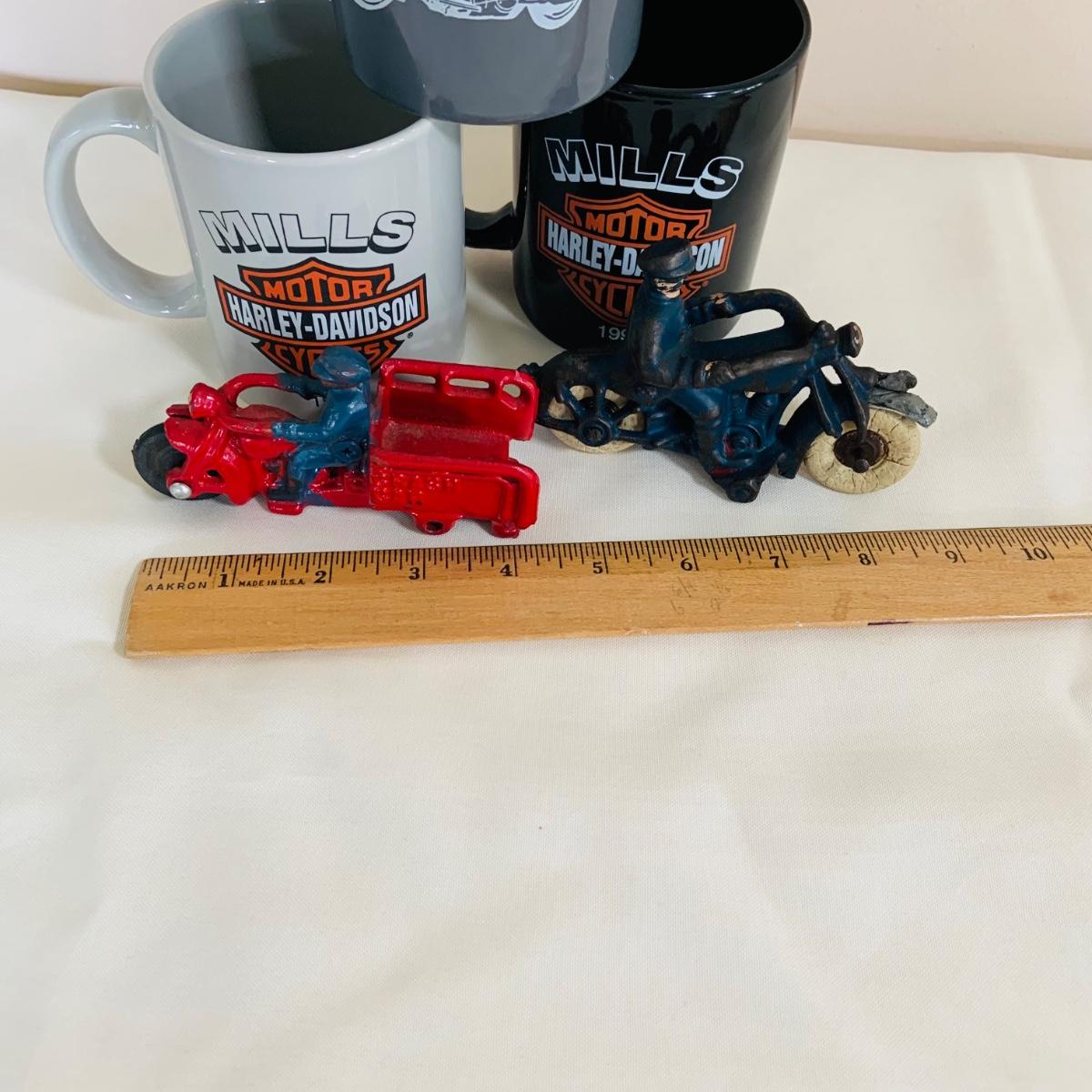 LOT 158: Harley Davidson Mugs and Tin Toy Motorcycles