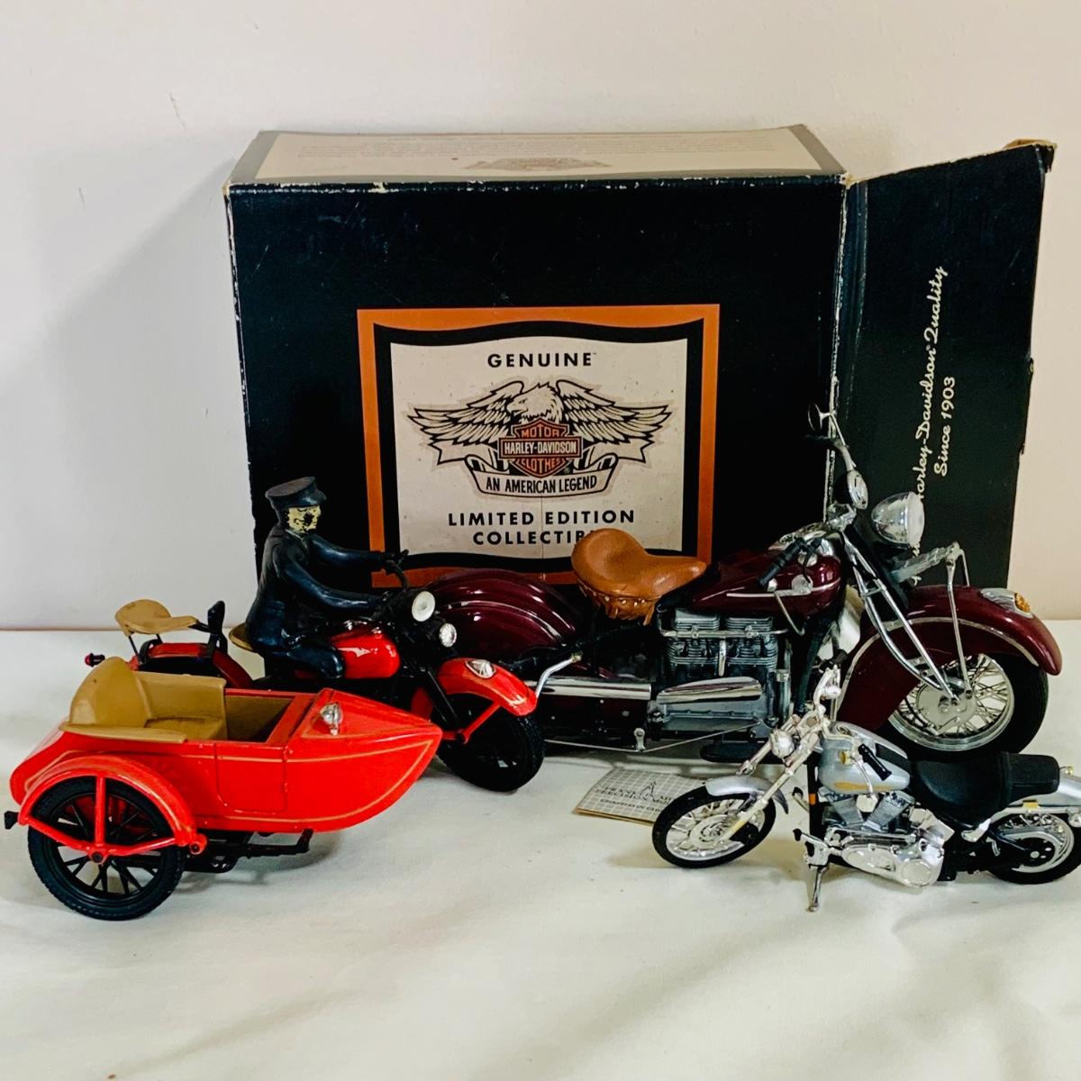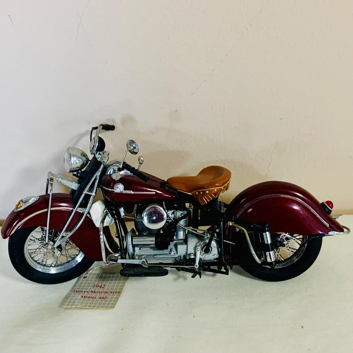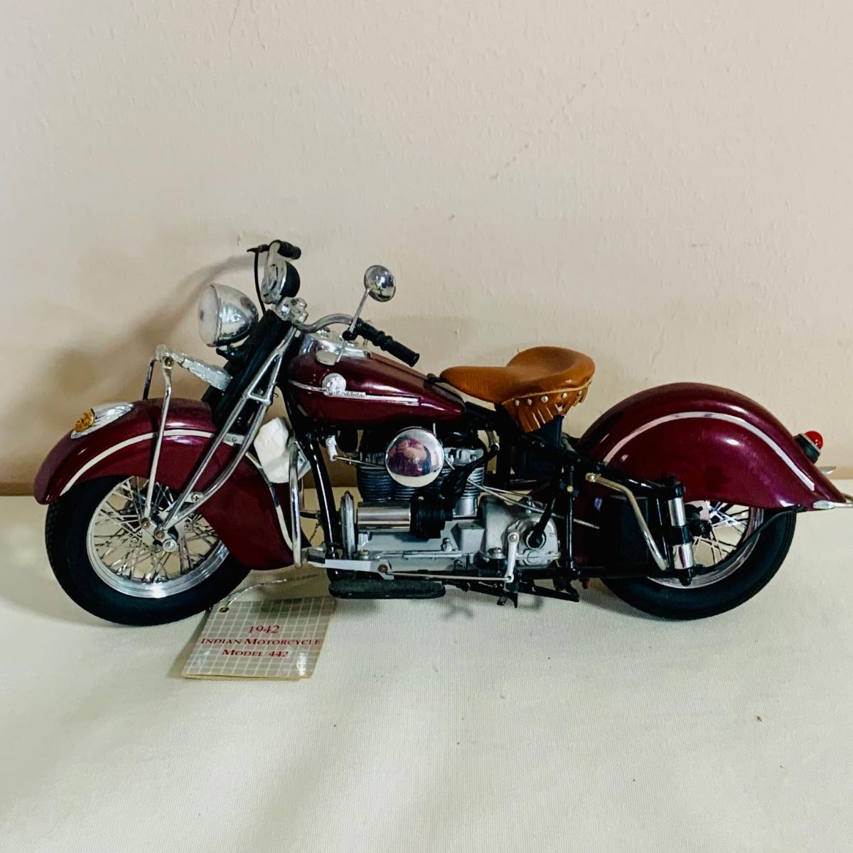 LOT 159: Motorcycle Collection Including 1933 Toy Motorcycle /Side Car in Box, Franklin Mint, 1942 Indian Motorcycle and More