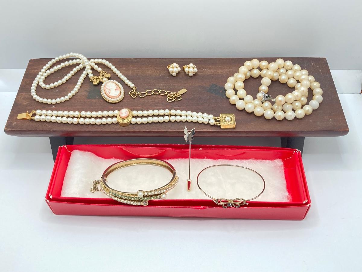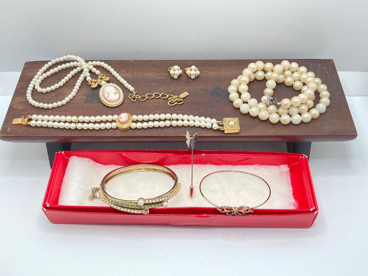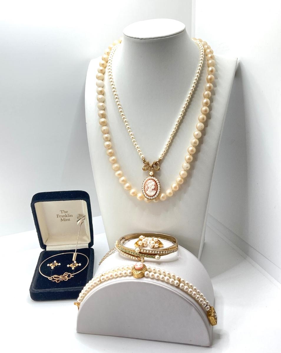 LOT 186: Faux Pearl / Cameo Jewelry Collection and More