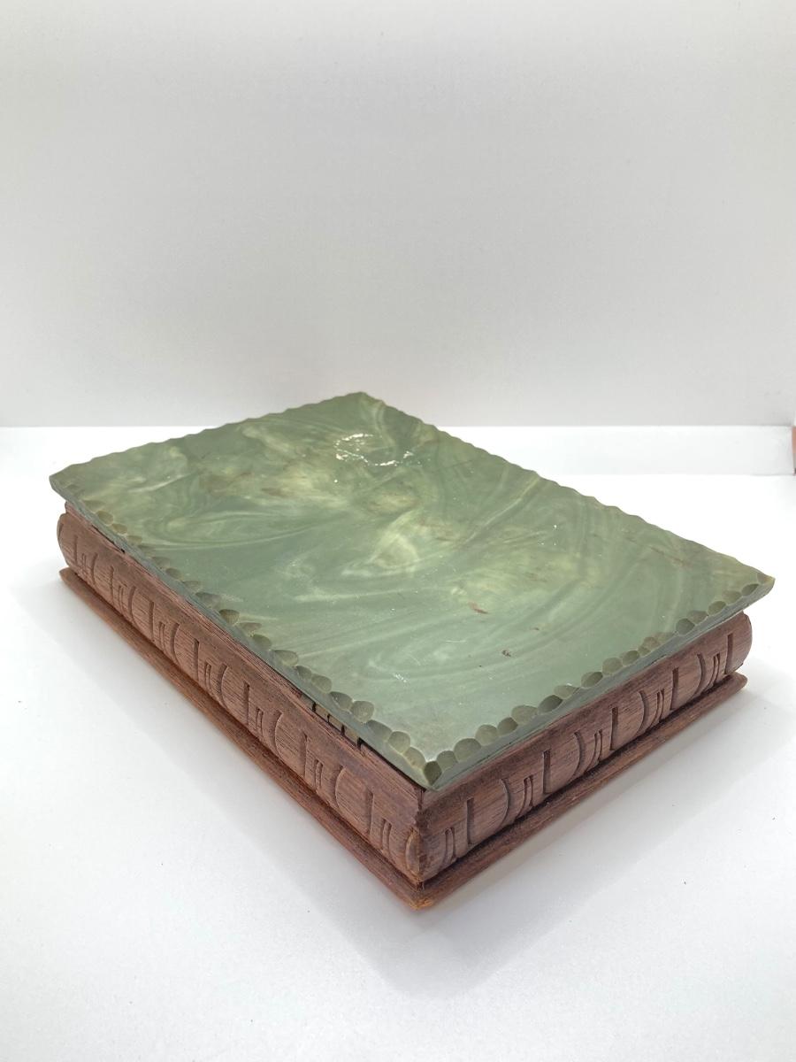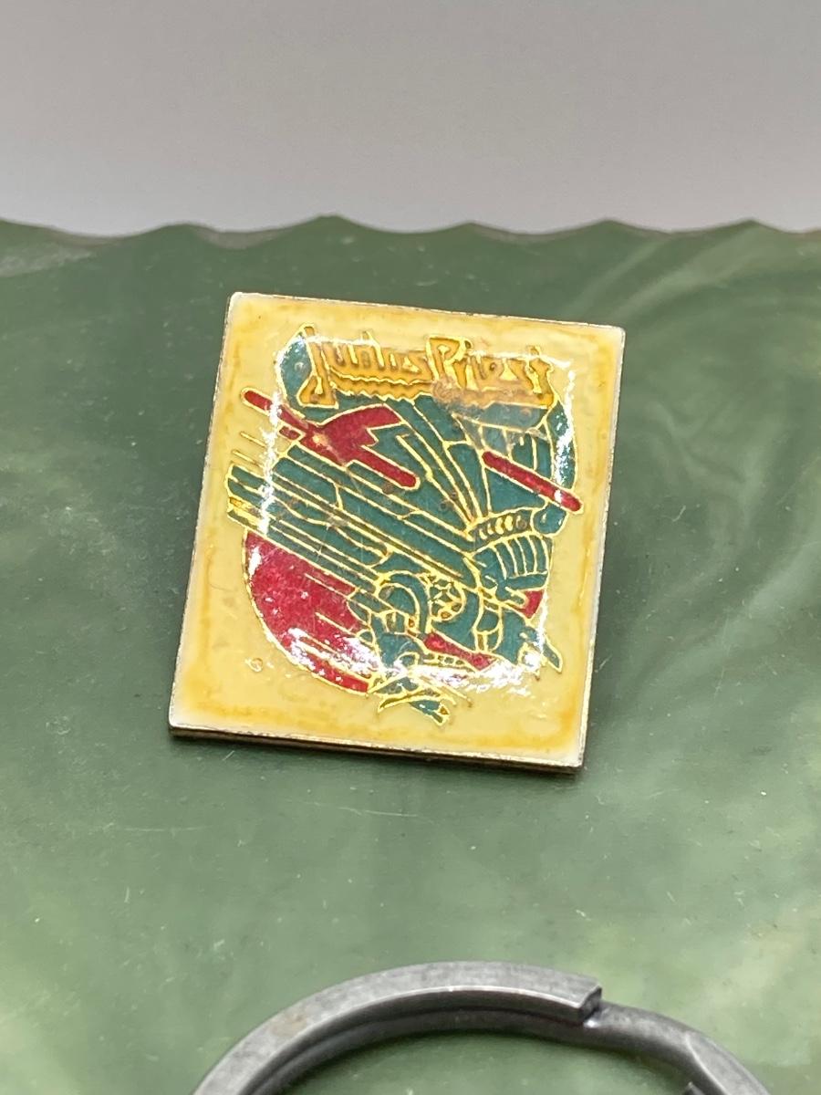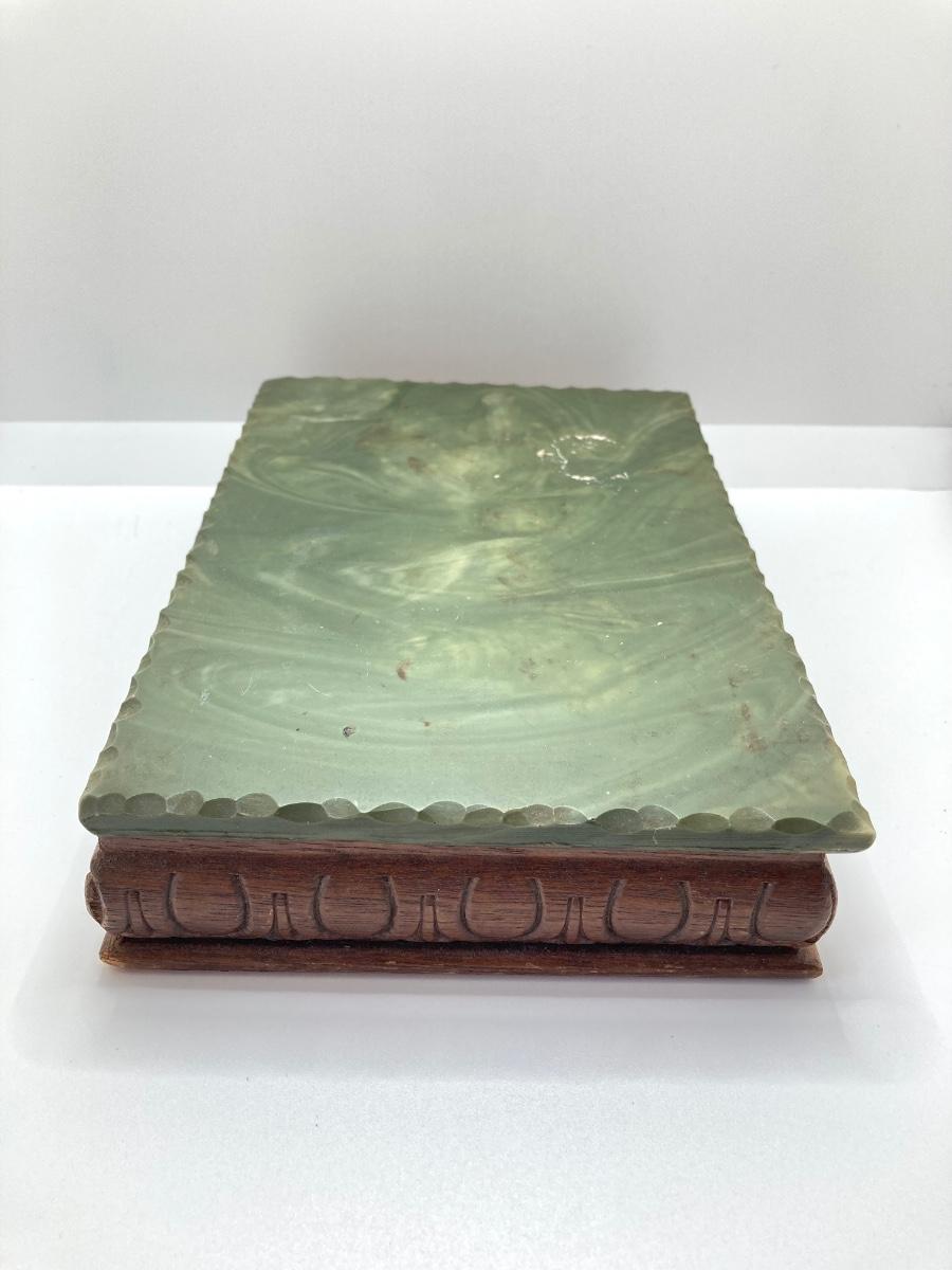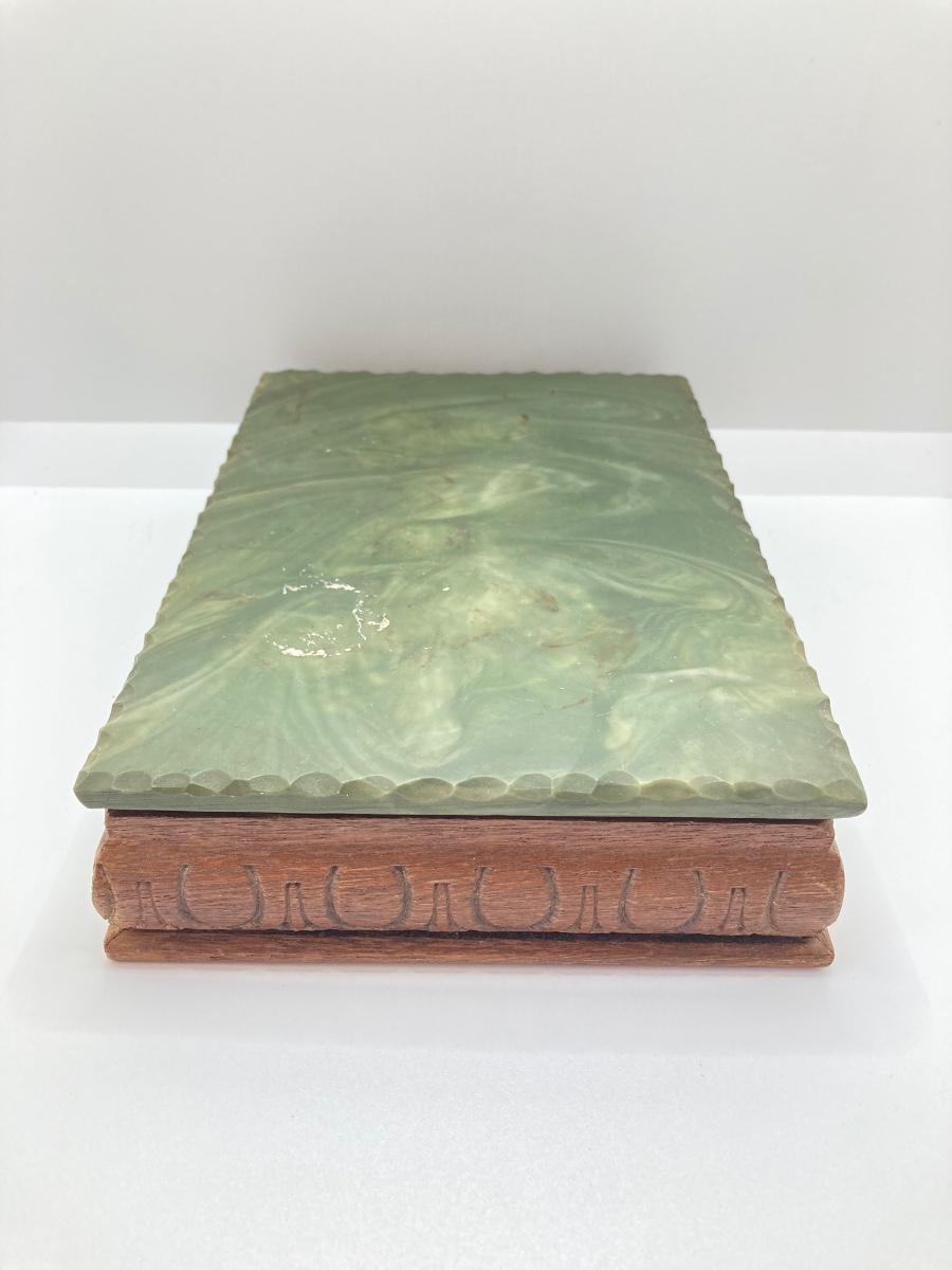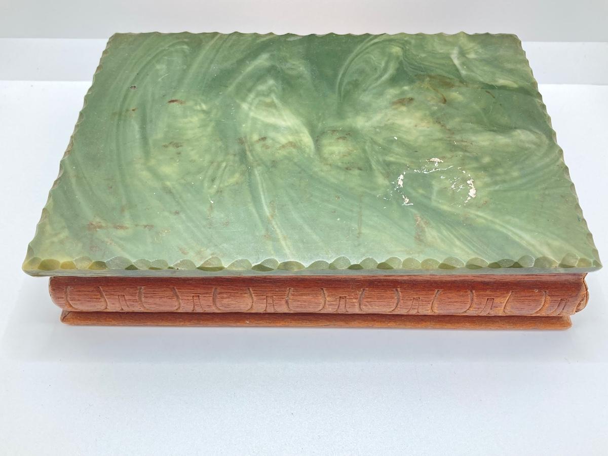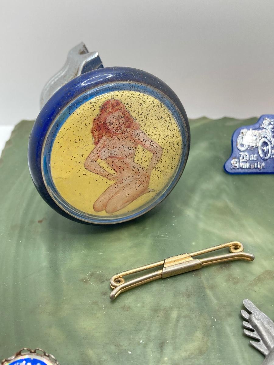 LOT 187: Vintage Collection - Pins, Jewelry, U.S. Coin, Keychains, Beach Tags and More in Wood with Slate Top Box