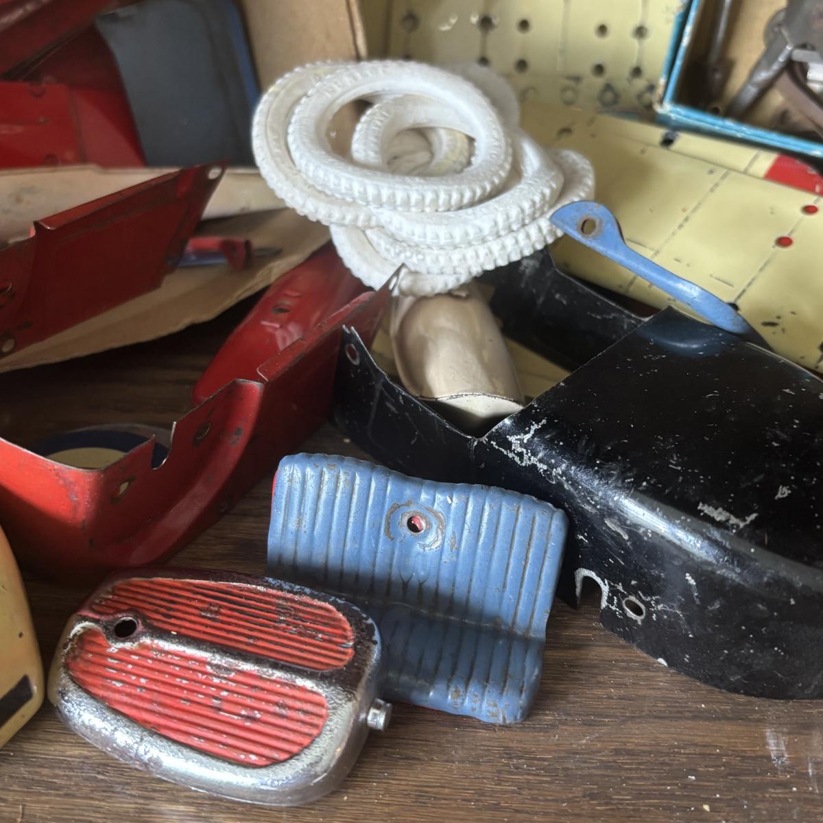 LOT 195: Box of Tin Parts - As Found