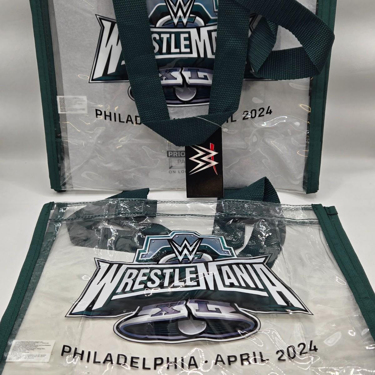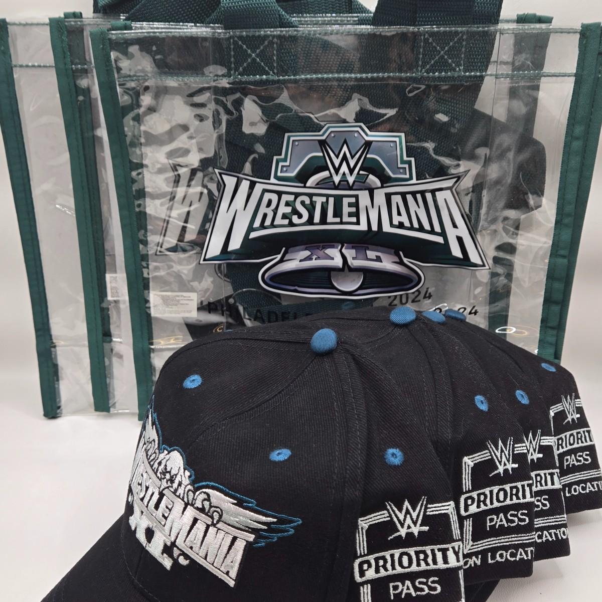 LOT 13: "Are You Ready to Rumble??" Four WrestleMania Priority Hats and Three Clear Tote Bags NWT