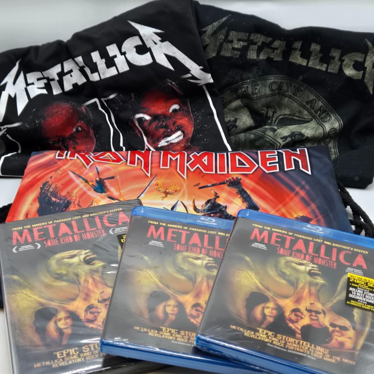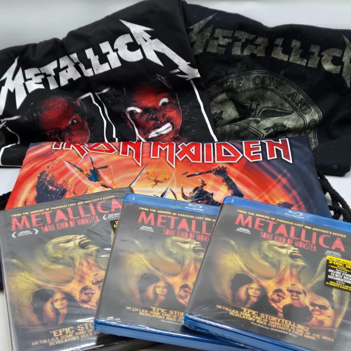 LOT 24: Two Metallica Shirts, Iron Maiden Bag, Two Metallica Blu-rays and one DVD