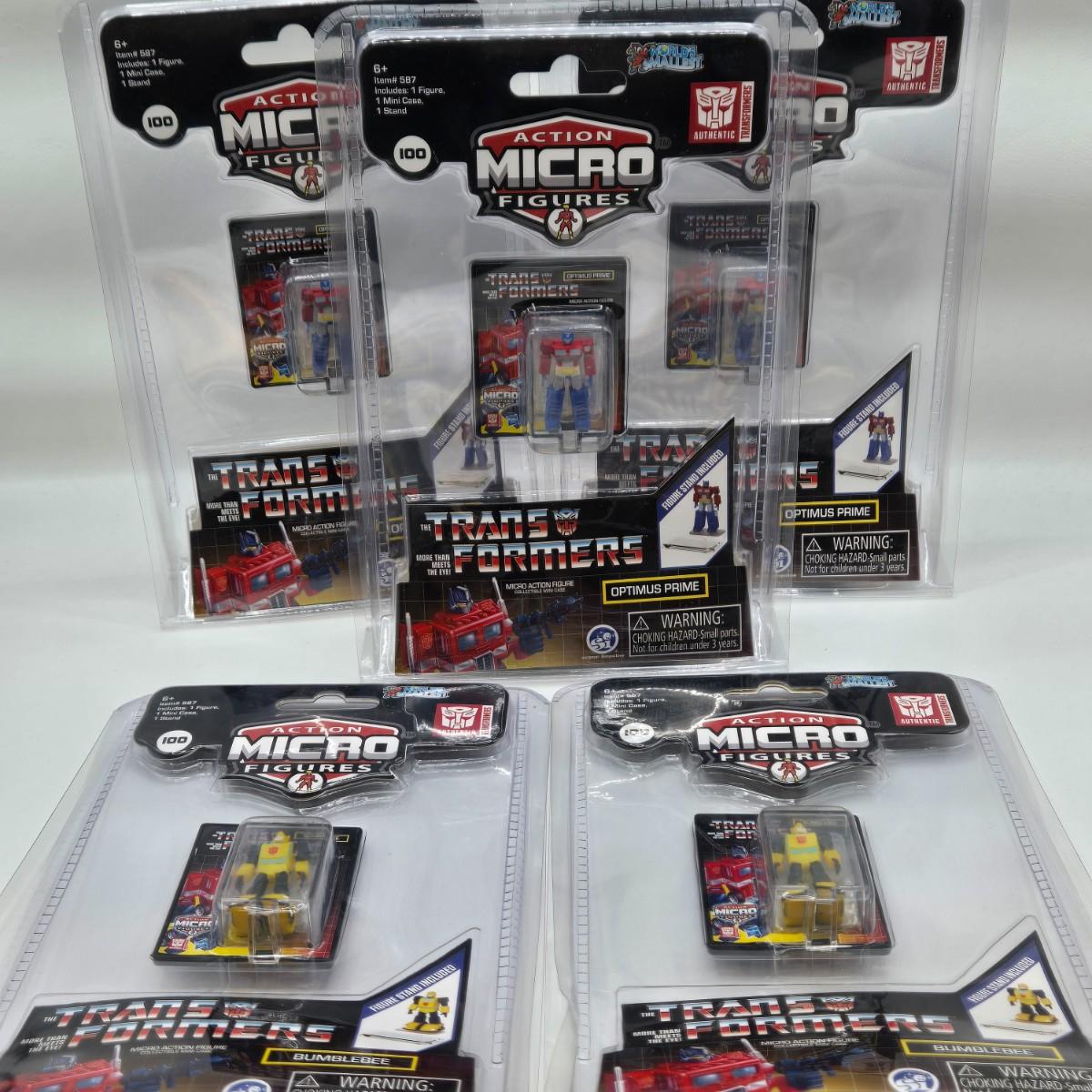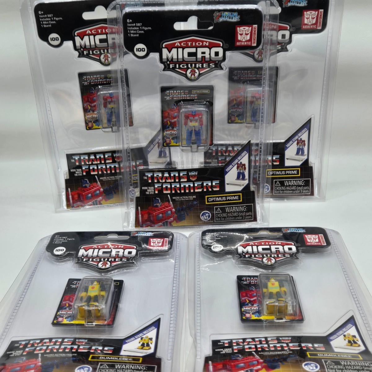 LOT 28: World's Smallest Action Micro Figures/ 3 Optimus Prime and 2 Bumblebees NIP