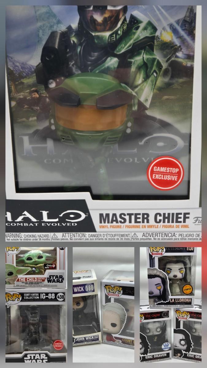 LOT 34: Multiple Funko Pops Including Halo Master Chief, The Child, John Wick, and More NIB