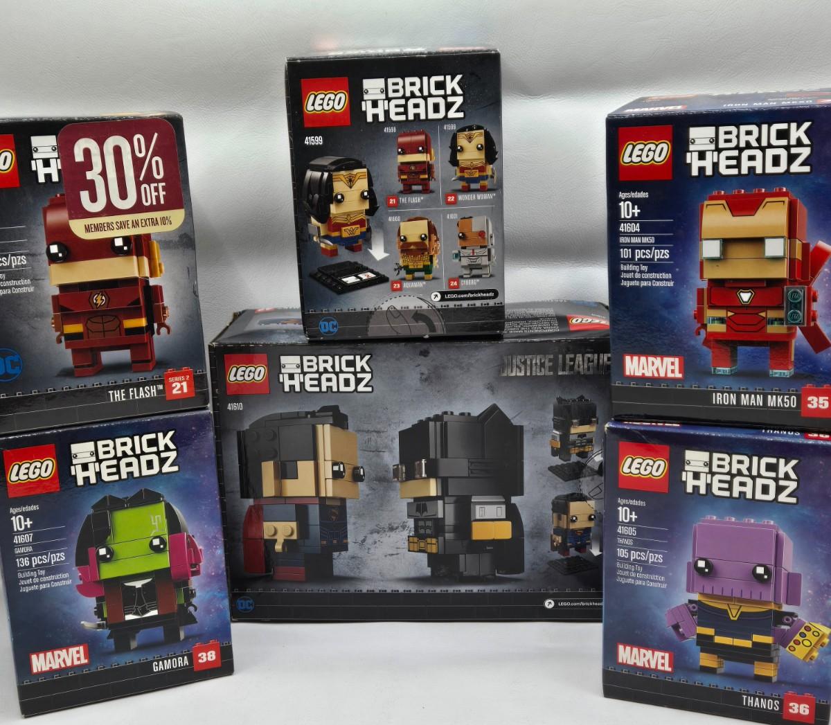 LOT 36: Lego Brick Headz Including Justice League Batman and Superman, Wonder Woman, The Flash, and More NIB