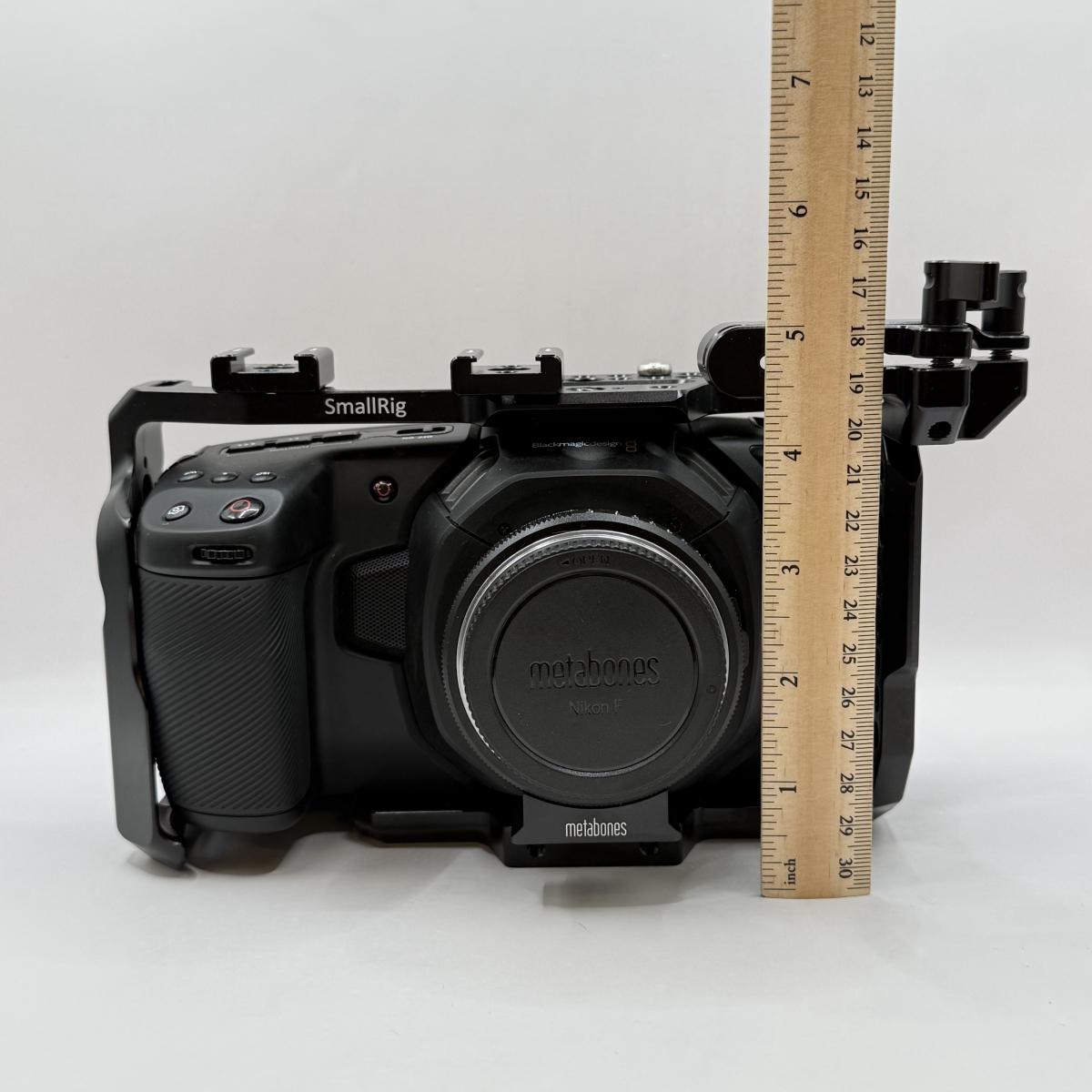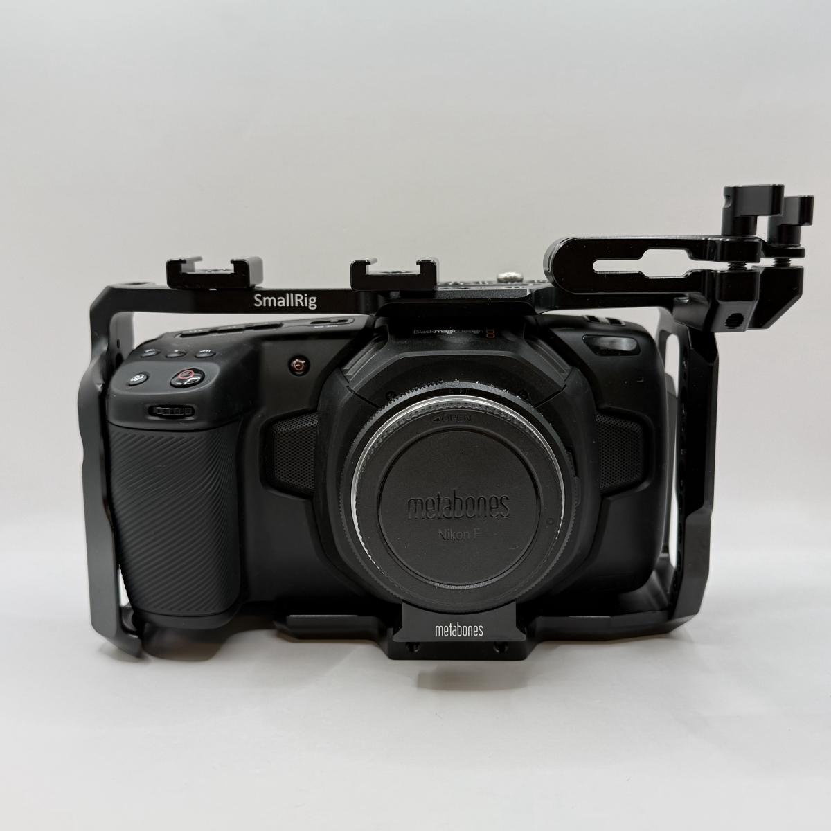 LOT 53: BlackMagic Design Pocket Cinema Camera 209-J00204 4k Video Camera, SmallRig Camera Cage & Metabones N/F-MFT Mount Speed Booster Ultra 0.71x