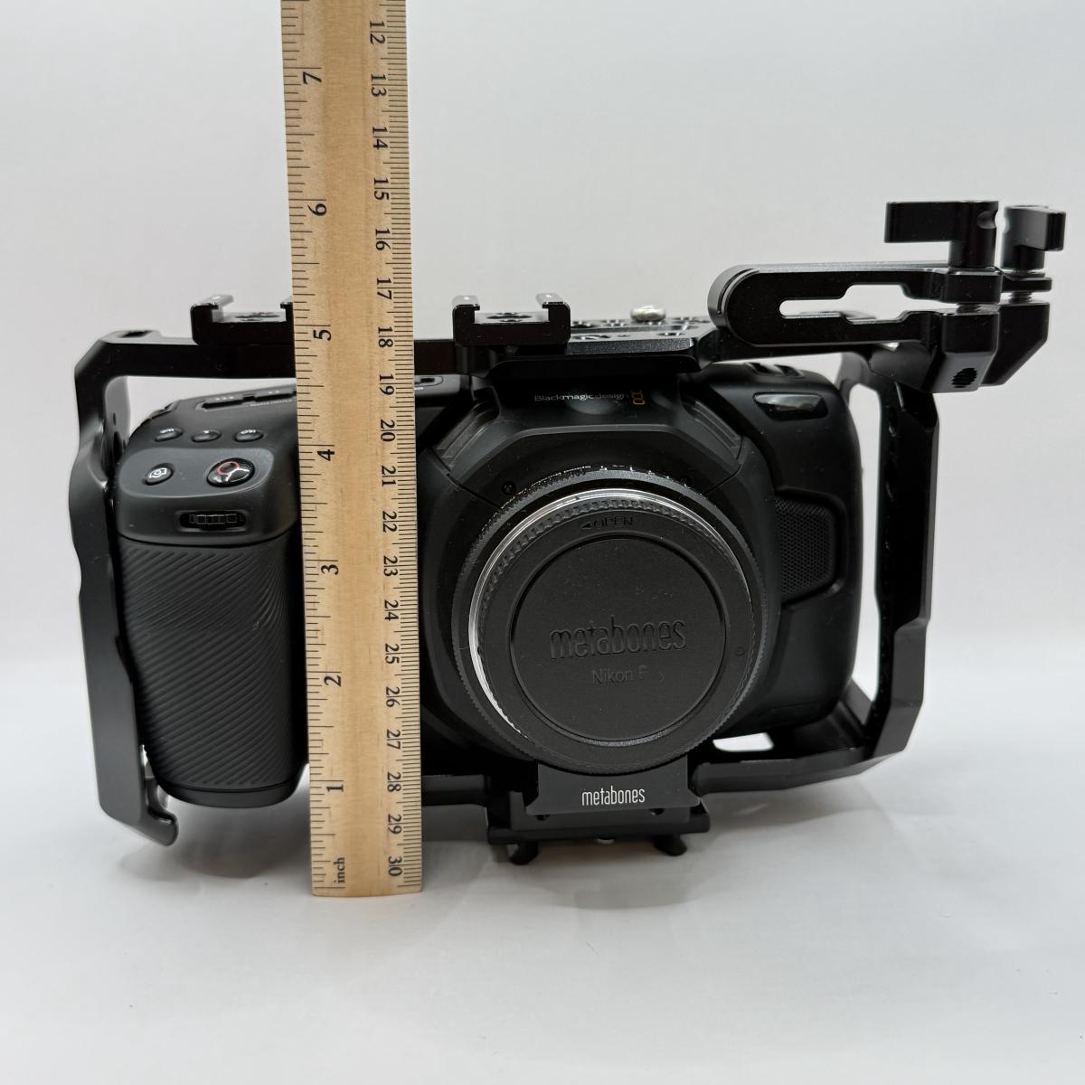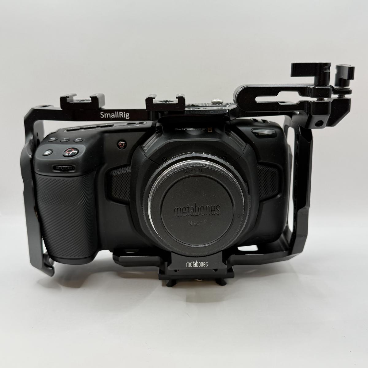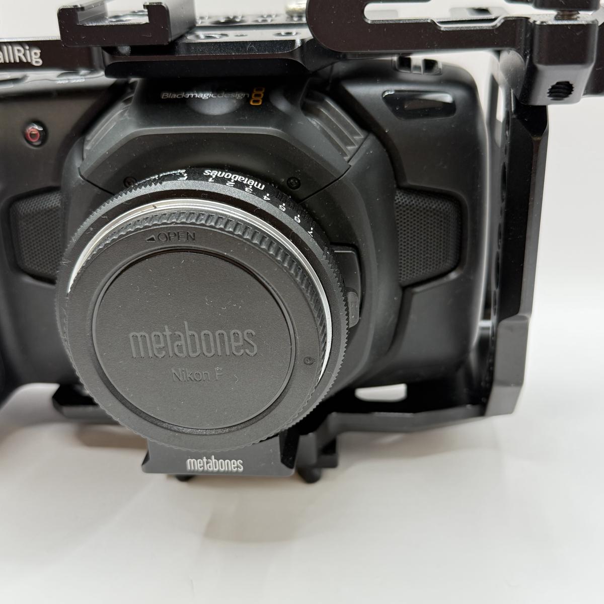 LOT 54: BlackMagic Design Pocket Cinema Camera 209-J00204 4k Video Camera, SmallRig Camera Cage & Metabones N/F-MFT Mount Speed Booster Ultra 0.71x