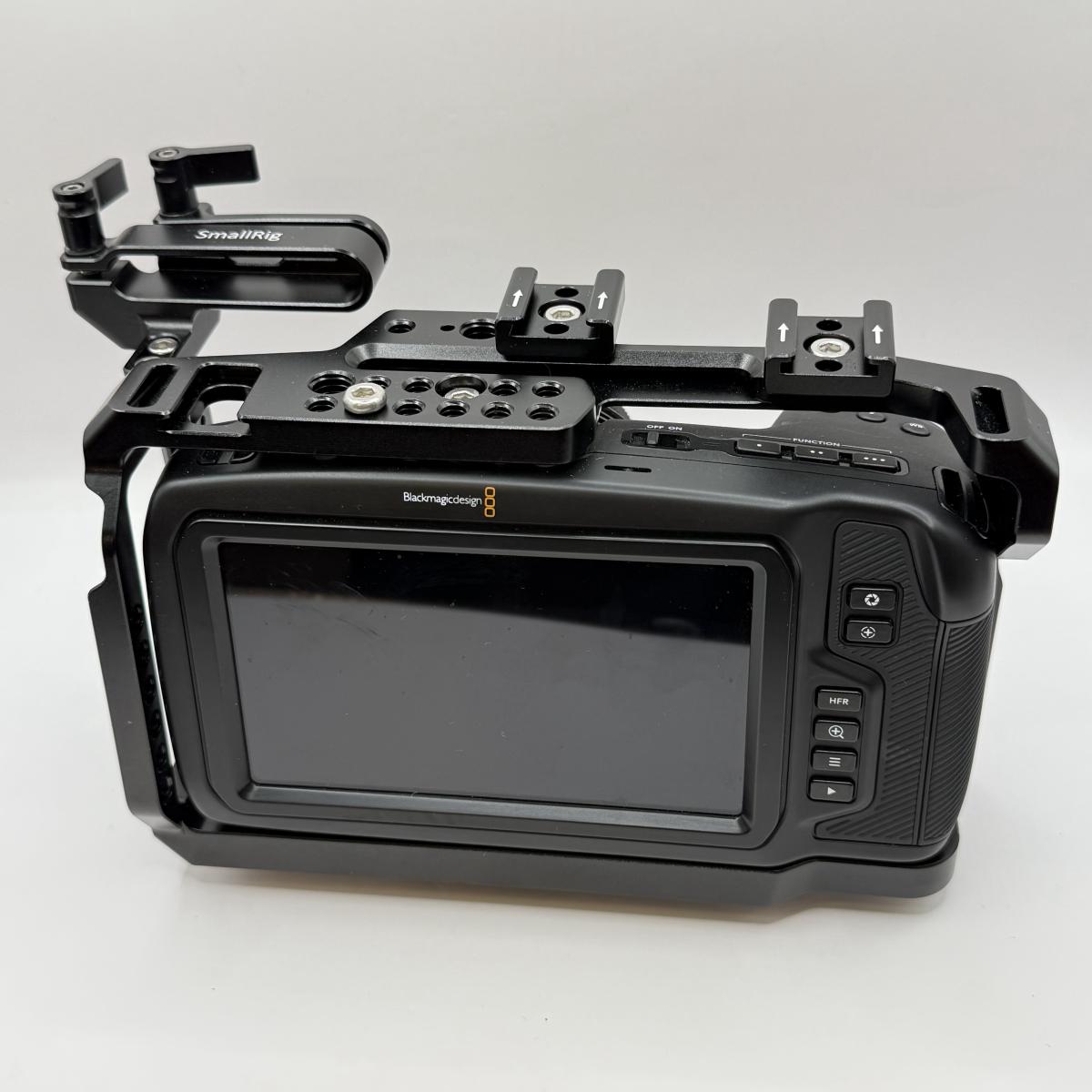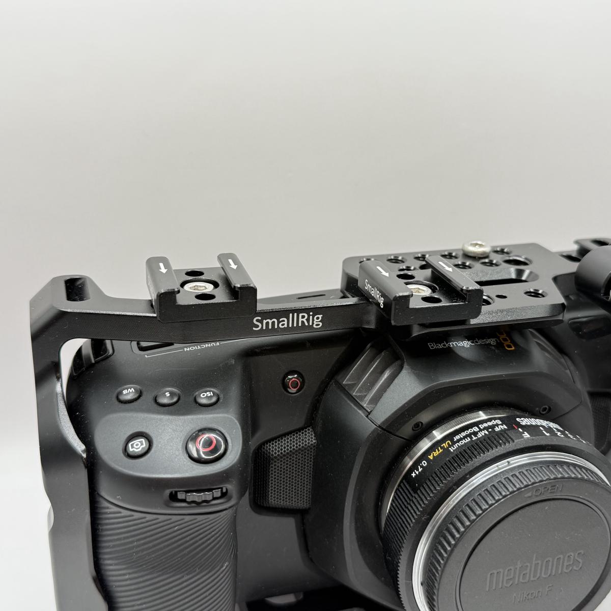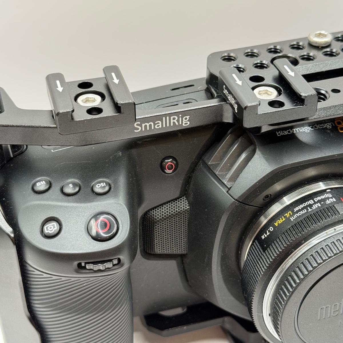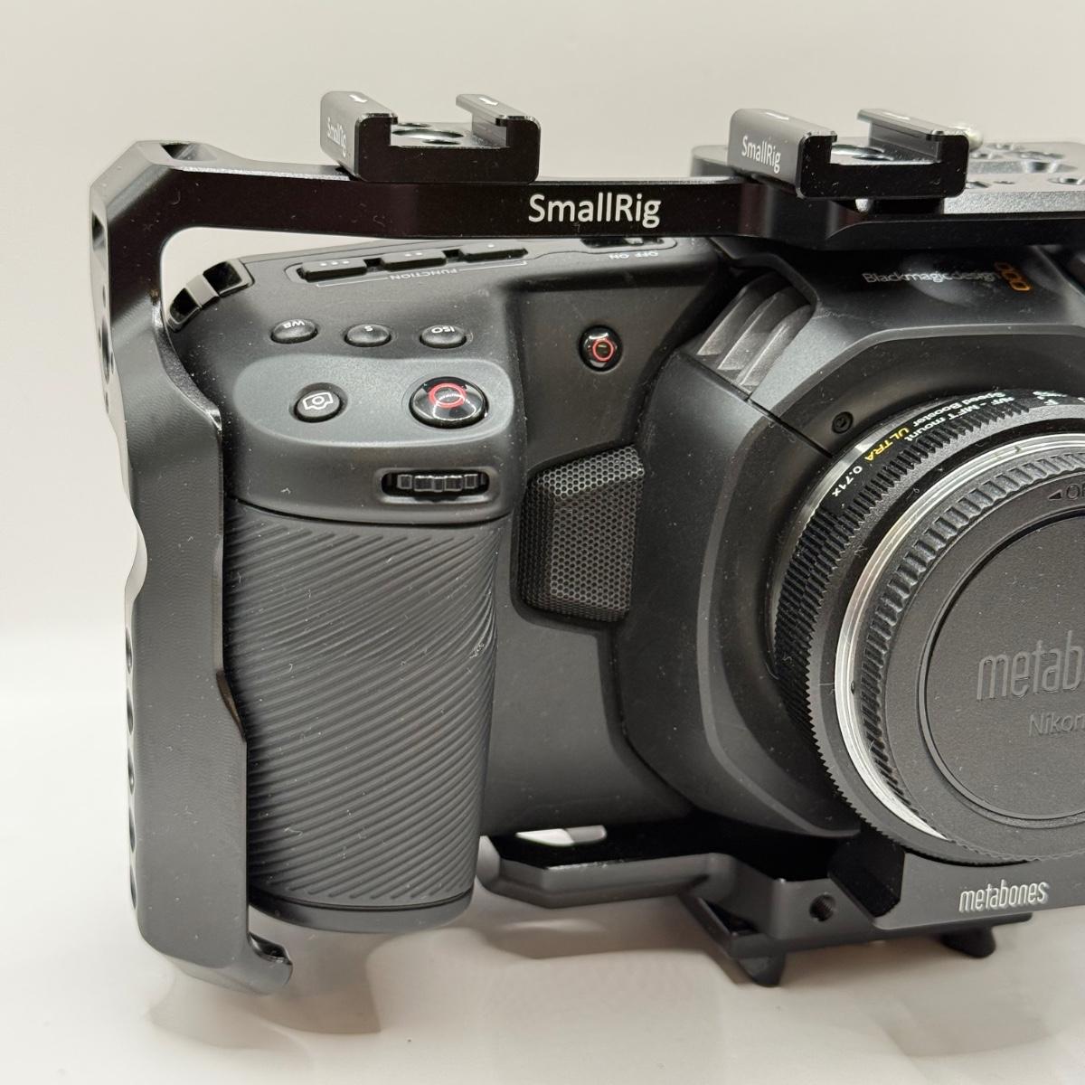 LOT 54: BlackMagic Design Pocket Cinema Camera 209-J00204 4k Video Camera, SmallRig Camera Cage & Metabones N/F-MFT Mount Speed Booster Ultra 0.71x