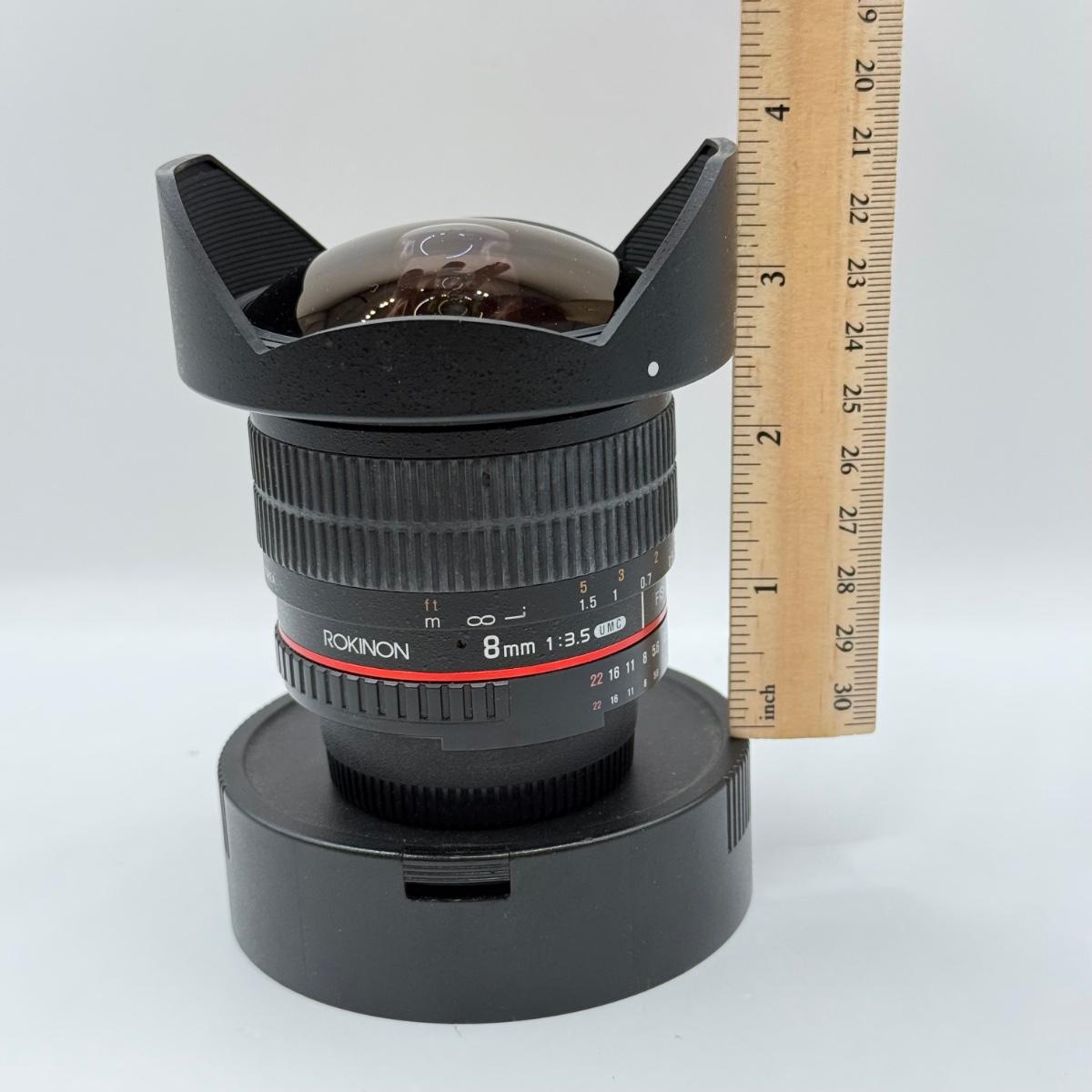 LOT 56: Rokinon 8mm 1:3.5 f/3.5 Fisheye CSII Lens w/ Hood (for Nikon Cameras)