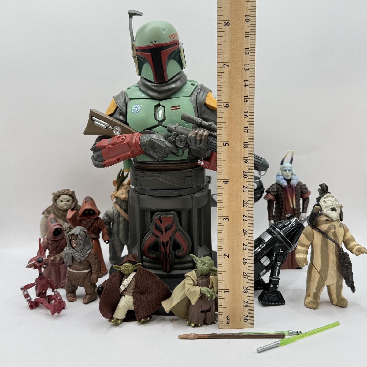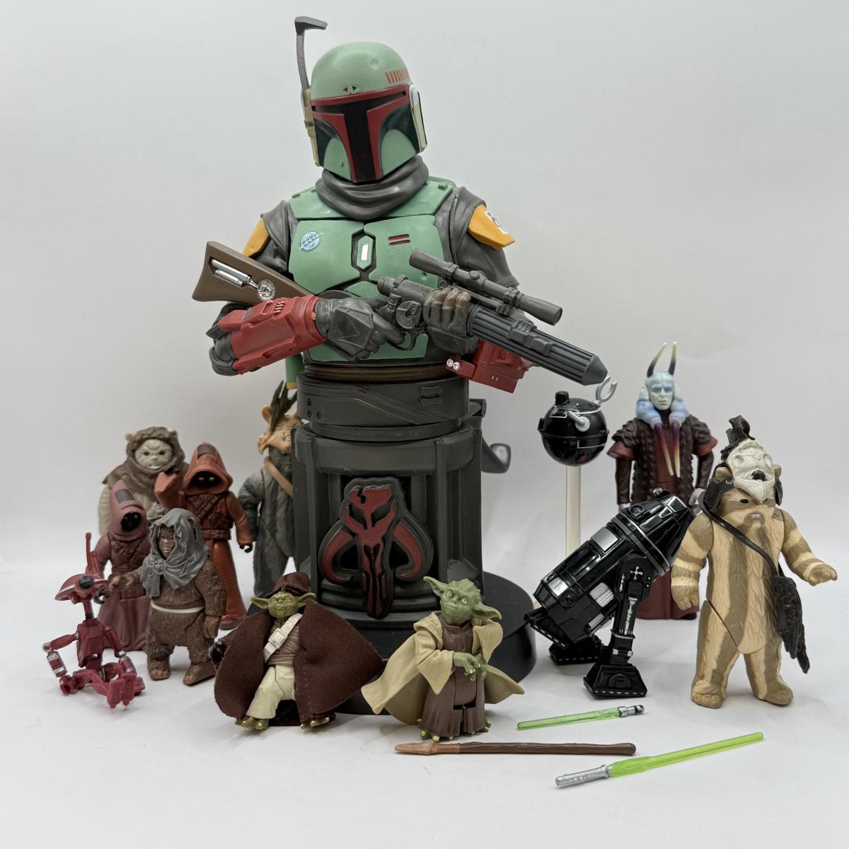 LOT 88: Star Wars Collection: Cable Guys Boba Fett The Mandelorian Figure/Bust & Small Character Toys
