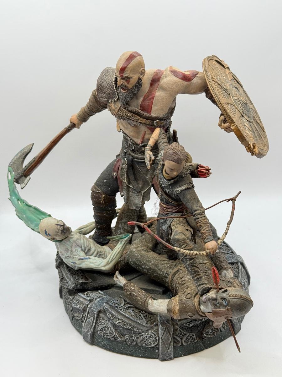 LOT 89: Sony Entertainment God of War Statue, Ascension Kratos Figure & NECA God of War 3 Kratos Action Figure
