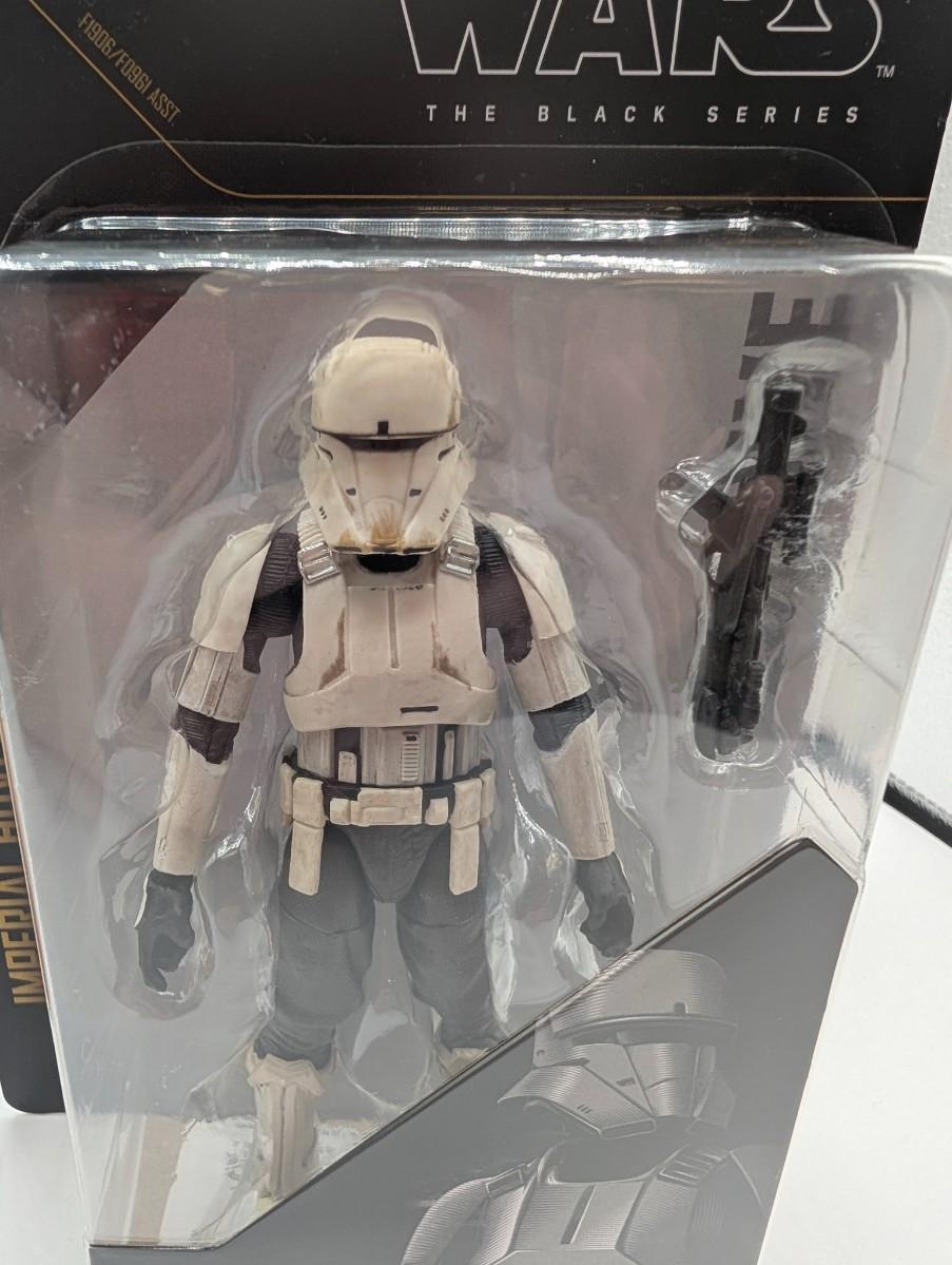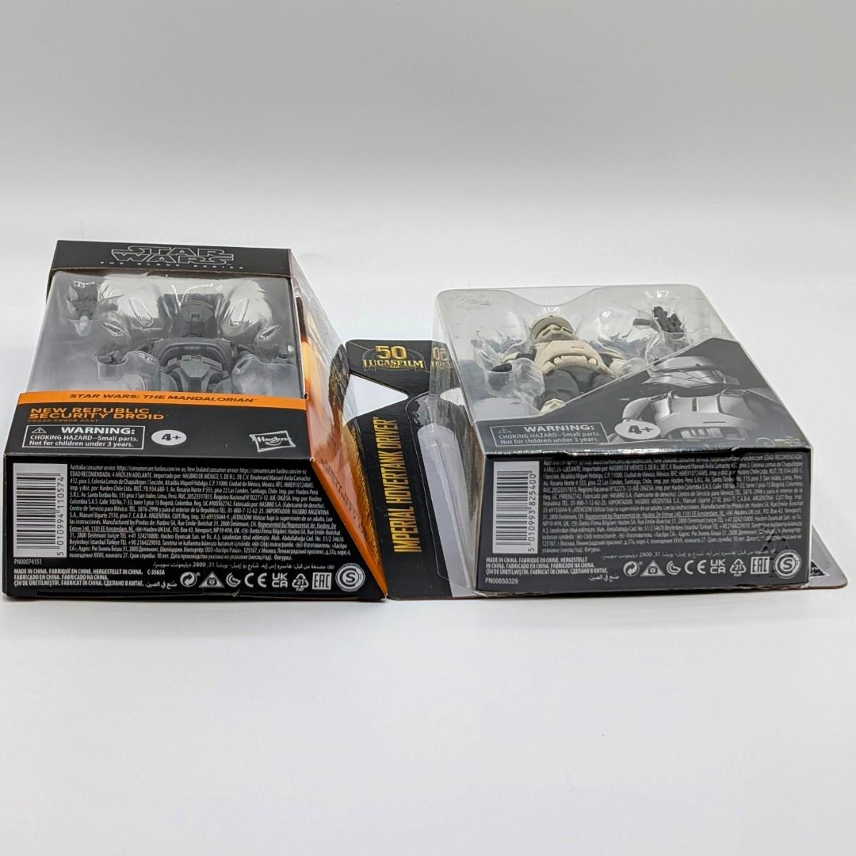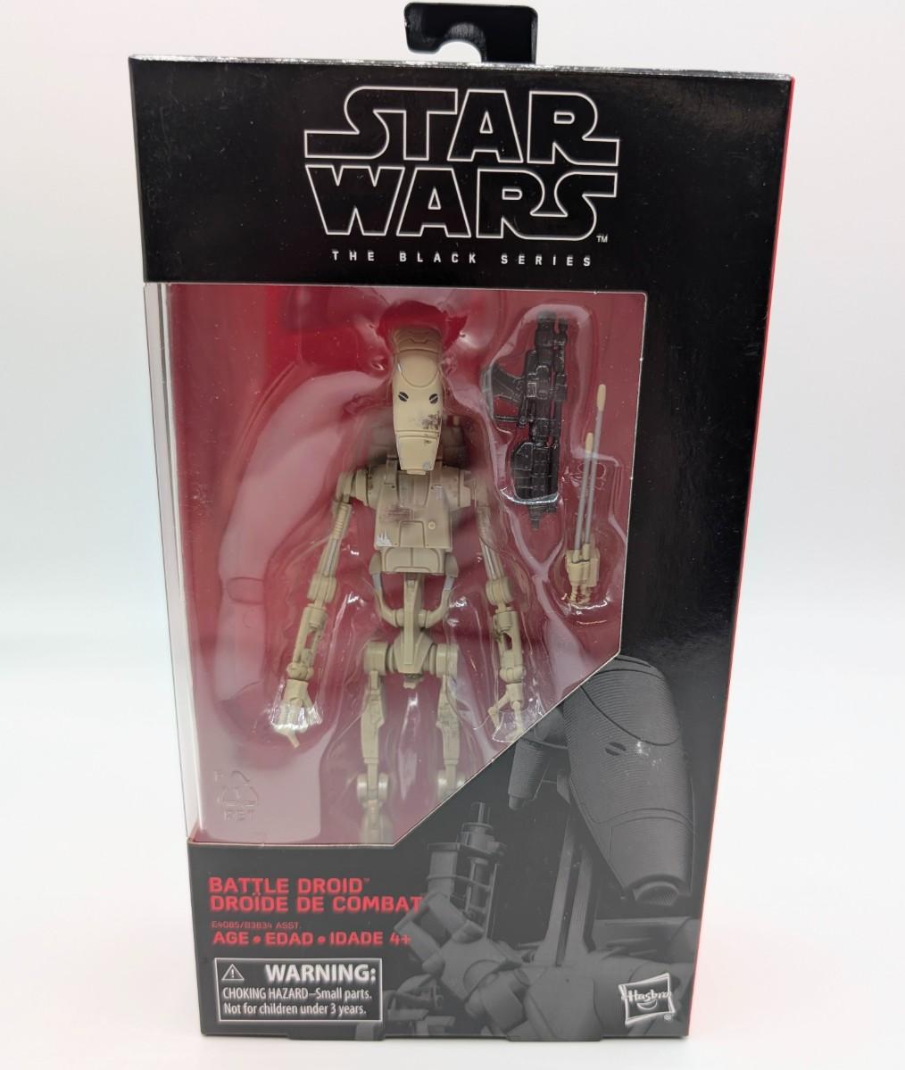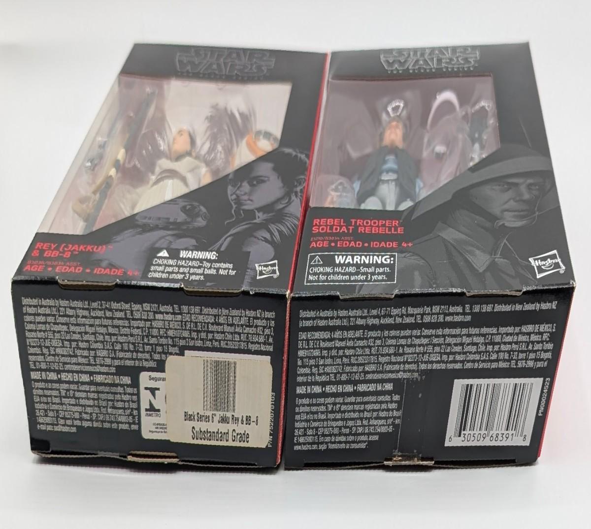 LOT 102: Hasbro Star Wars, The Black Series, NIB Imperial Hovertank Driver, Rebel Trooper, Battle Droid, Rey Jakku With BB-8, New Republic Security Droid & Imperial Hovertank Driver Action Figures.