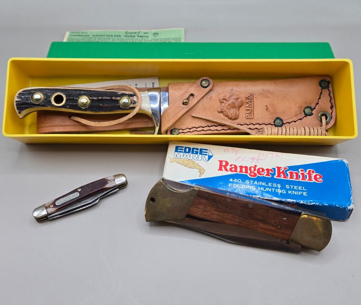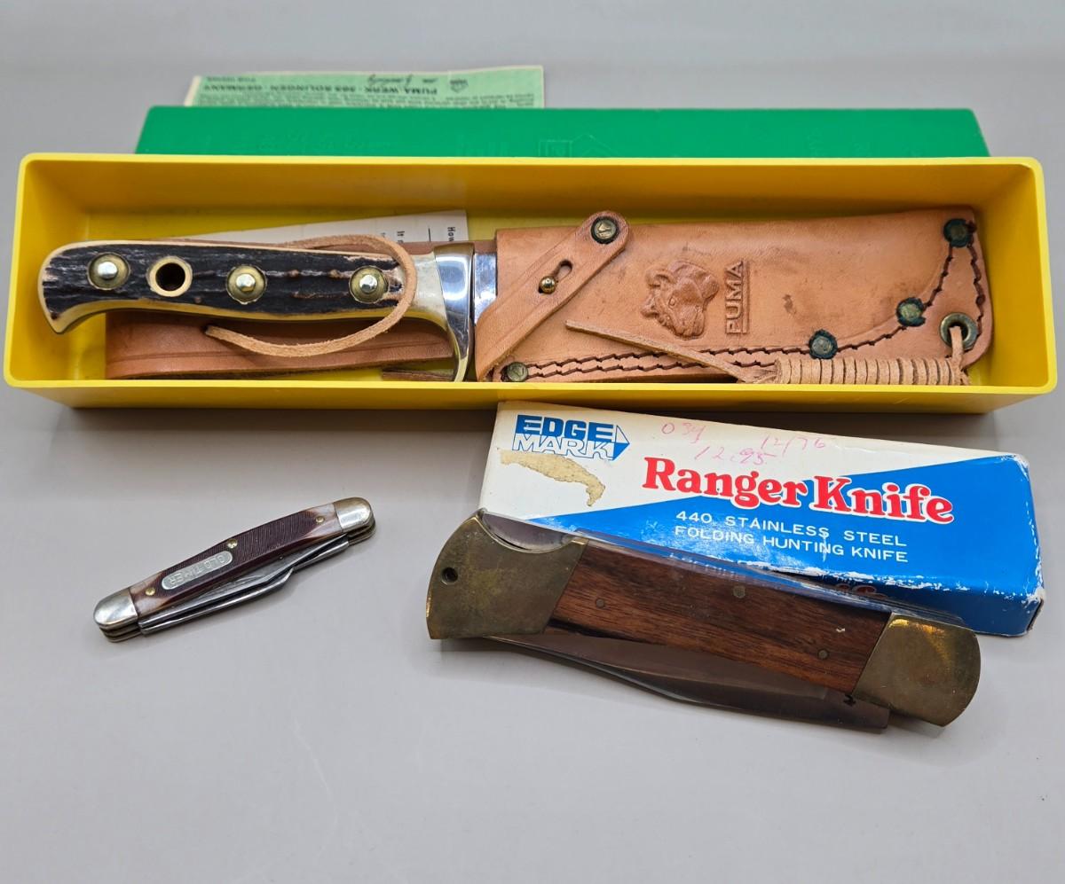 LOT 217J: Puma Skinner with Certificate of Guarantee, Edge Mark Ranger Knife, and Old Timer Pocket Knife