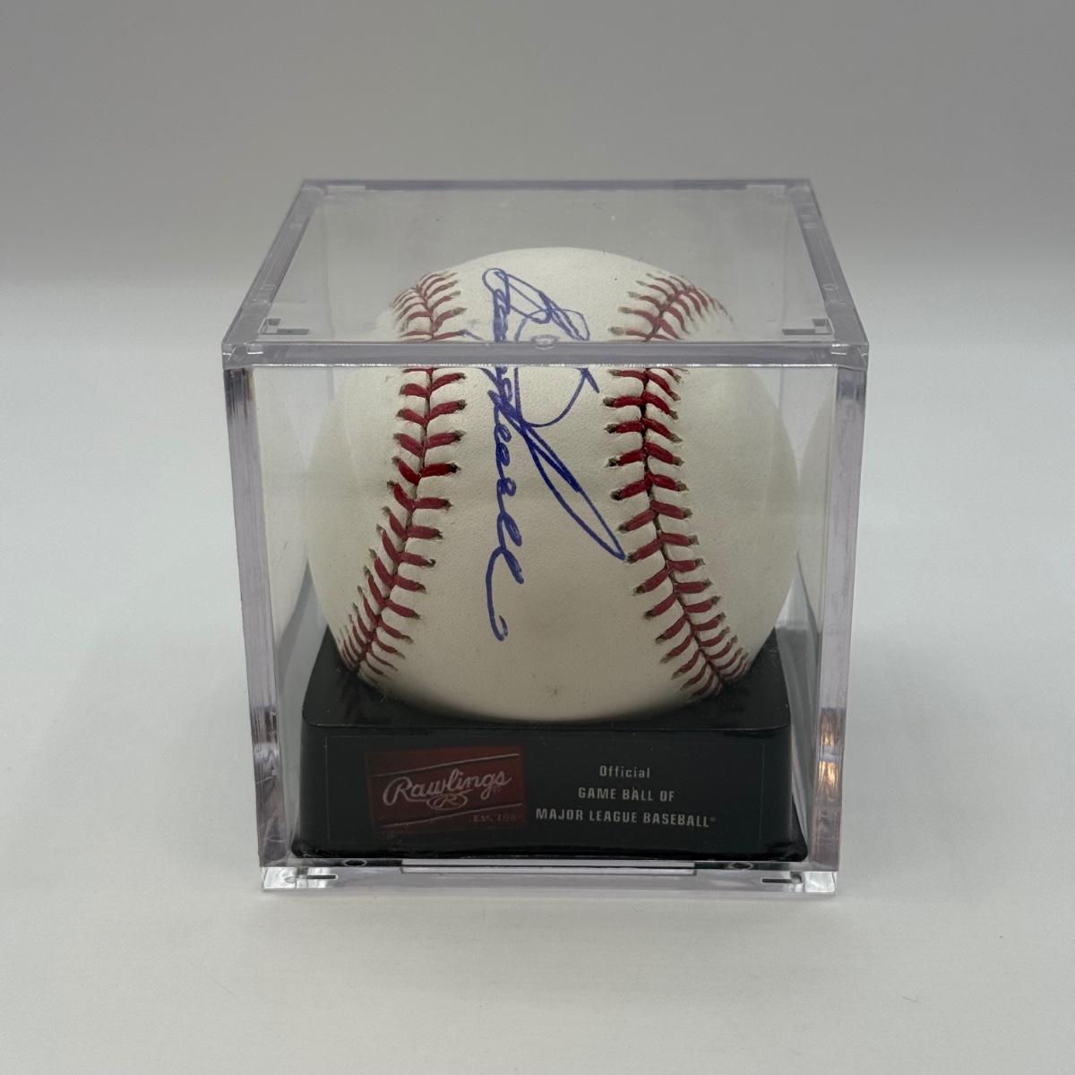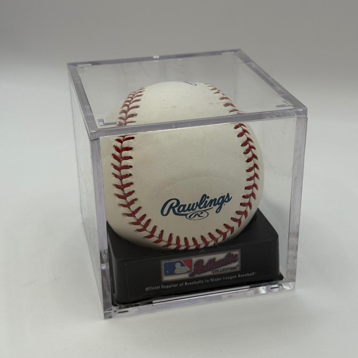 LOT 232: Rawlings Baseball in Display Case Signed by Booge Powell