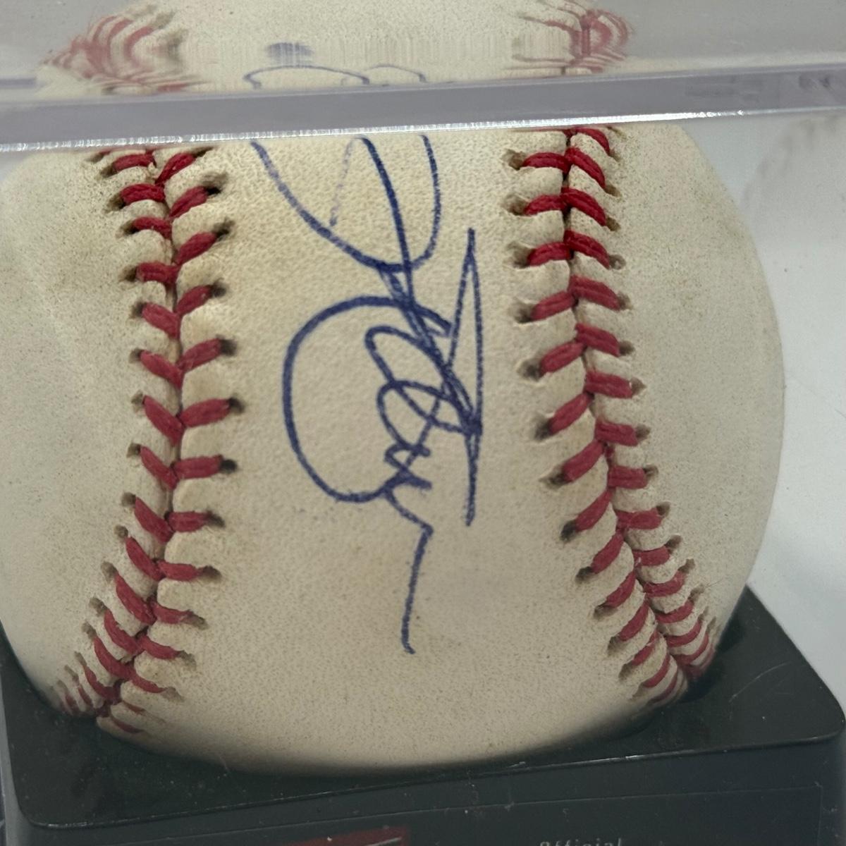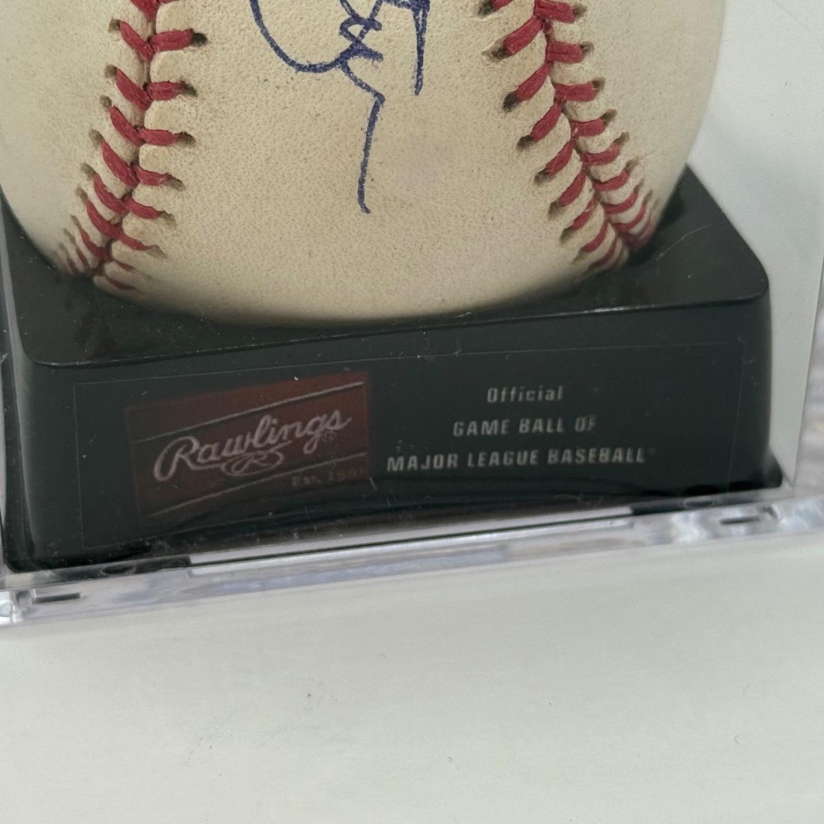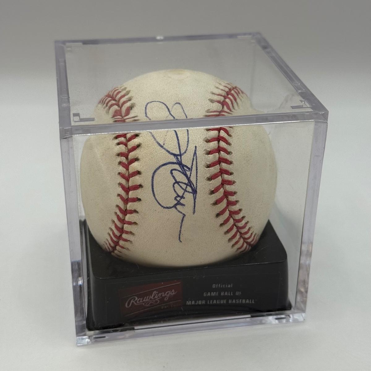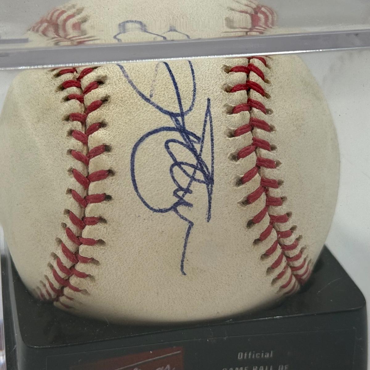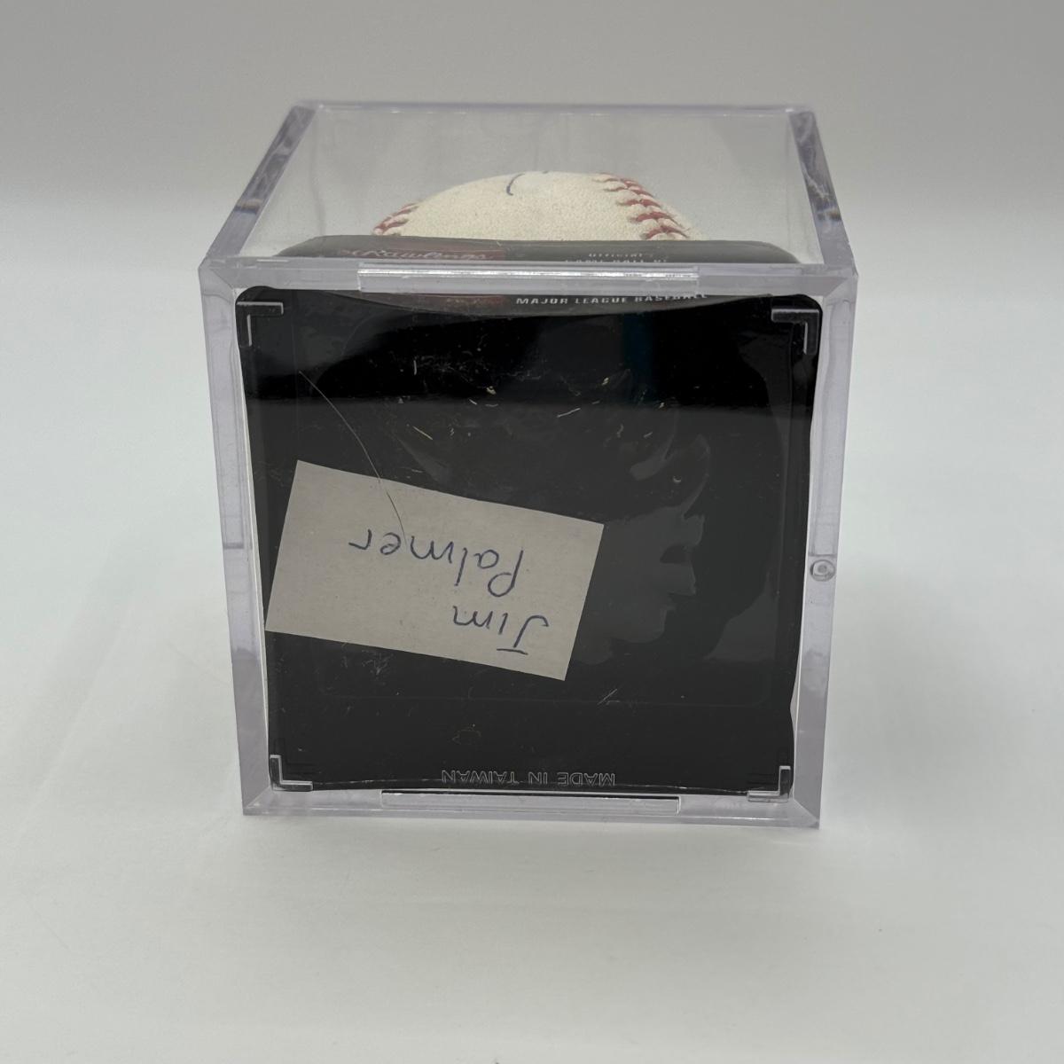 LOT 233: Rawlings Baseball in Display Case signed by Jim Palmer