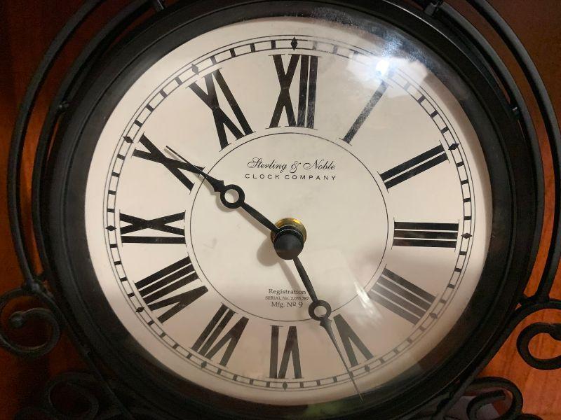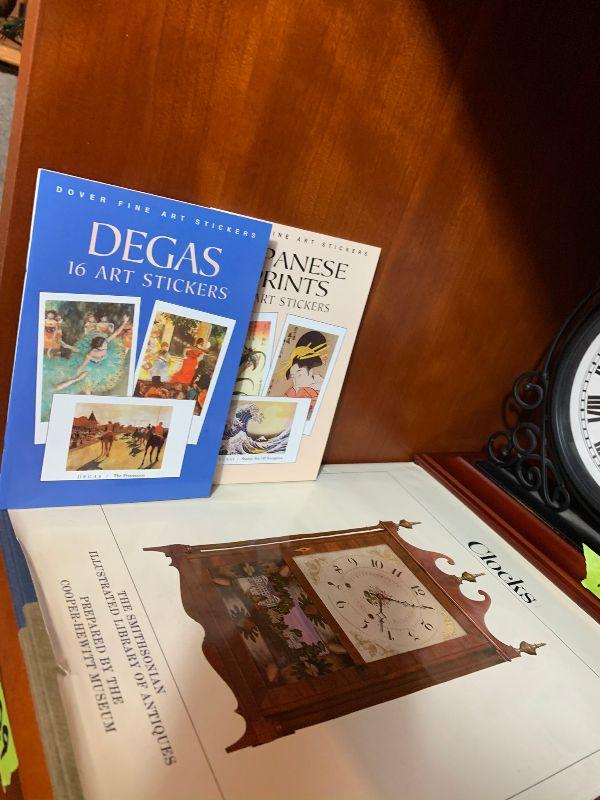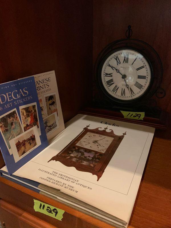 Sterling & Noble Clock company battery operated and book of clocks plus 2 small sticker books