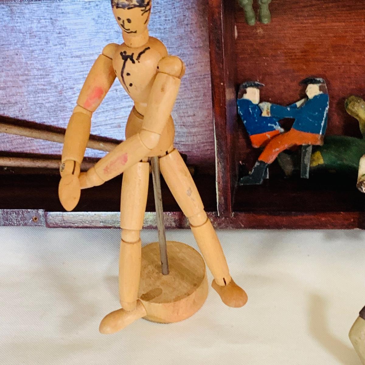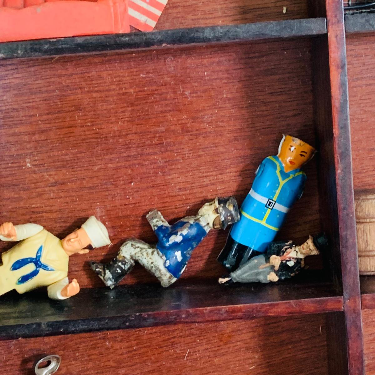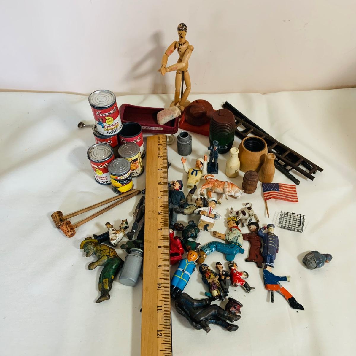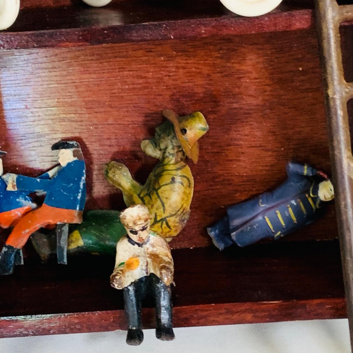 LOT 219: Vintage Display Shelf with Vintage Toy Bits, Pieces and Parts