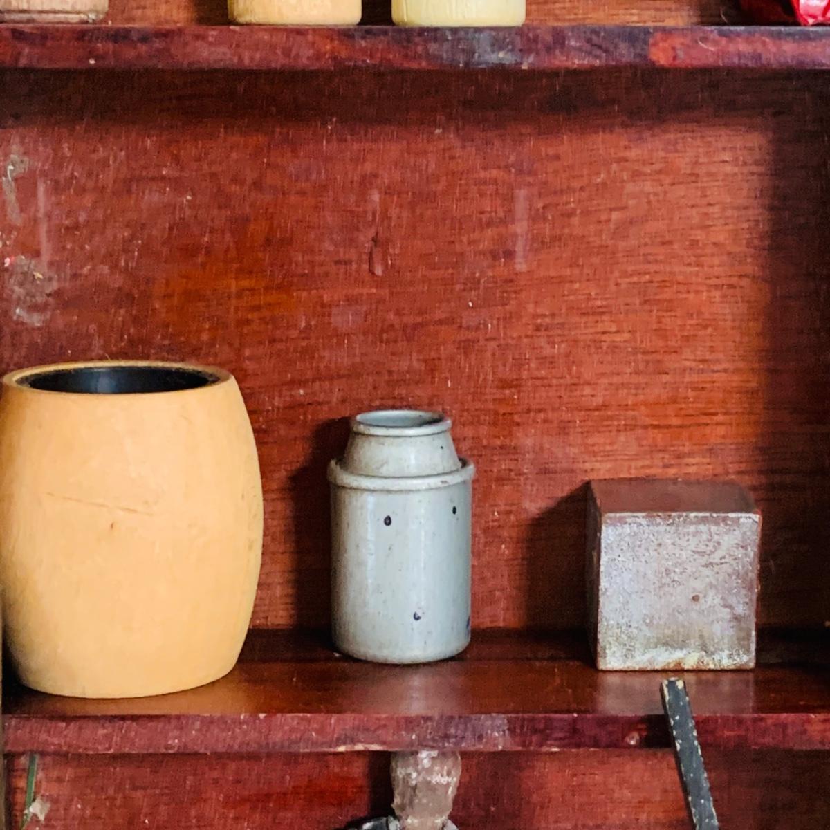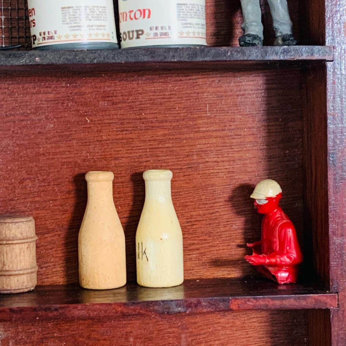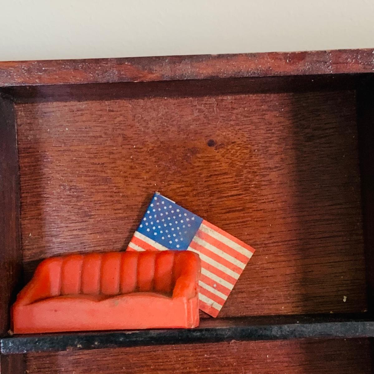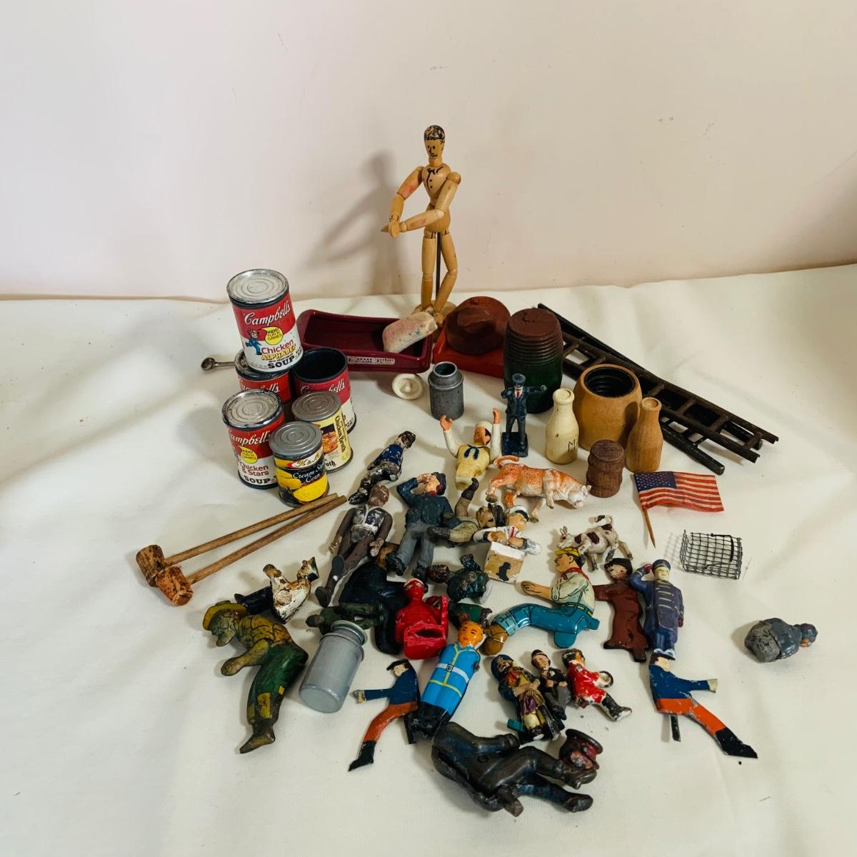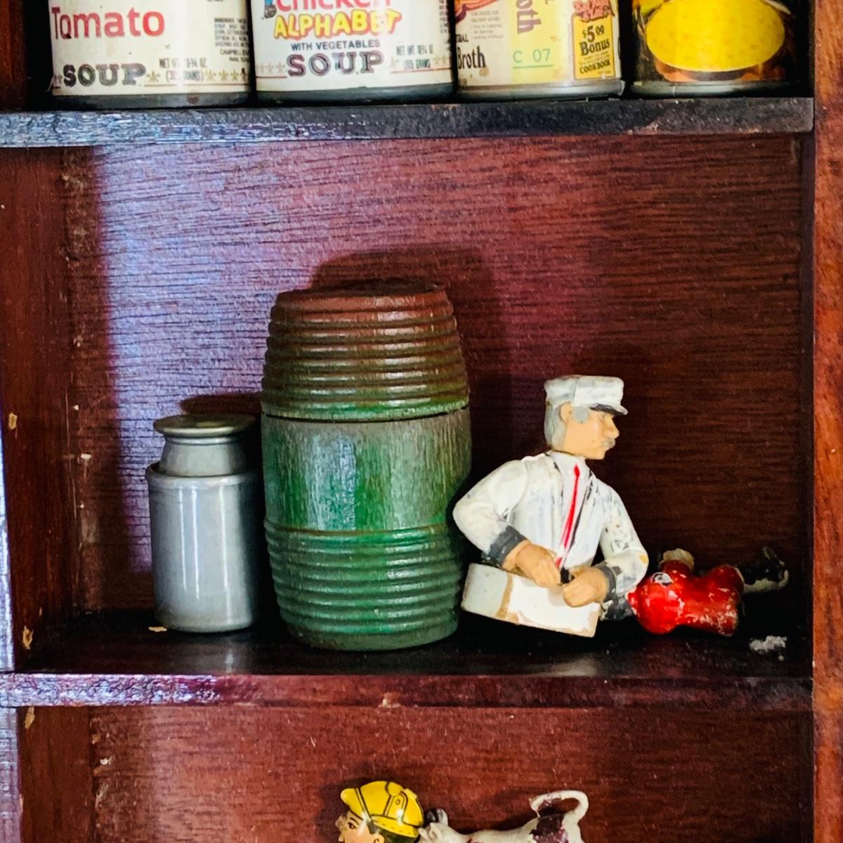 LOT 219: Vintage Display Shelf with Vintage Toy Bits, Pieces and Parts