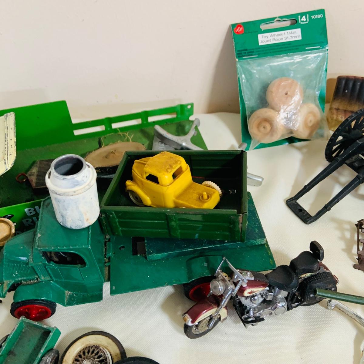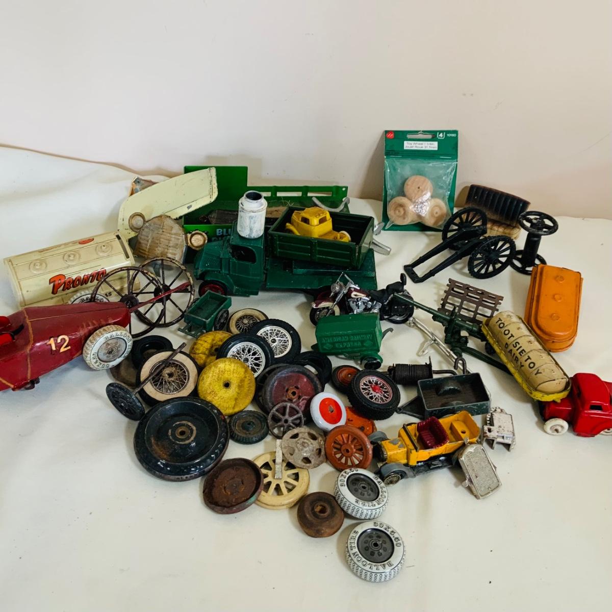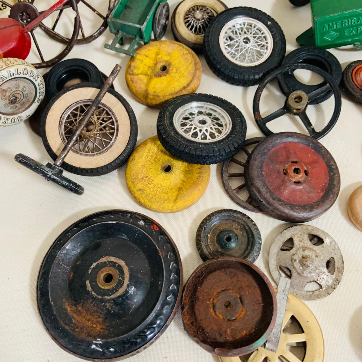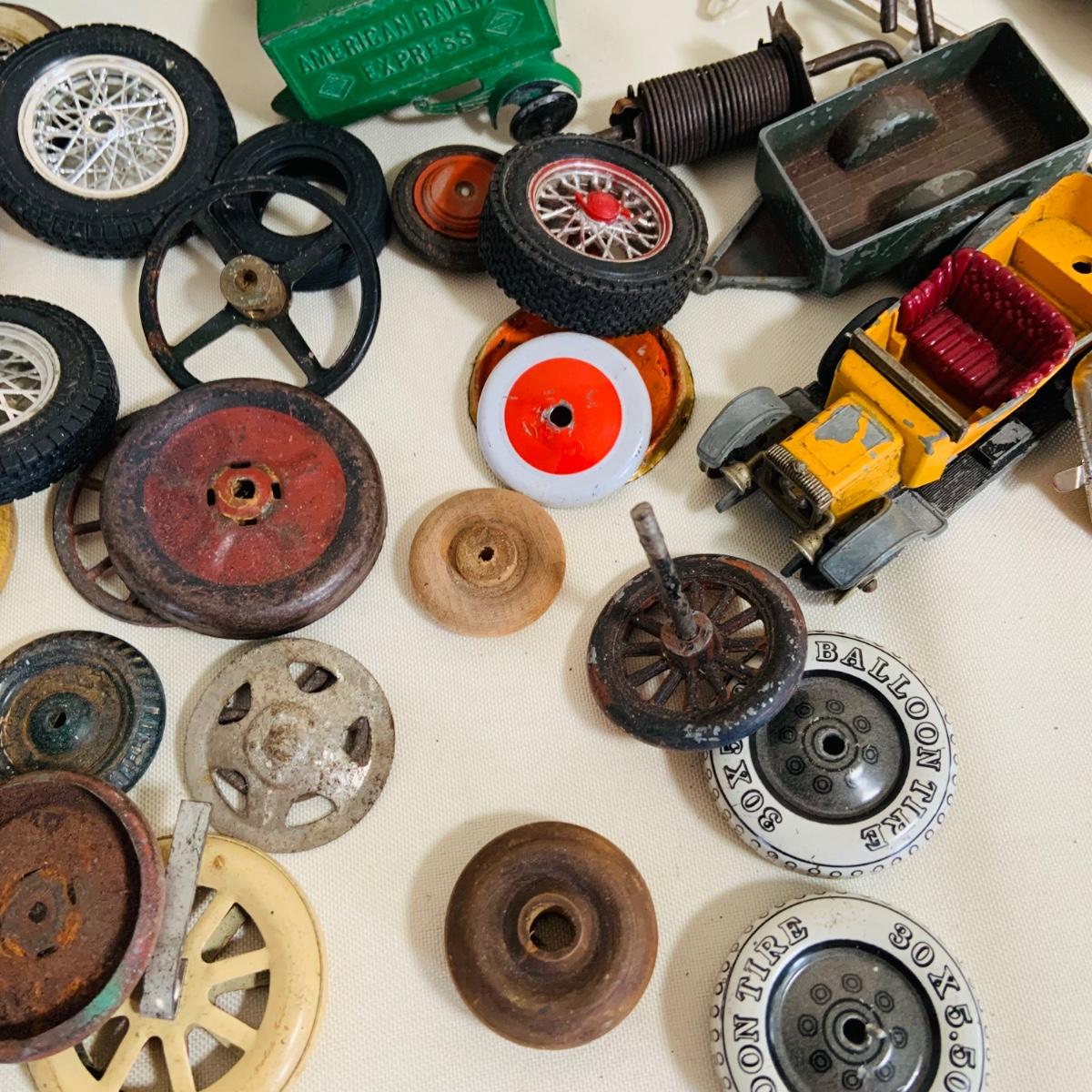 LOT 220: Large Assortment of Vintage Toy Car Wheels, Pieces and Parts