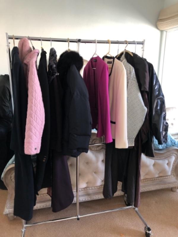 Lot 112U. Lot of 10 jackets and coats, new and used, size UK 40, US 16, Jacques Vert, Dale of Norway sweater for Olympics, Kenn Sporn ,Thierry Mugler, Panache, Basler, Aquasculm--$175