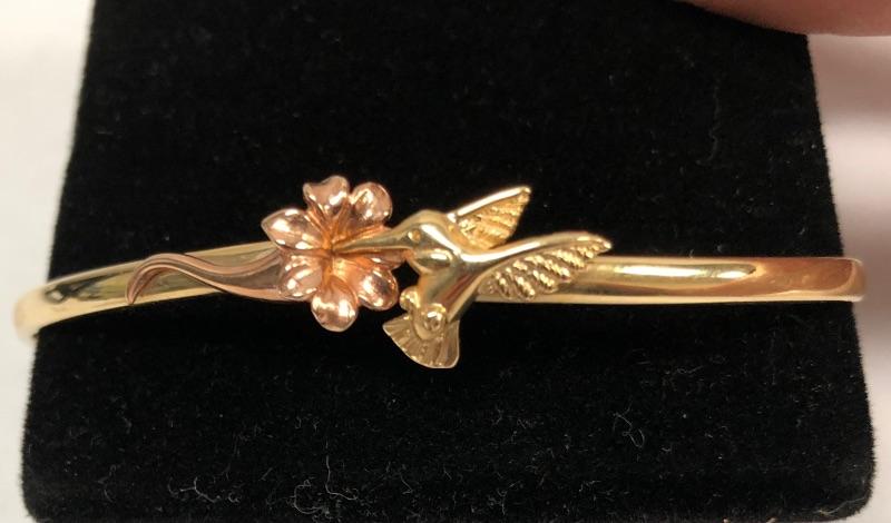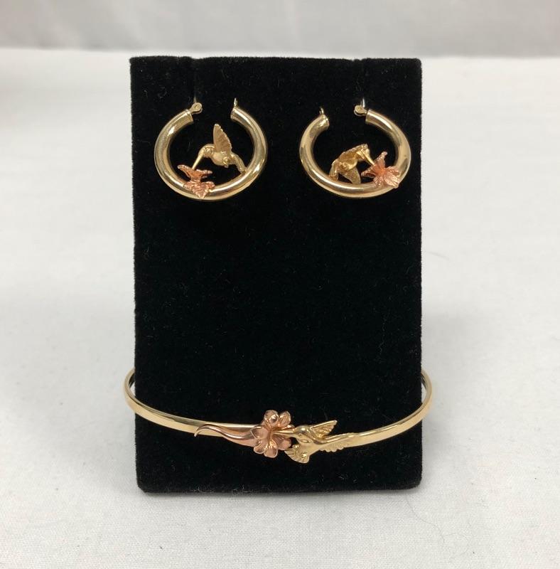 Lot 113 - 14k Hummingbird Bracelet & Earring Set