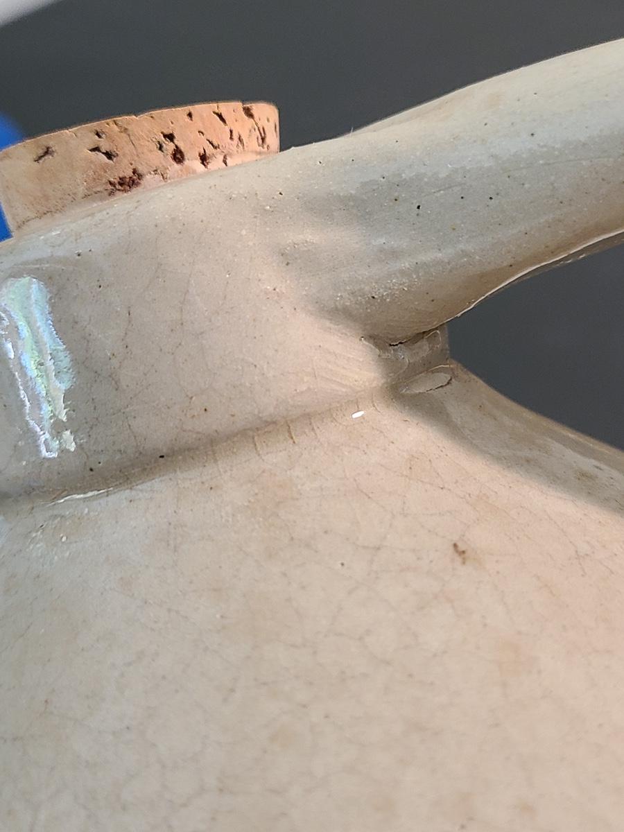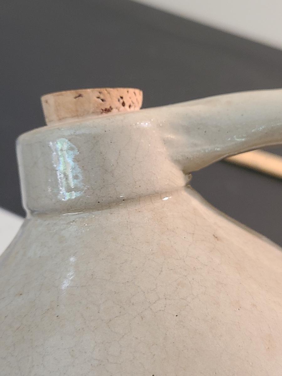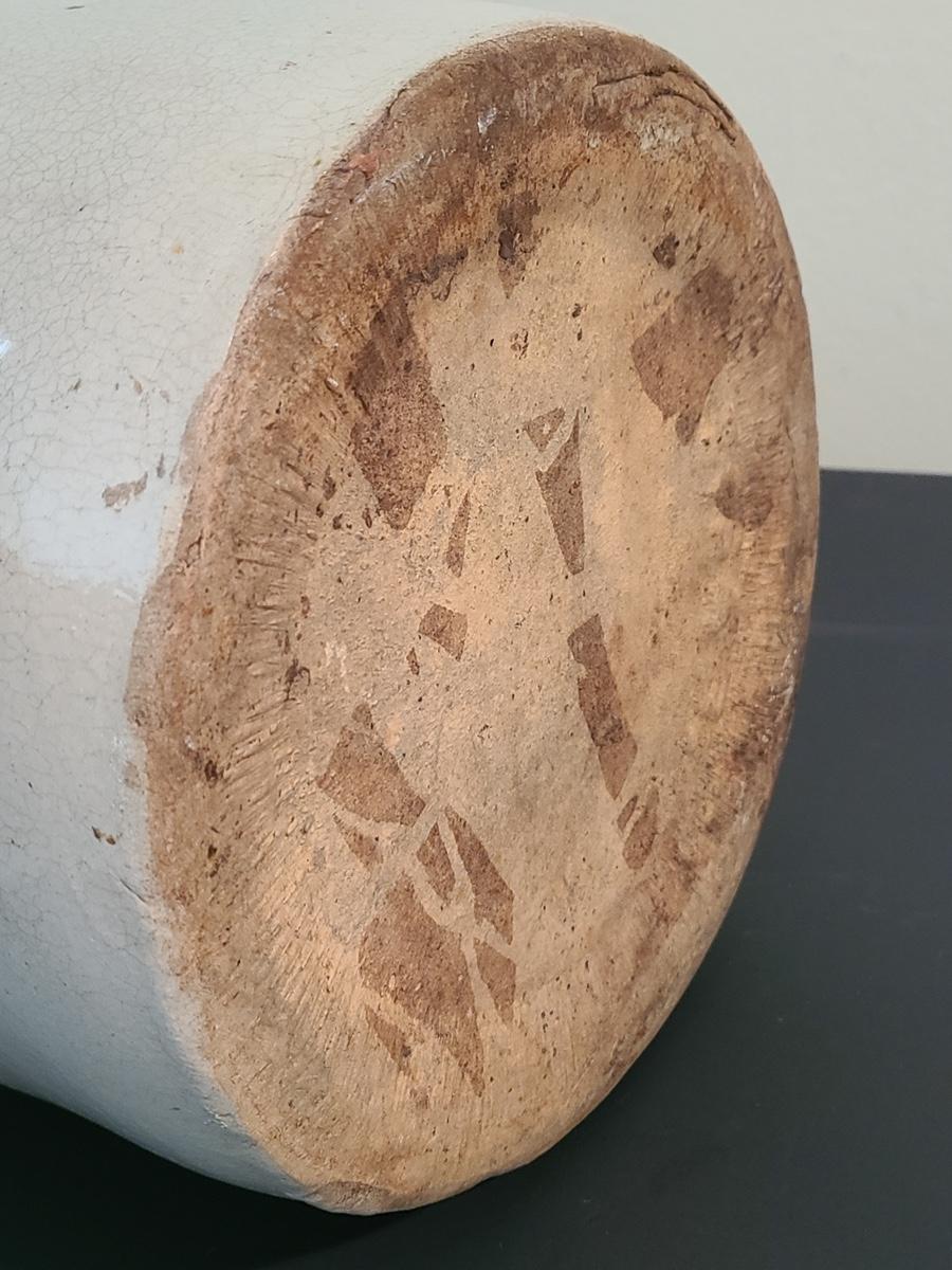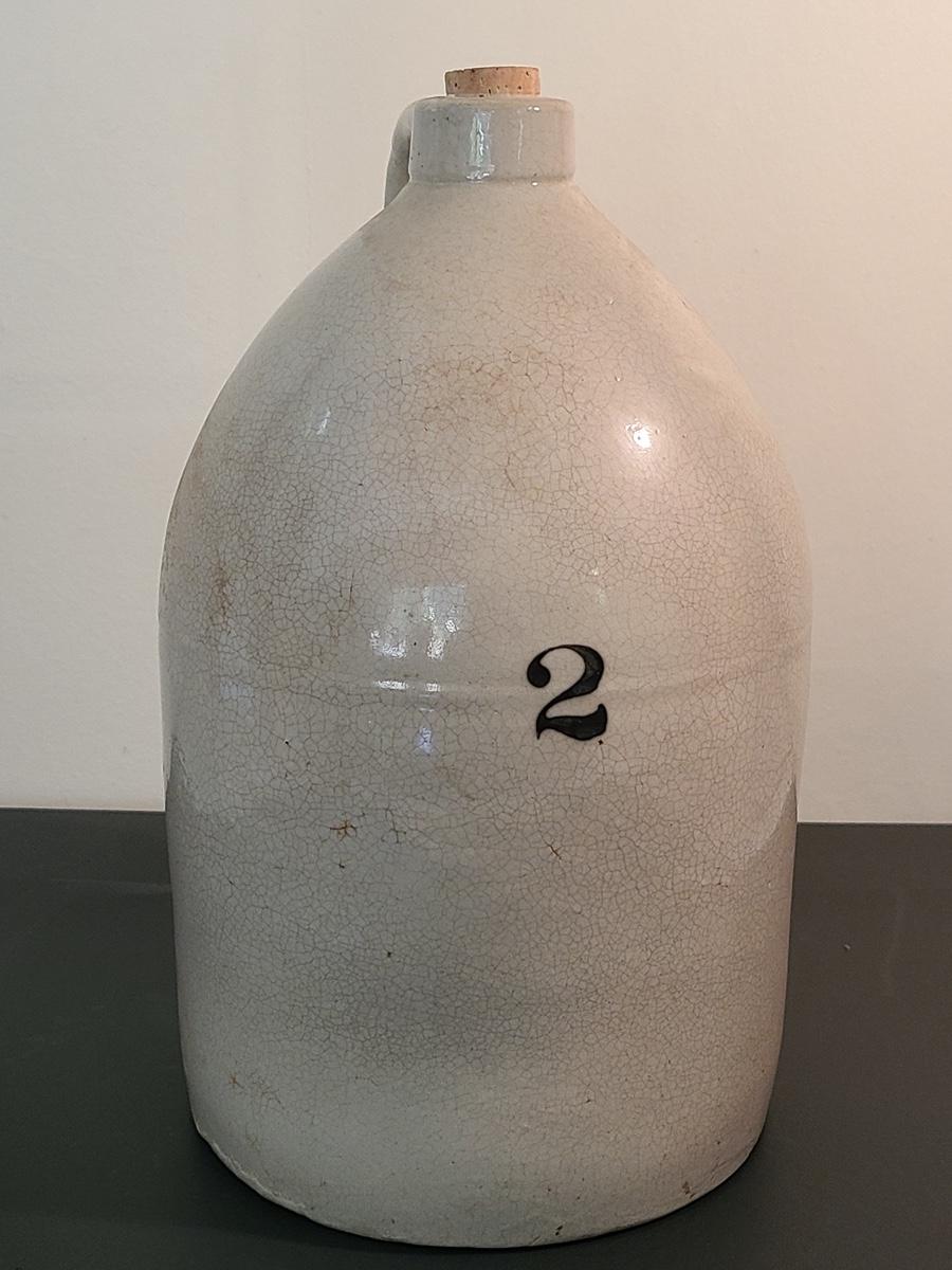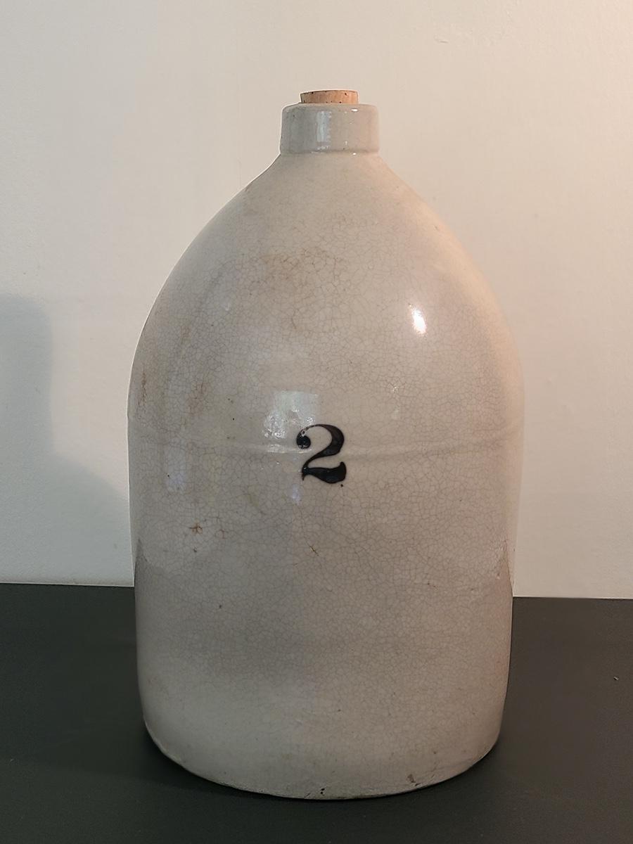 Not sure of the age or maker of this gorgeous 2 gallon jug. Perfect decor for any room. Does have faint firing line at the handle that does not go all the way through as pictures show, nick in lip, and crazing throughout, which adds to the character of this beauty. Pictures are the best representation of the item in the lot, the condition of the items in the lot, and the size if measurements were taken. All items are sold as-is, since they are pre-owned and antiques.