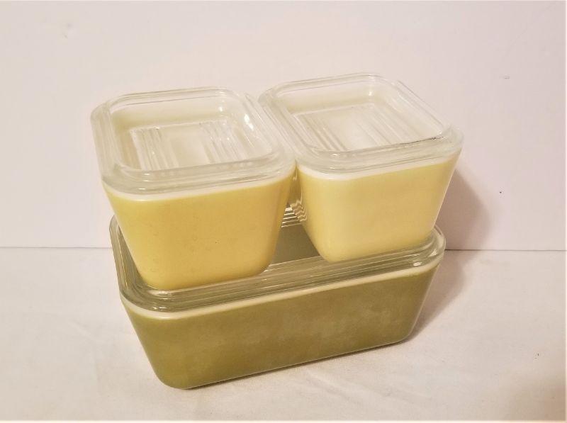 Lot #113 3 Vintage Refrigerator Dishes - Yellow and Avocado Green