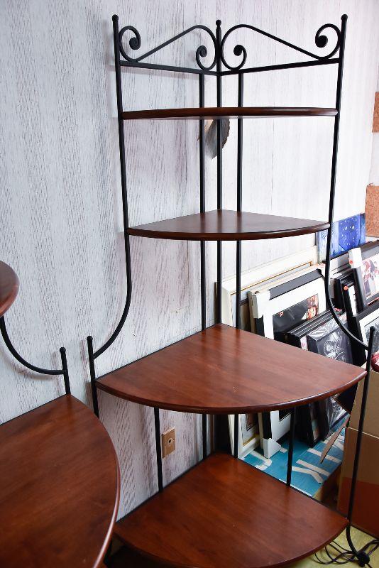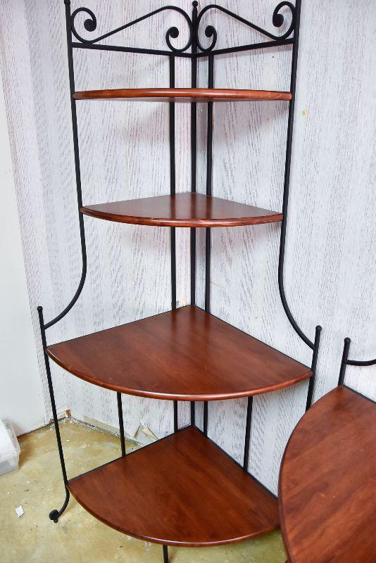 Lot 113: Wood and Wrought Iron Corner Shelves