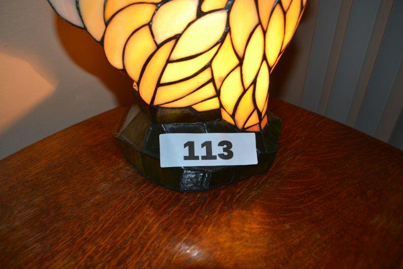 LOT 113 FAUX STAINED GLASS LIGHTED ROOSTER LAMP