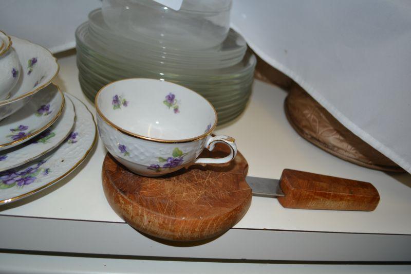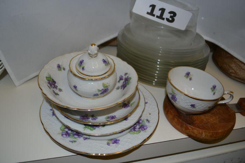 LOT 113 GLASS DINNER WARE AND CUTTING BOARD